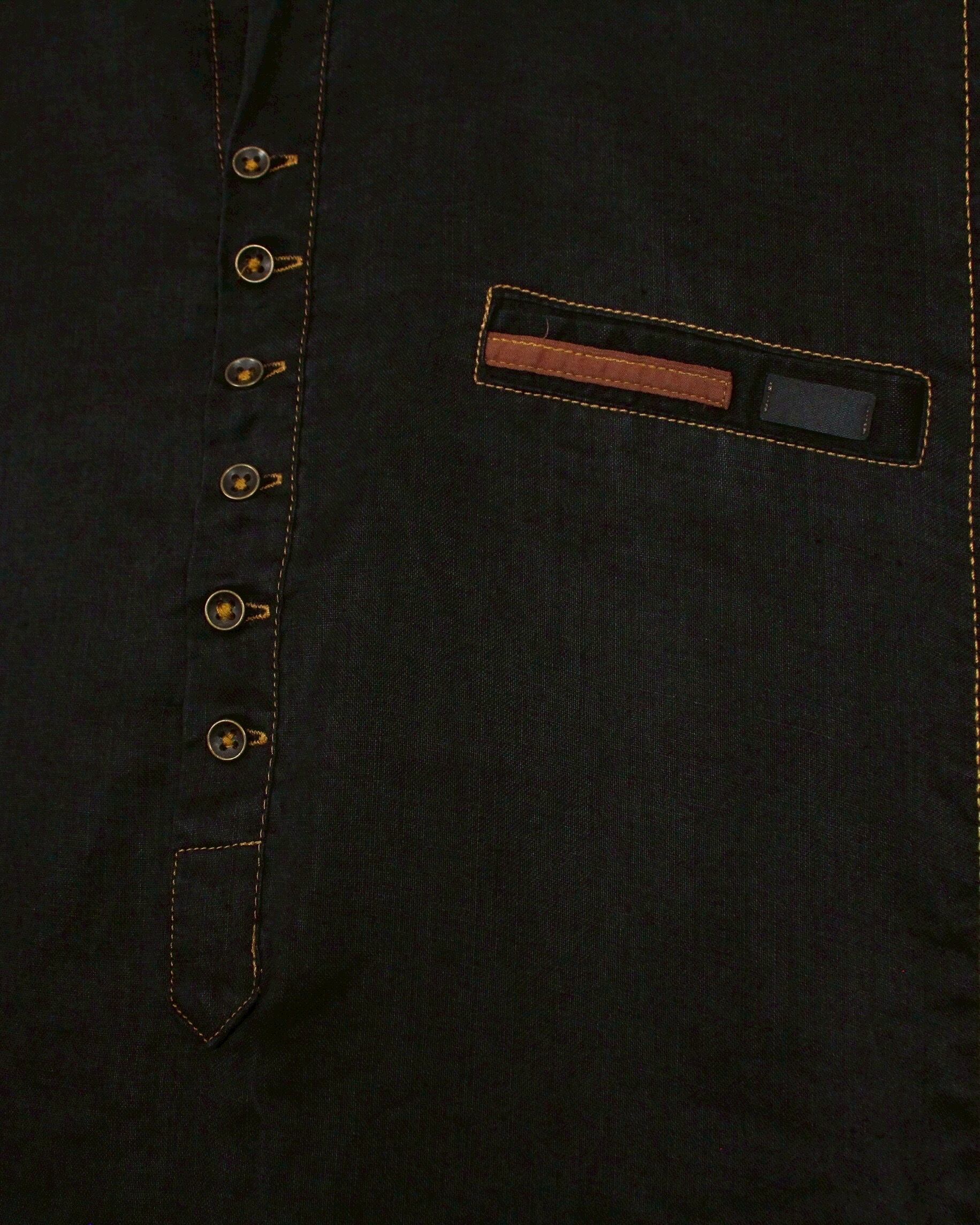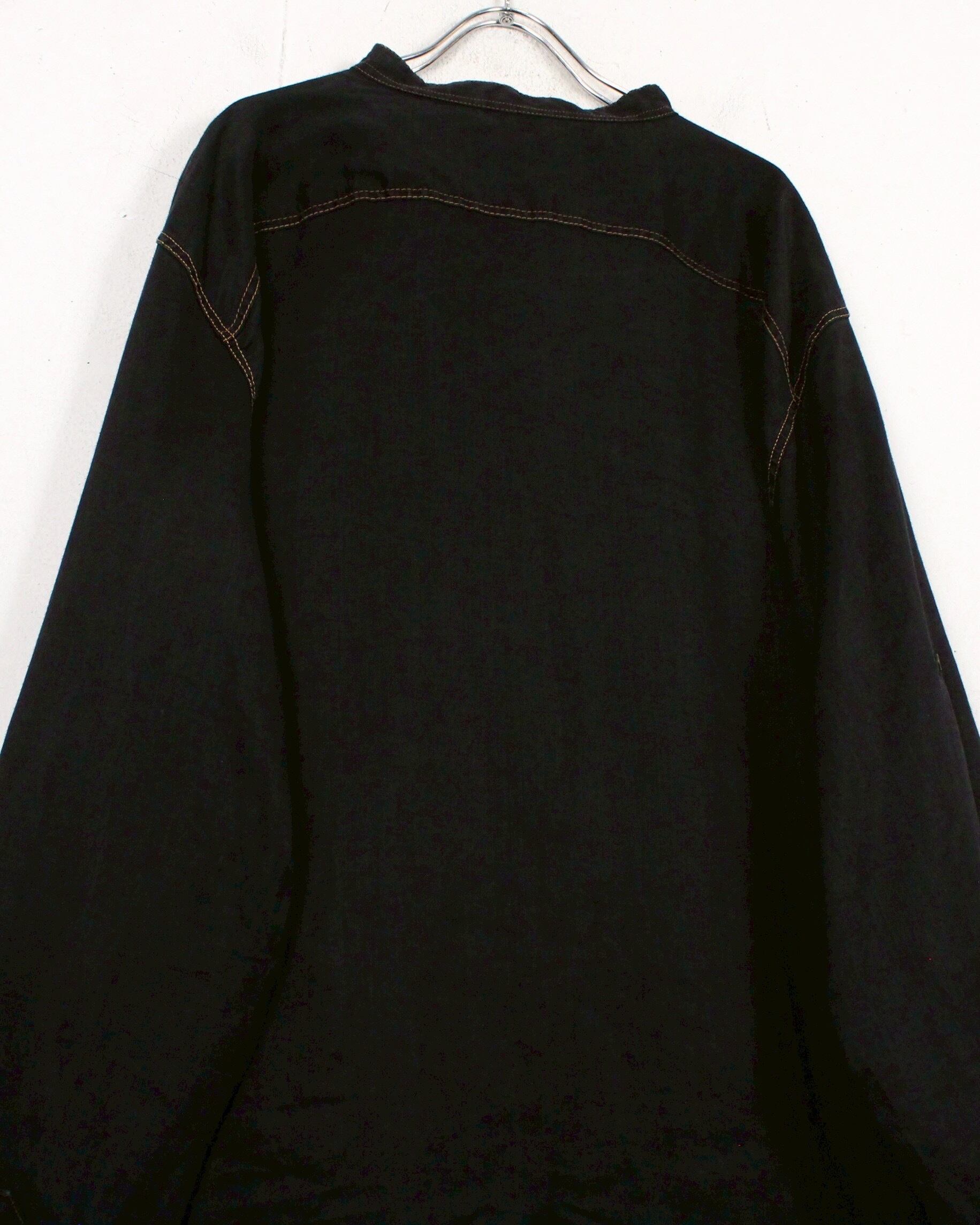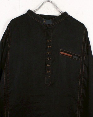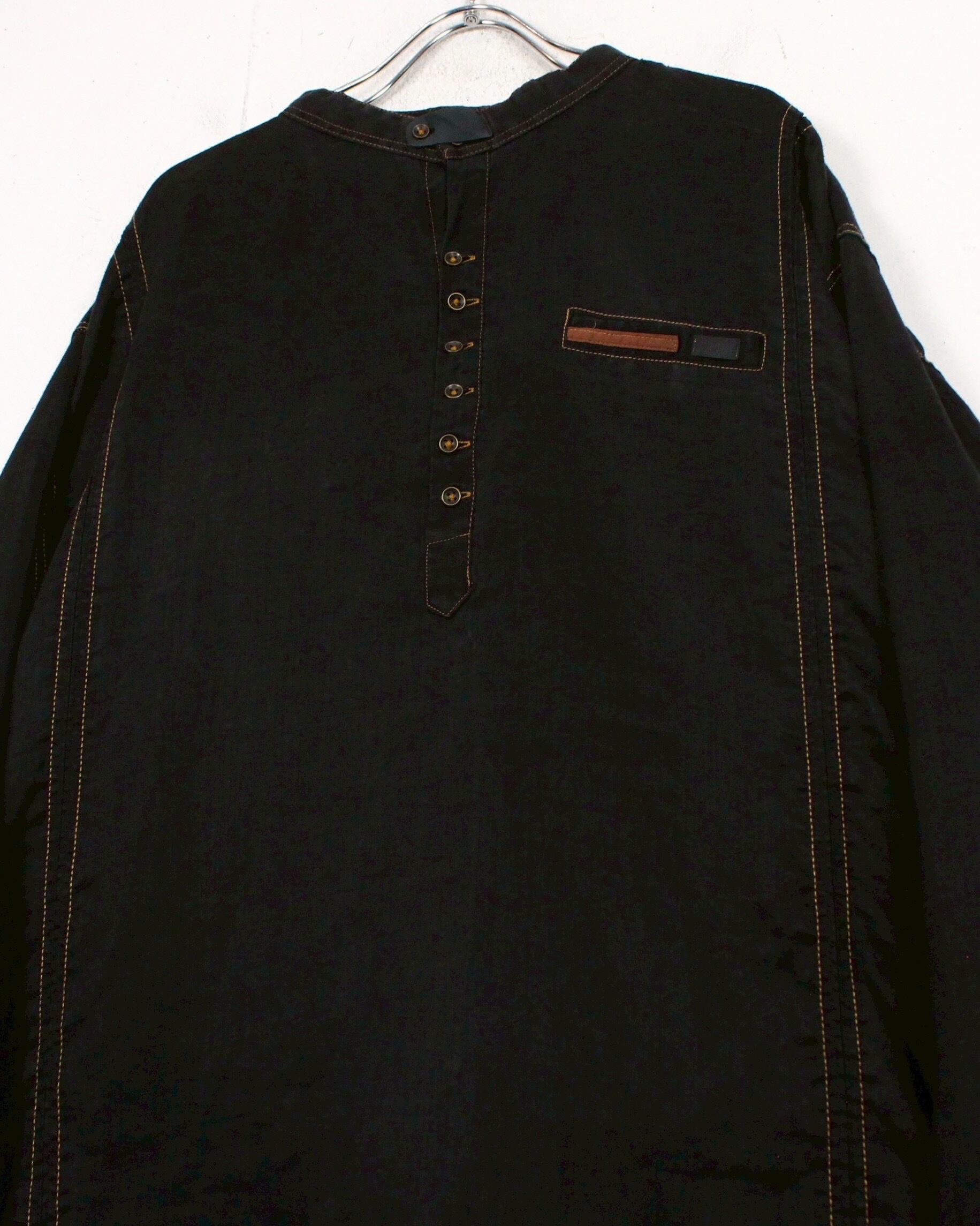 柔らかなコットンを用いたボディに、ボディの随所にステッチを施した長袖ヘンリーネックのプルオーバーシャツ。