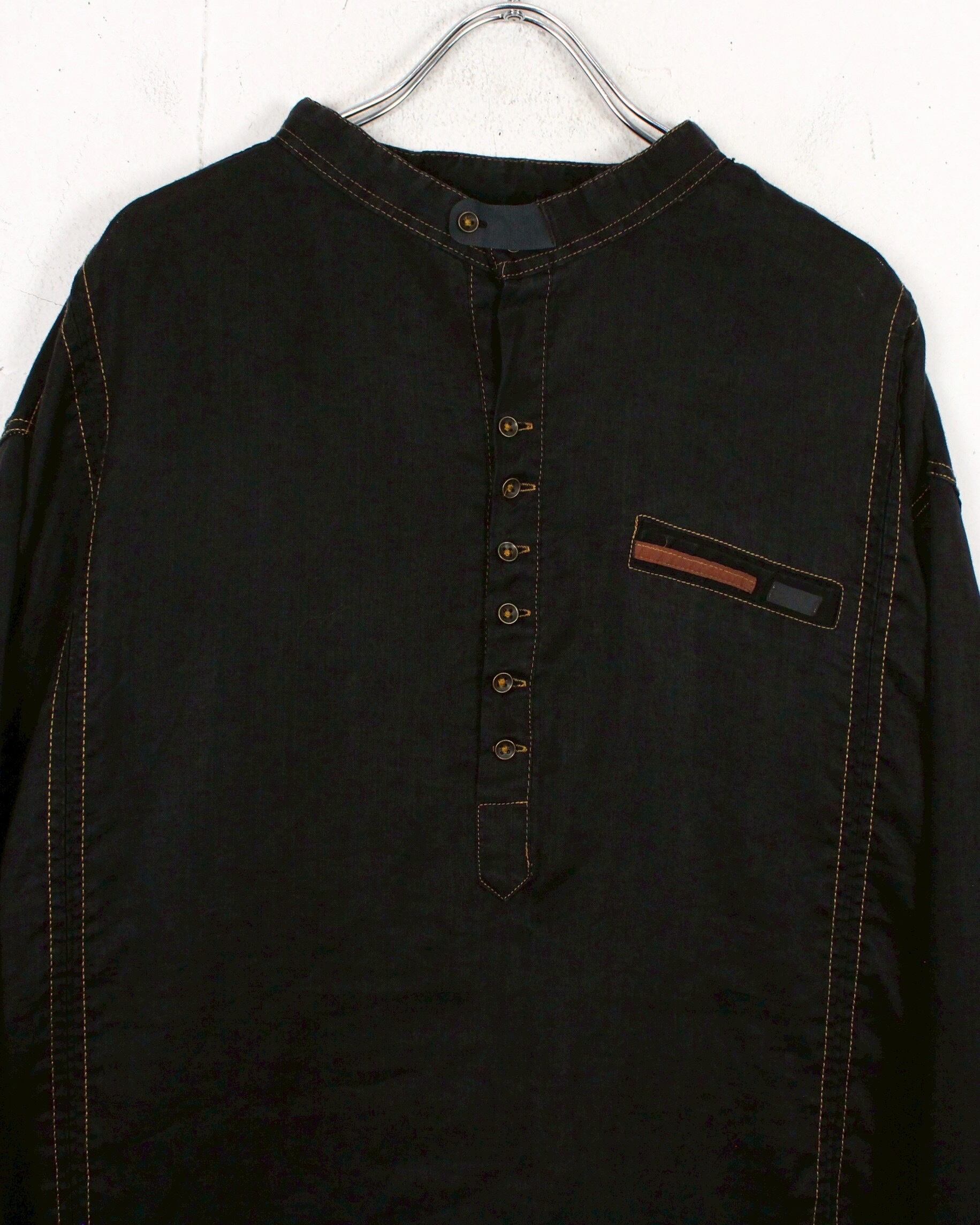 上質な素材使いに細やかに作り込まれたディテール使いが光る、長袖ヘンリーネックのプルオーバーシャツです。