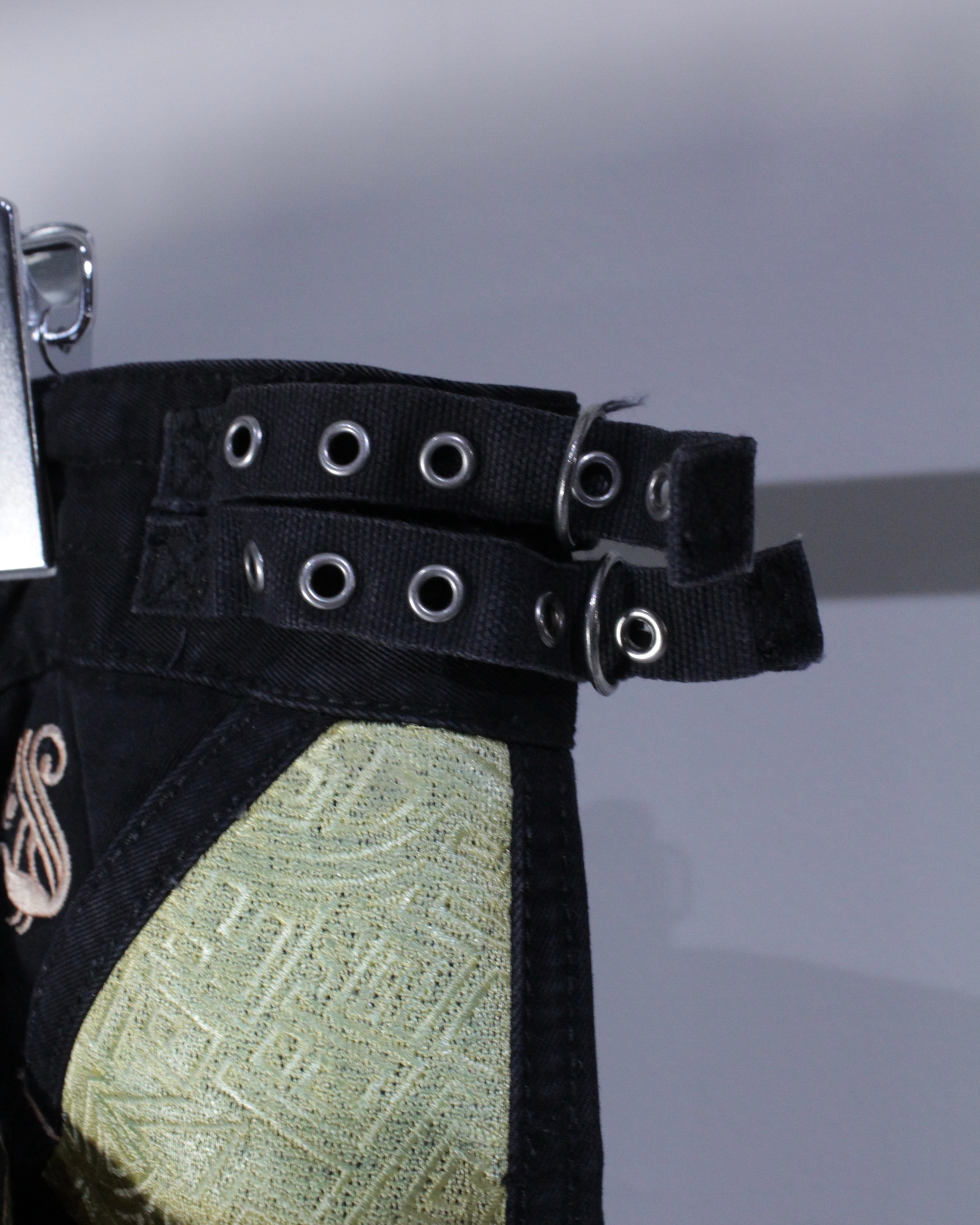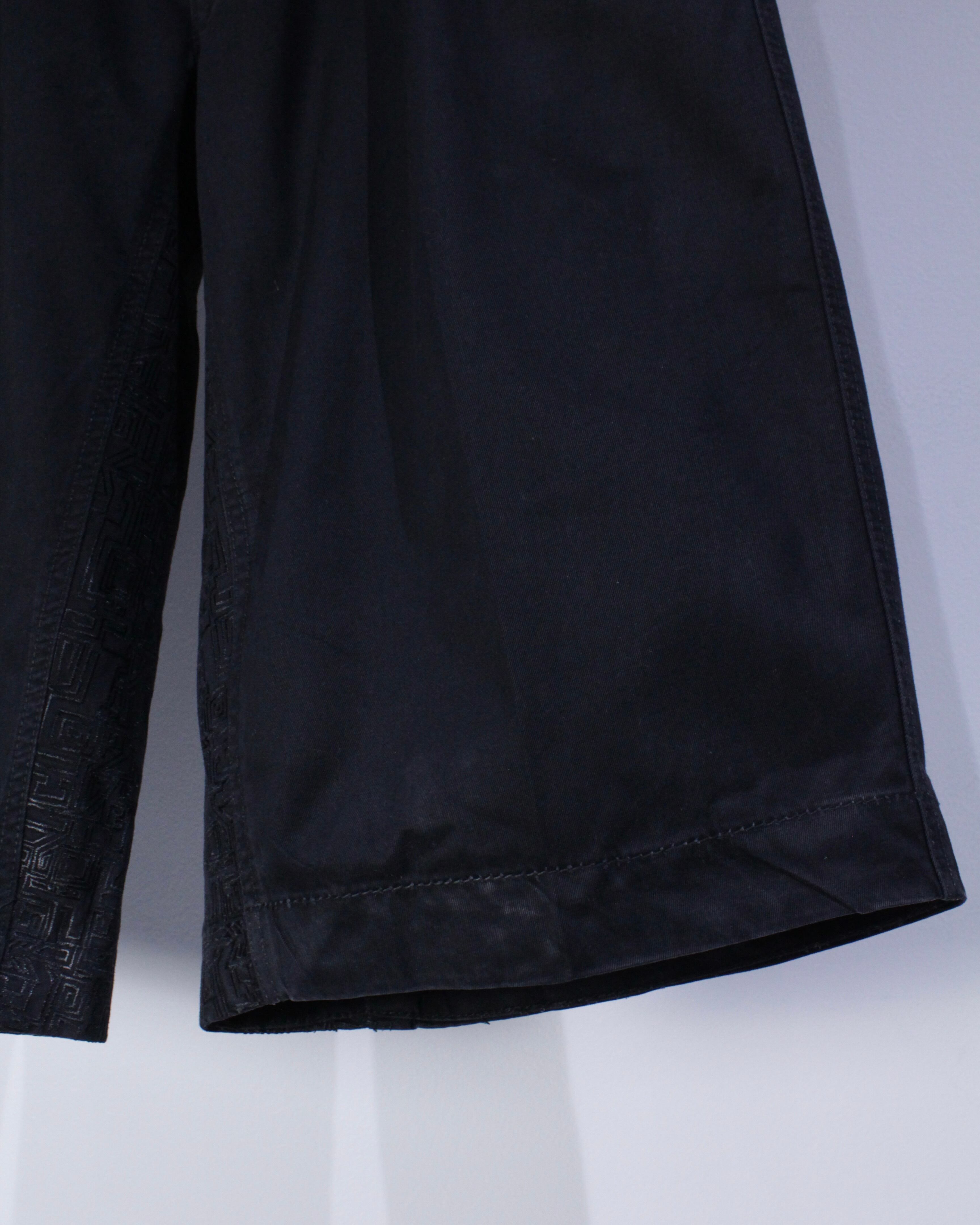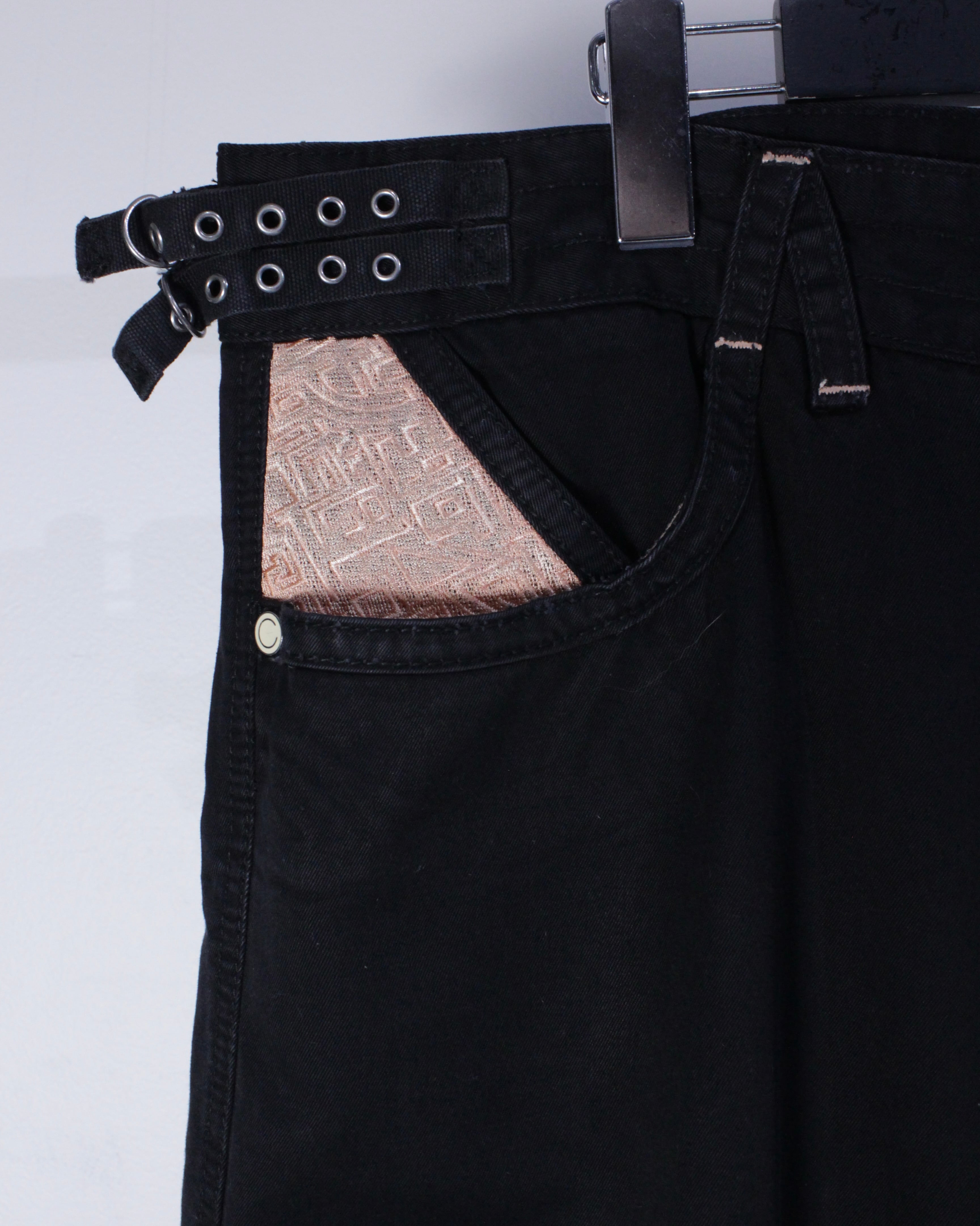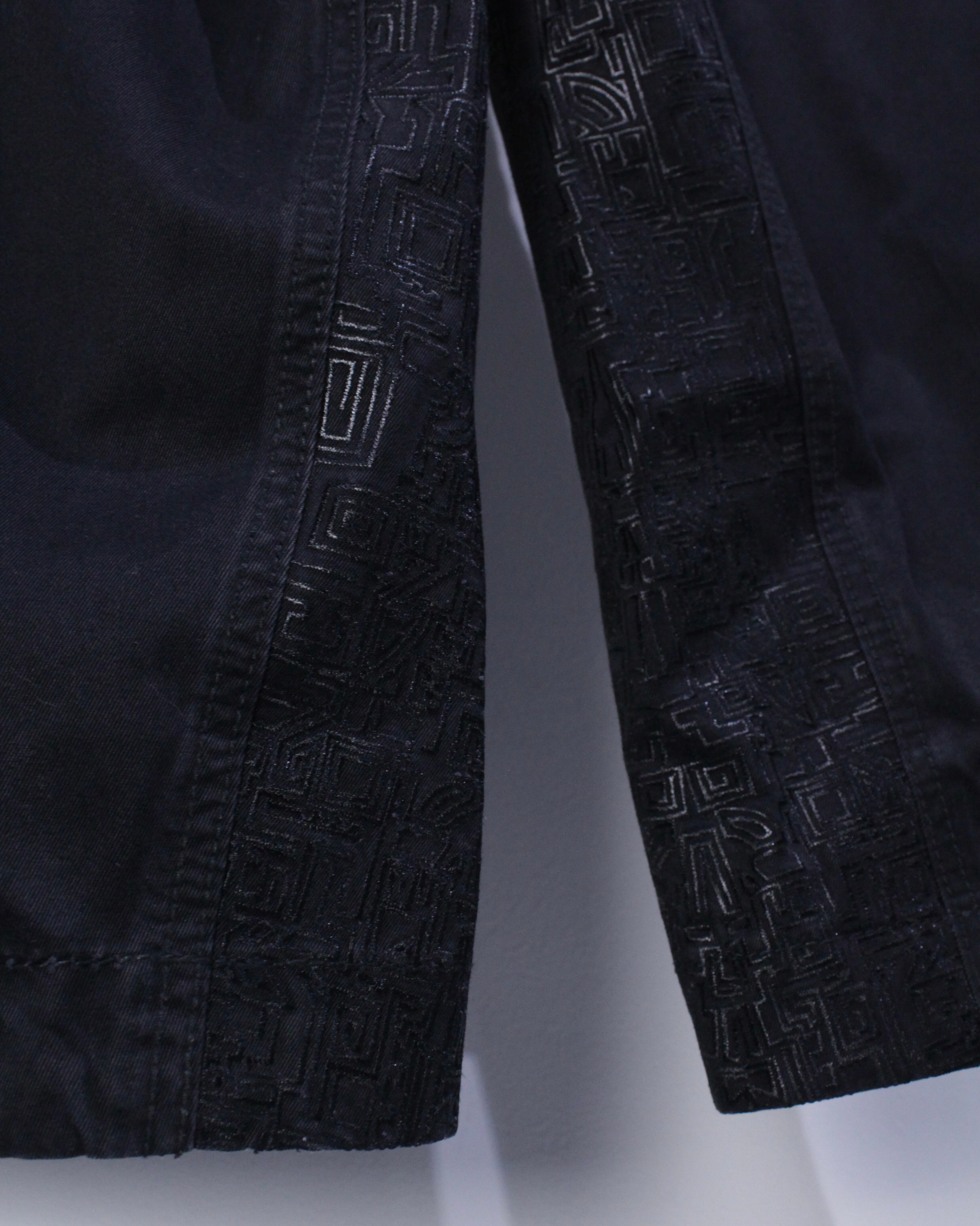 色残りがしっかりとあるブラックのデニムに、バックポケットやフロントのポケットにアーティスティックなデザインを刺繍で施した逸品。