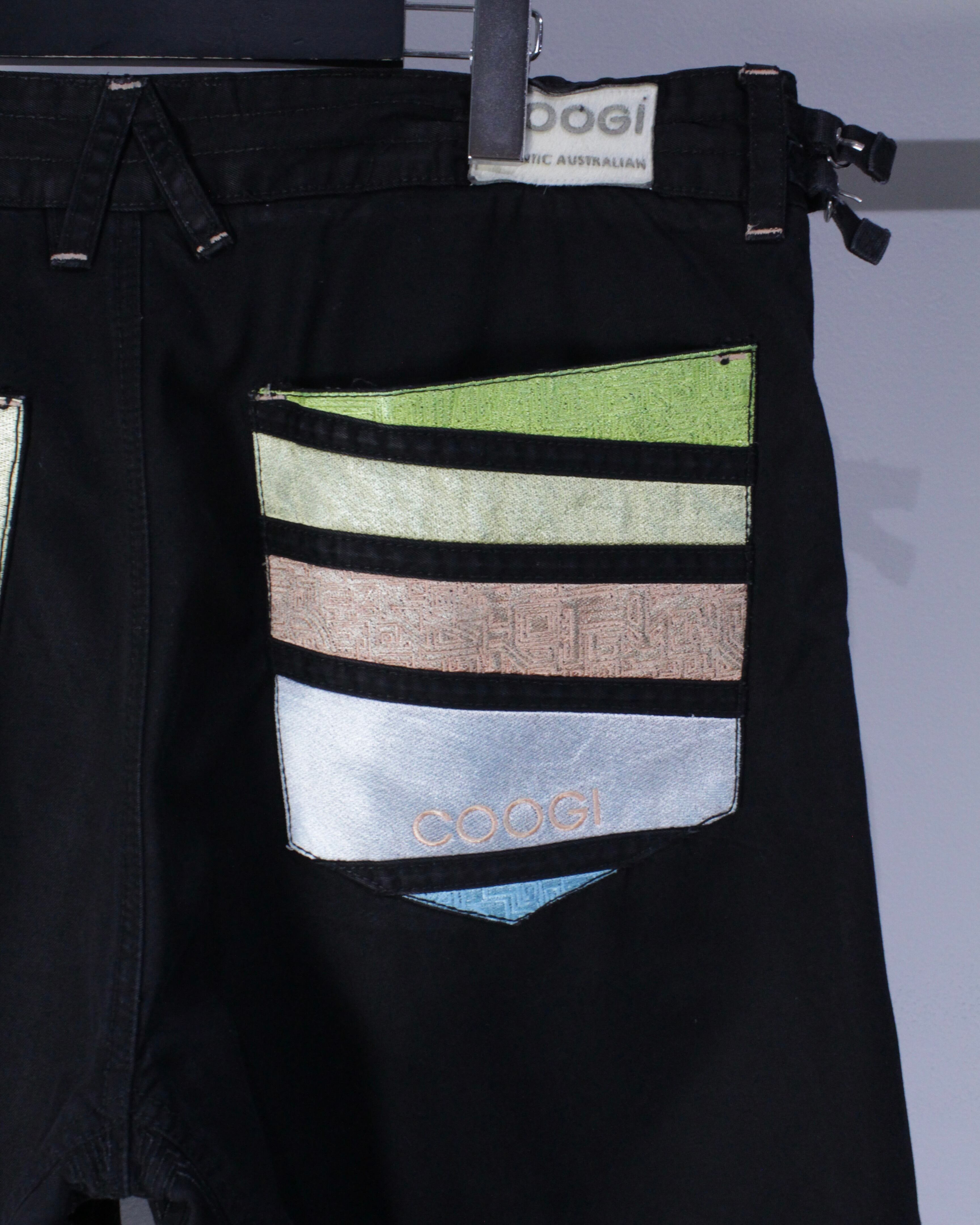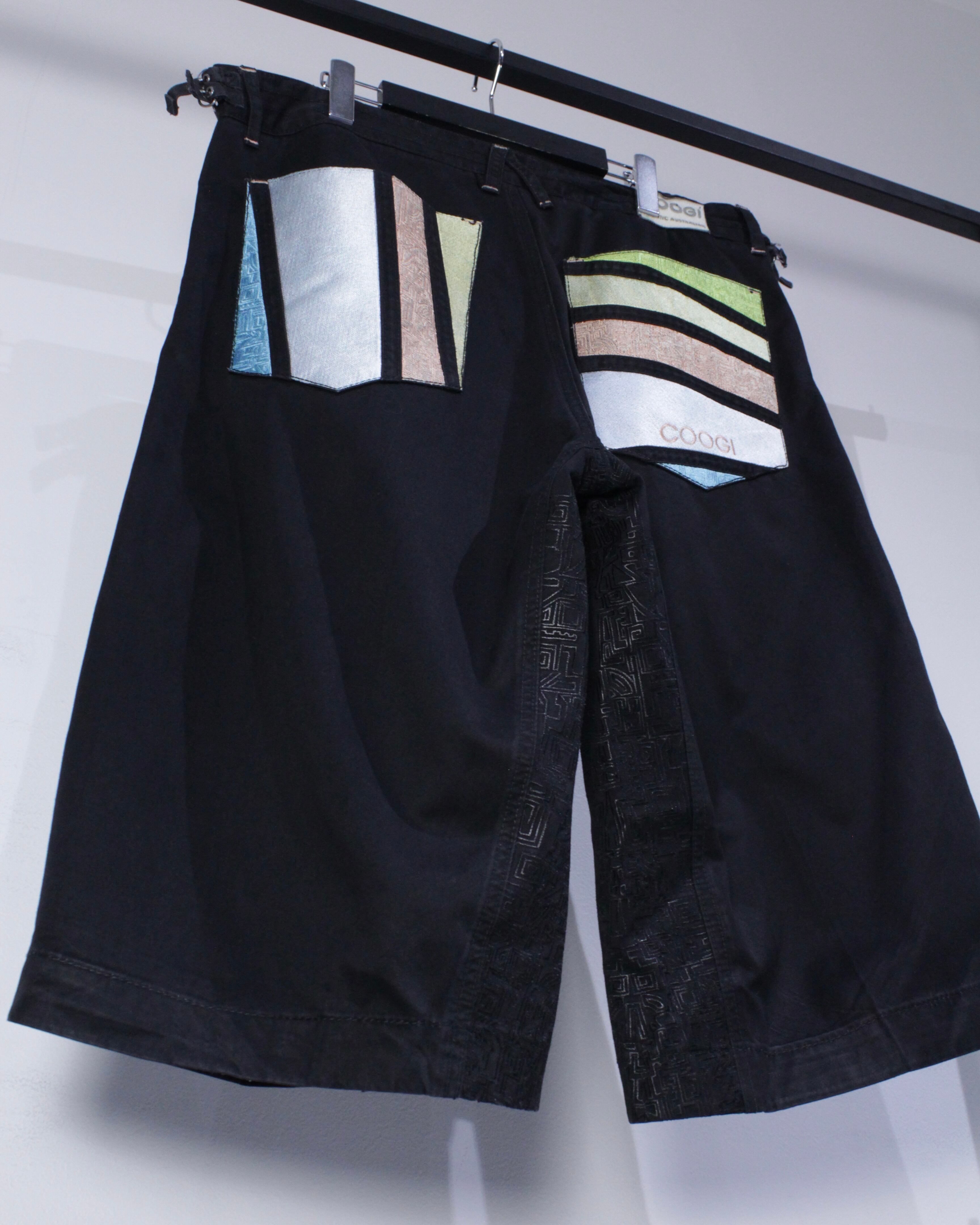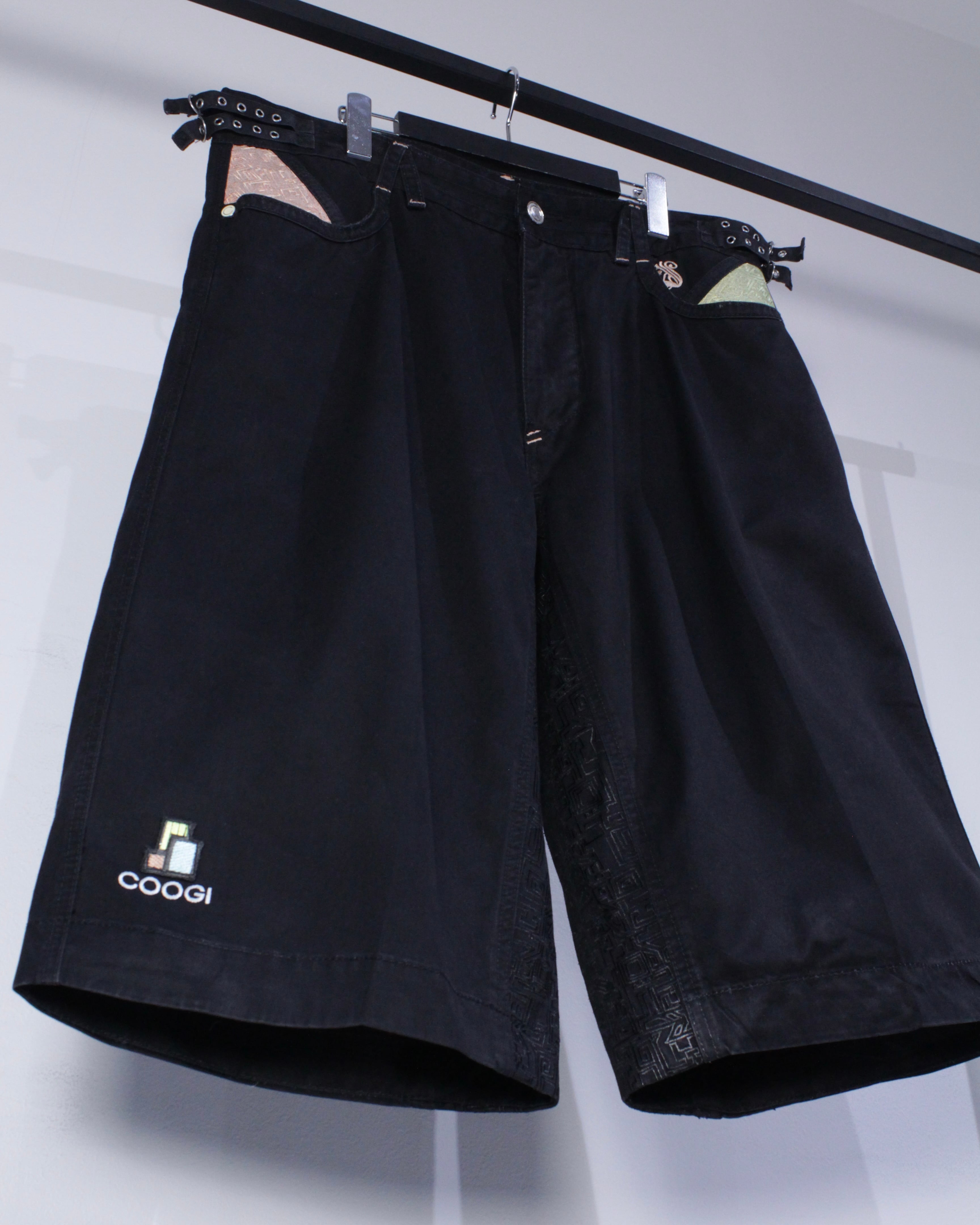 背面腰あたりにはロゴのパッチ、左ポケットにはロゴ刺繍にベルト、ボタンには頭文字が刻まれていたりと、細部までのこだわりが光る仕上がり。さすが"COOGI"、非常に高いクオリティに仕上げられています。
