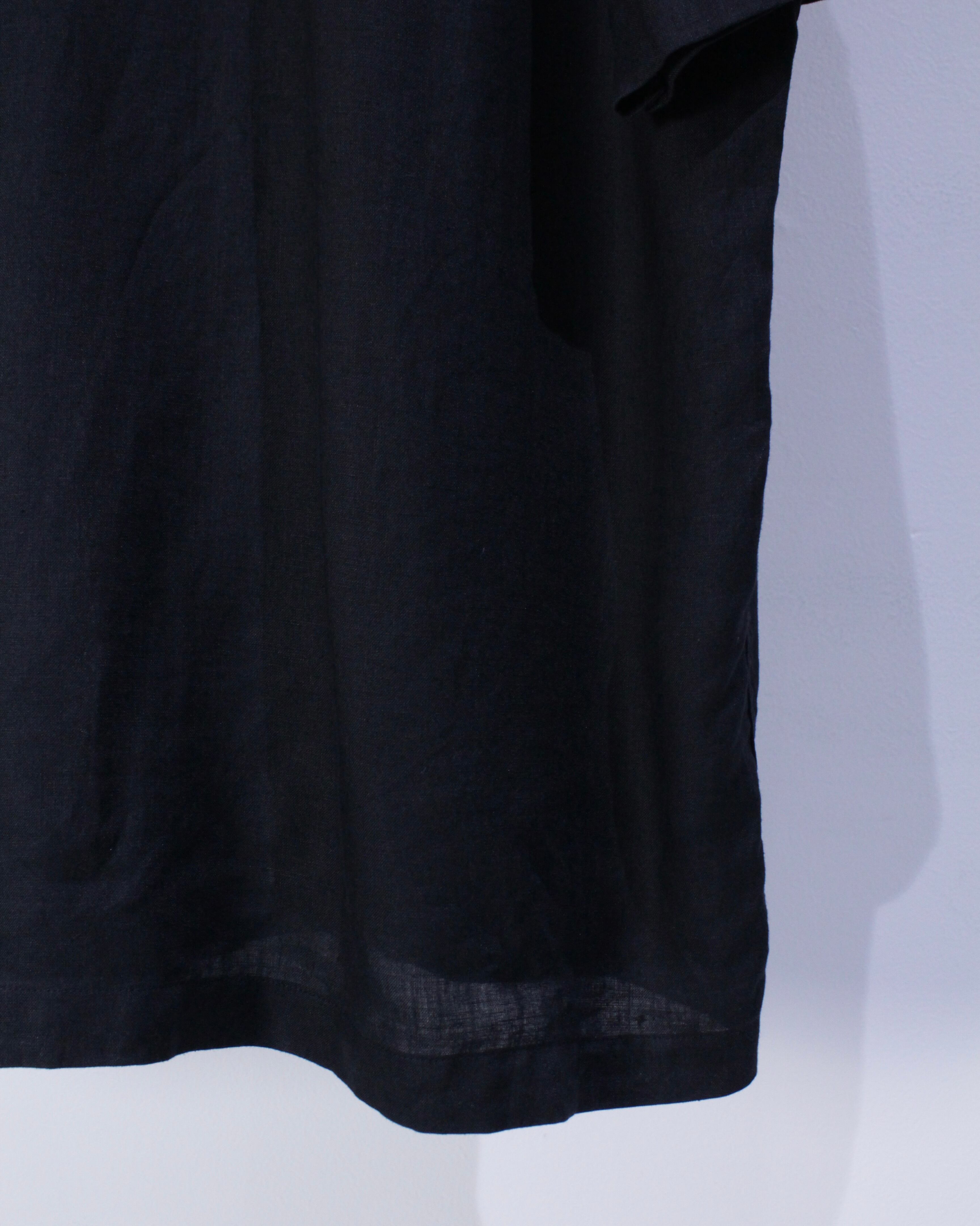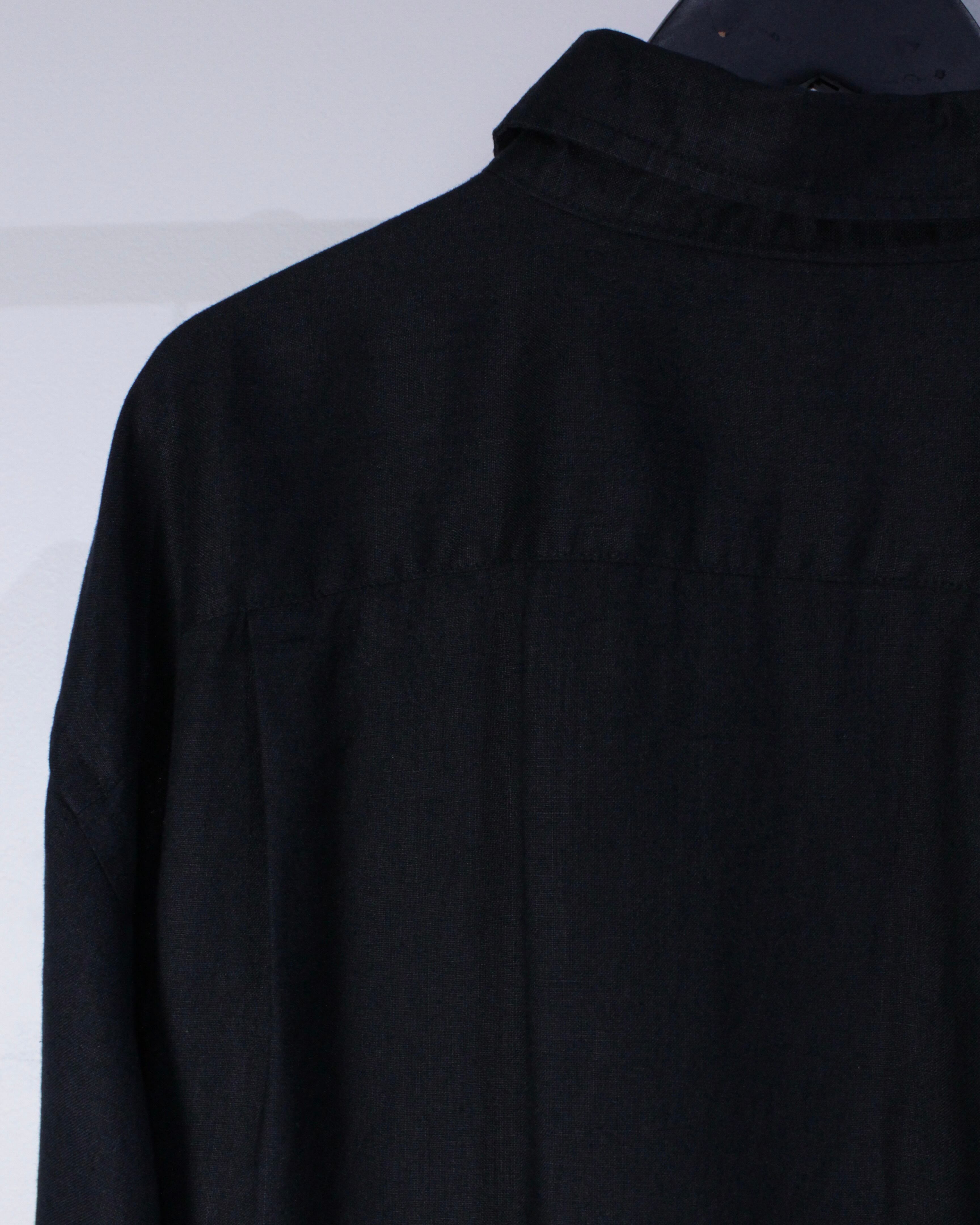 左胸にはパッチポケットと、シンプルで洗練されたディテール。ベーシックな作りが故にリネンの上質さが引き立ちます。