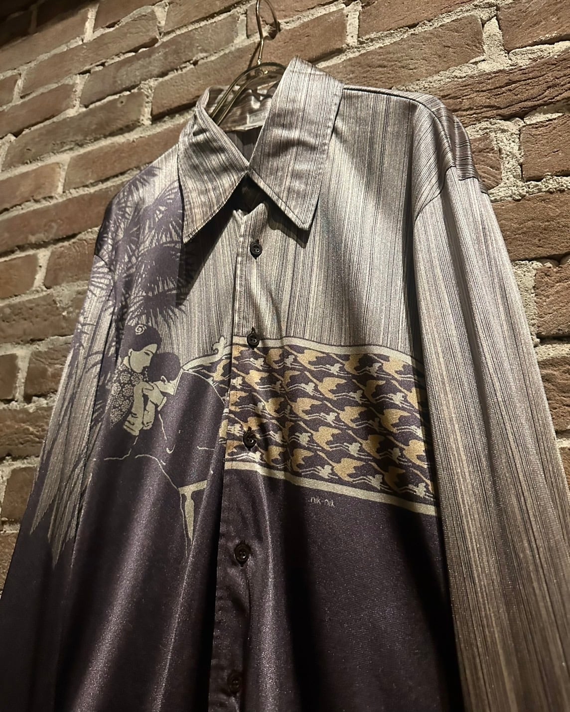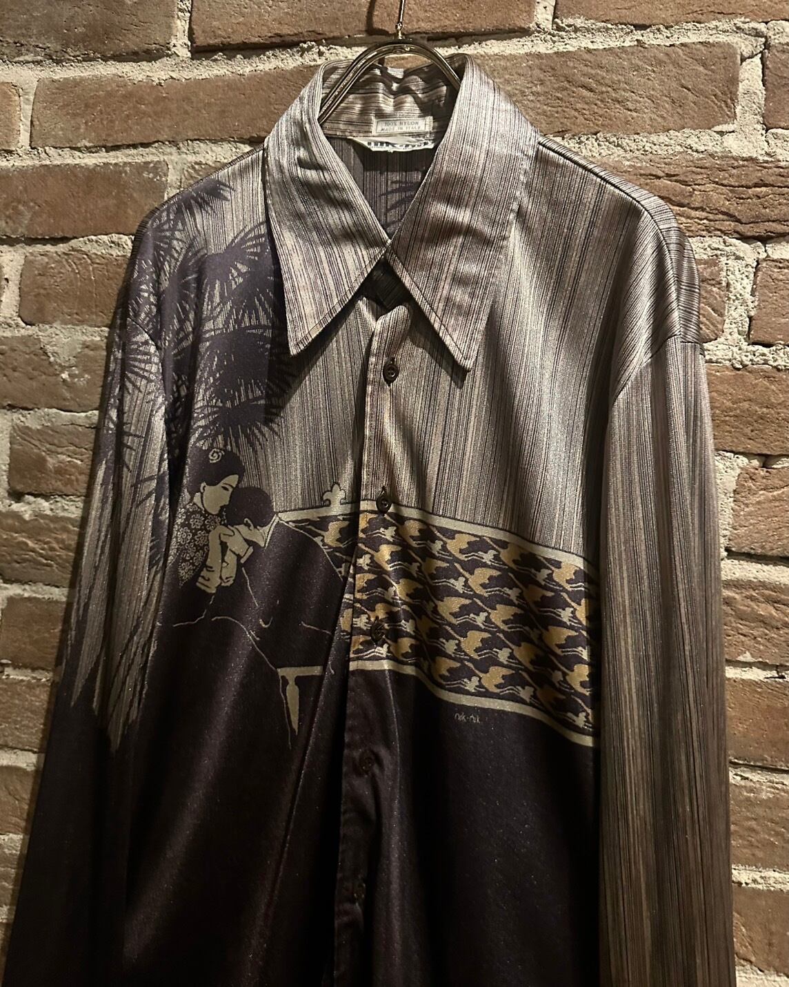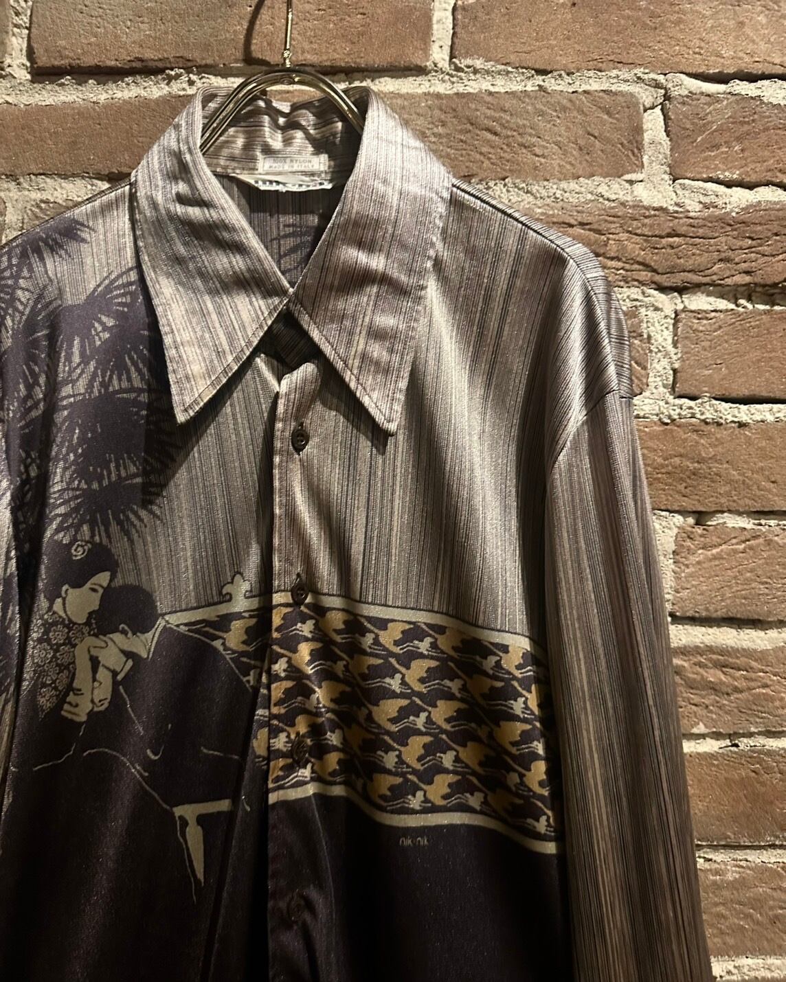 70'sの柄シャツの中でも特に名を馳せており、そのデザイン性の高さからミュージシャンや著名人からも名声を得ていた伝説的ブランド"nik nik"より、スペシャルな1着をご紹介致します。