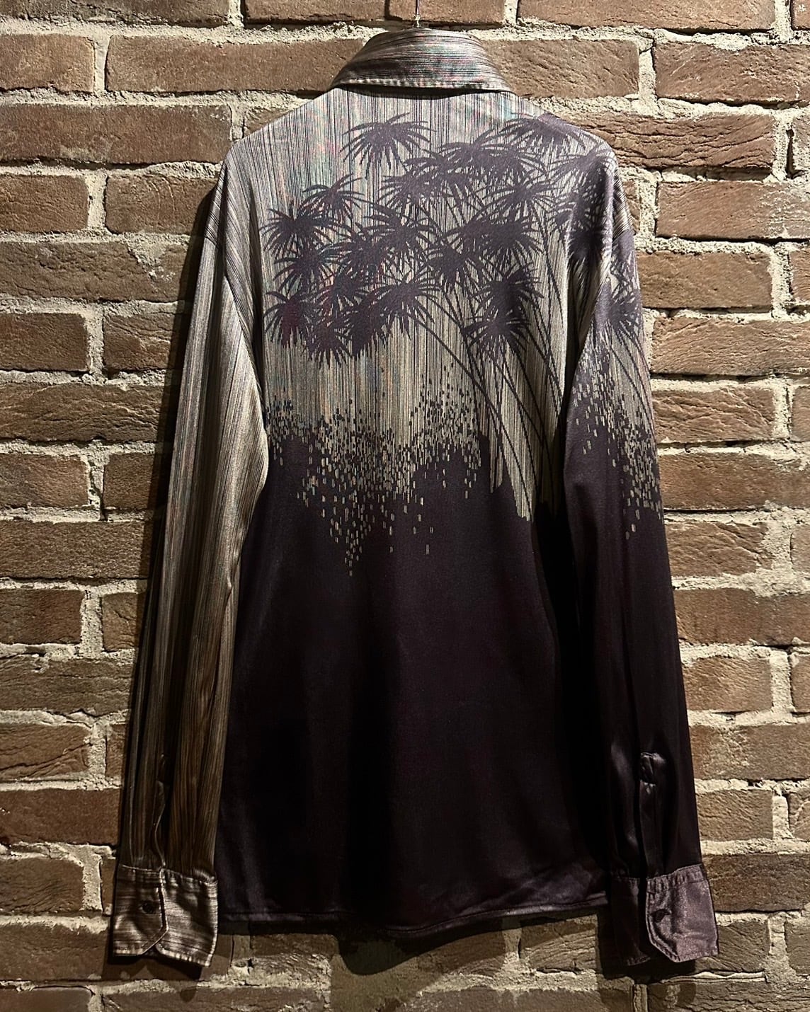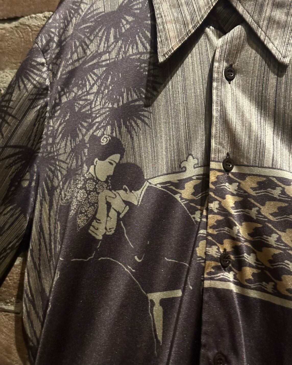 ツルッと滑らかなボディに、和やレトロな雰囲気を漂わせるデザインを落とし込んだ70'sヴィンテージの長袖シャツ。