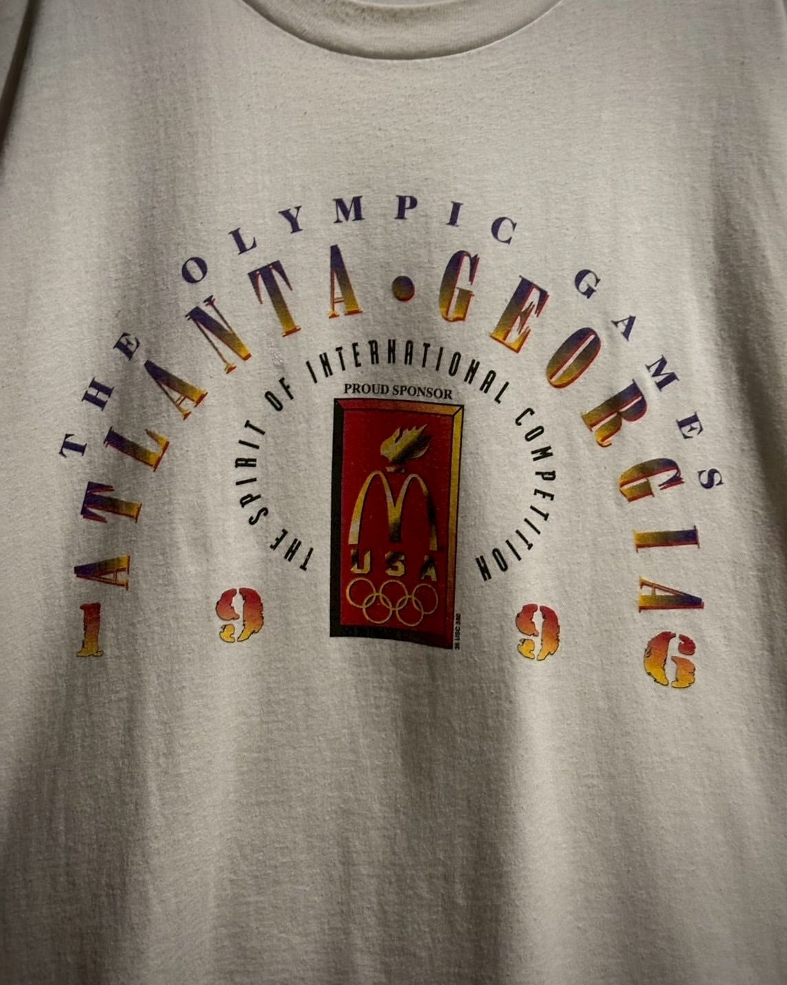フロントにはアトランタオリンピックの文字に、当時スポンサーを務めたマクドナルドに聖火を合わせたグラフィックをプリント。