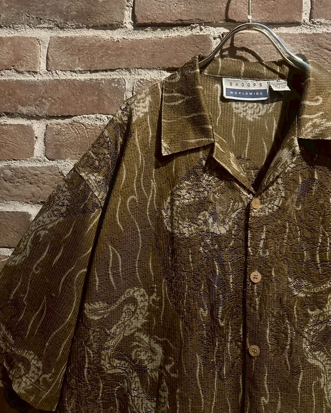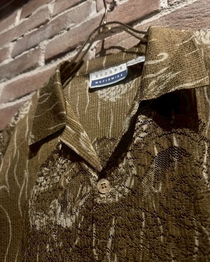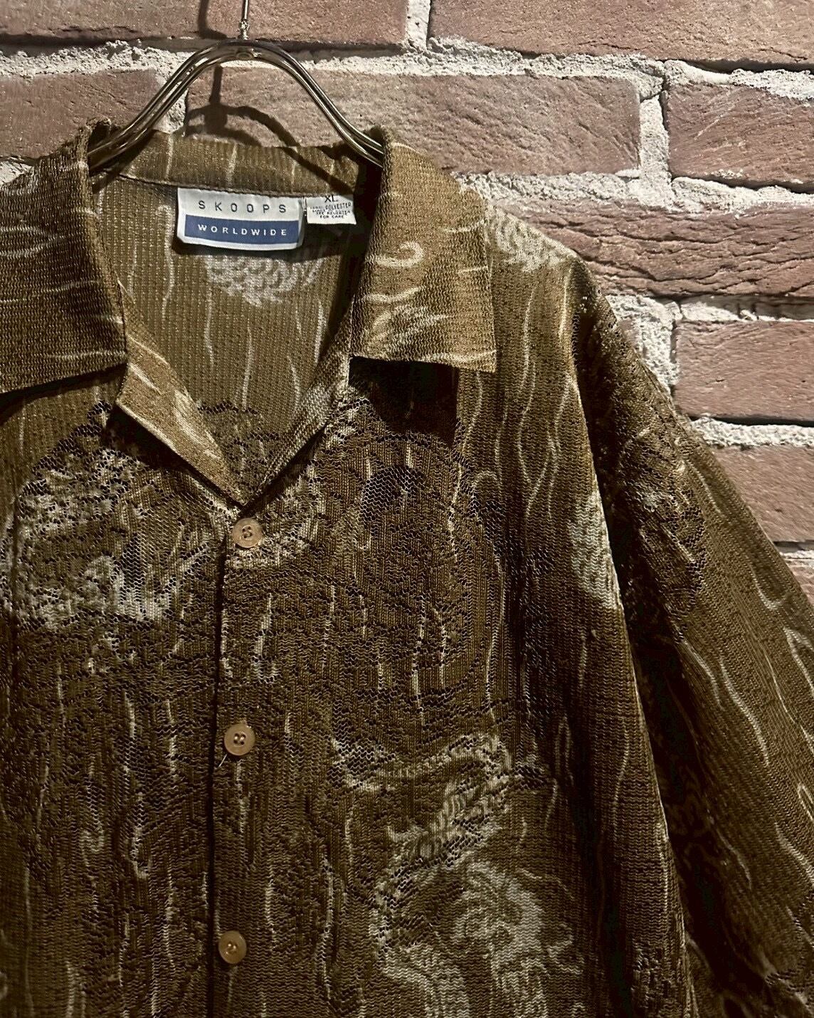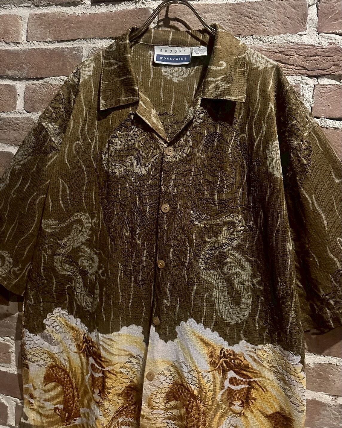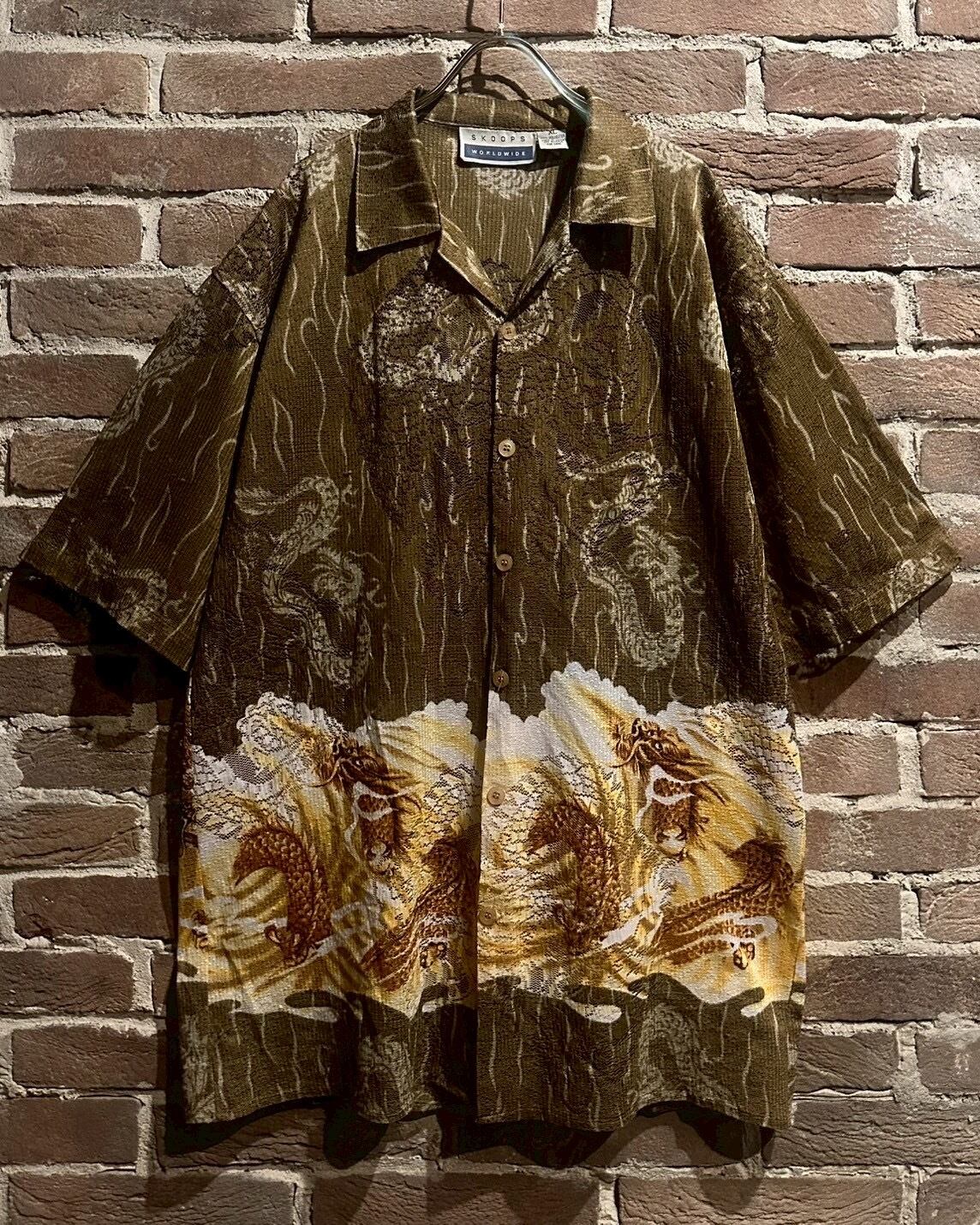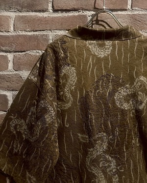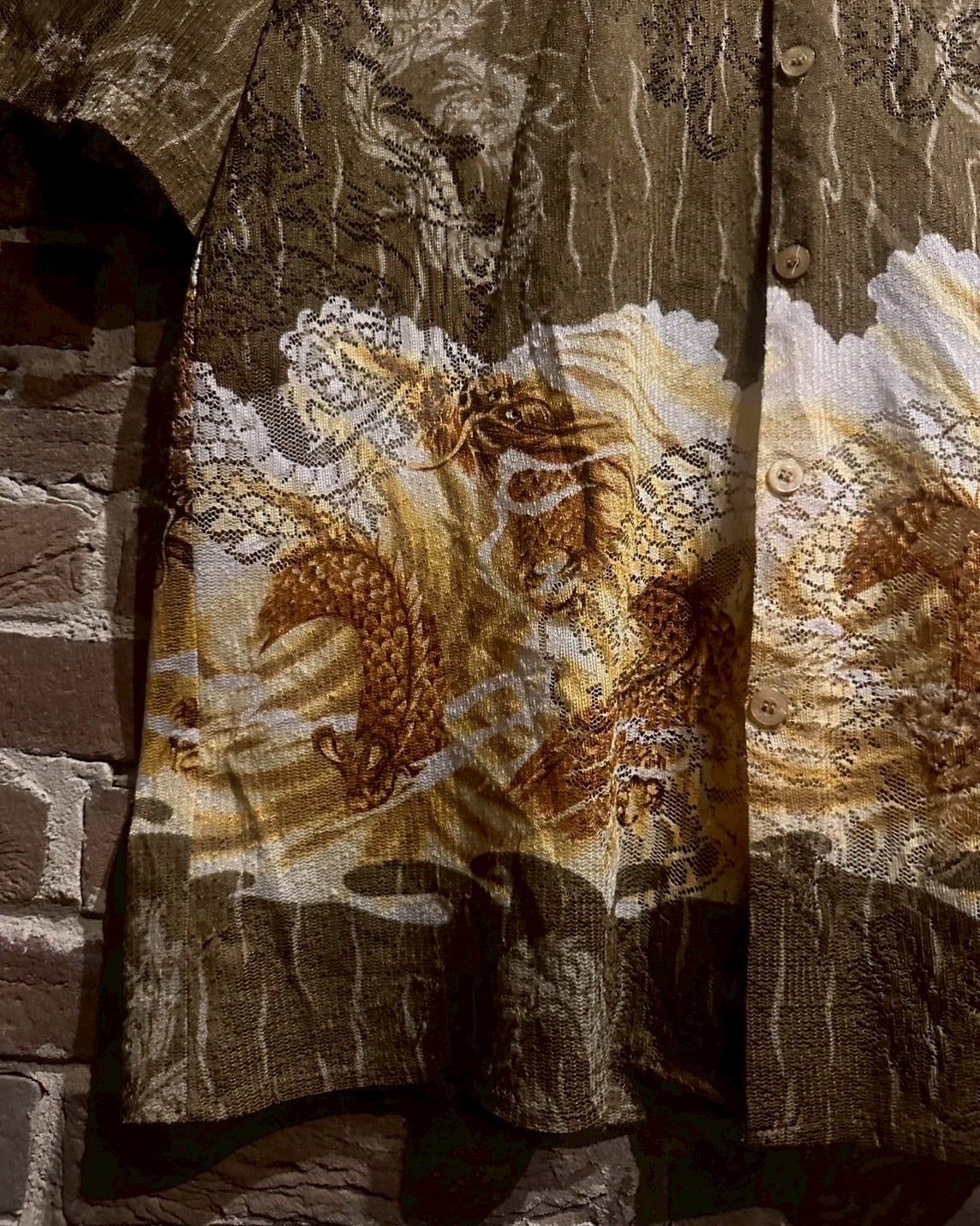 通気性が良く、着心地軽やかなメッシュ素材を用いたボディに、龍のデザインを載せた半袖オープンカラーシャツ。
