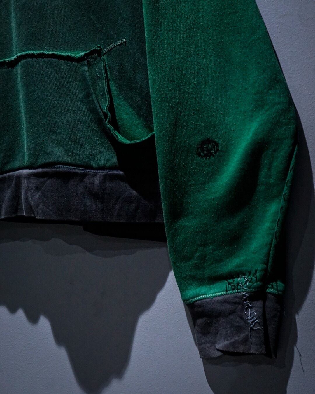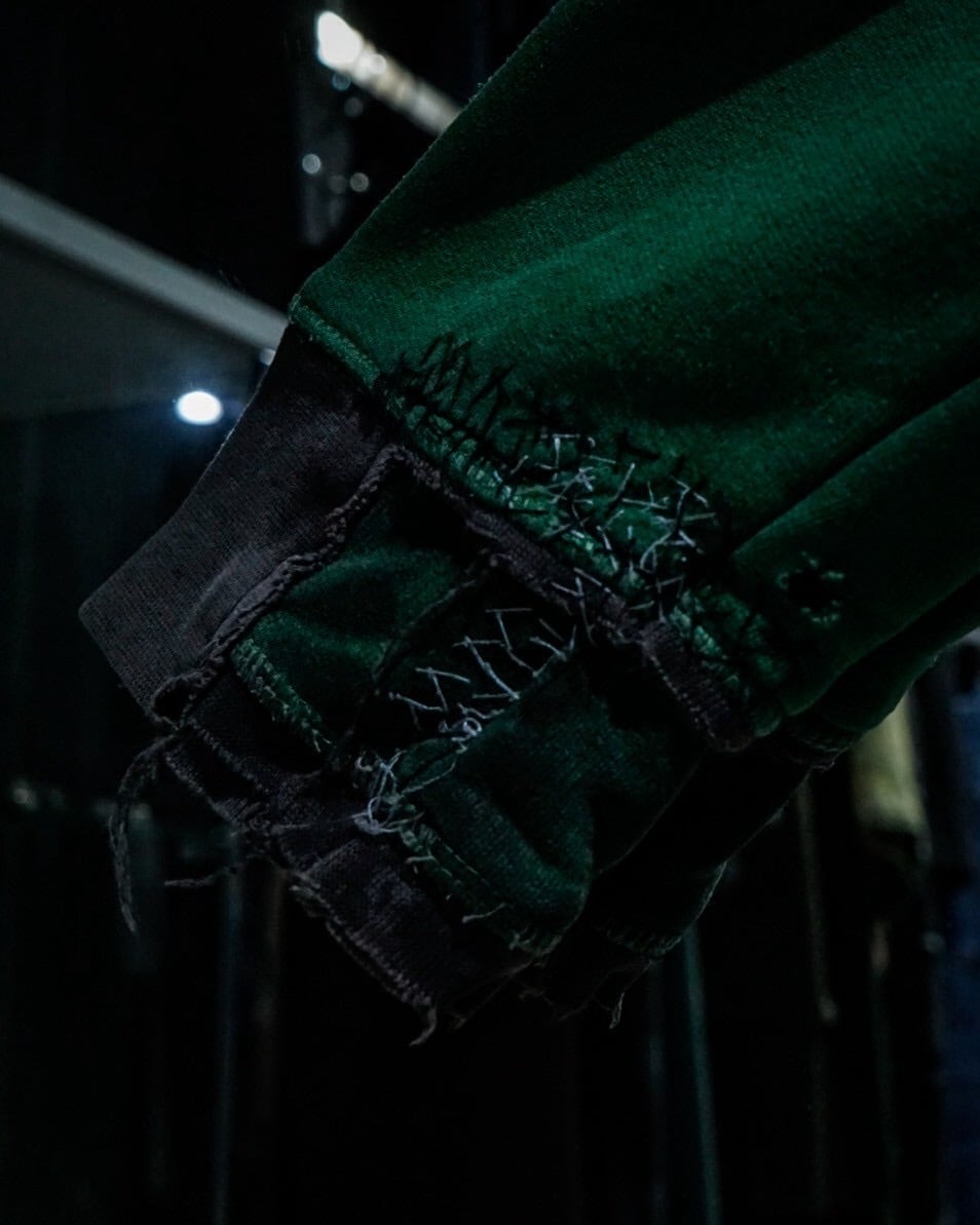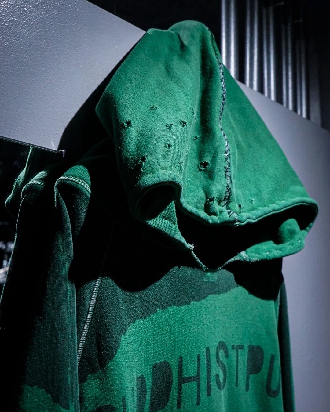 デザインはさることながら、ダメージ加工がめちゃくちゃイケてる、、、フードや袖に施されたランダムなステッチ等、このブランドらしさがしっかりと表現されています。