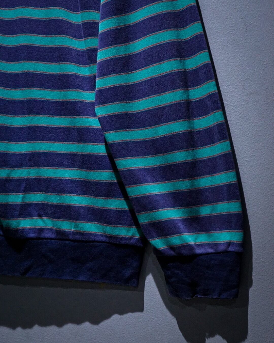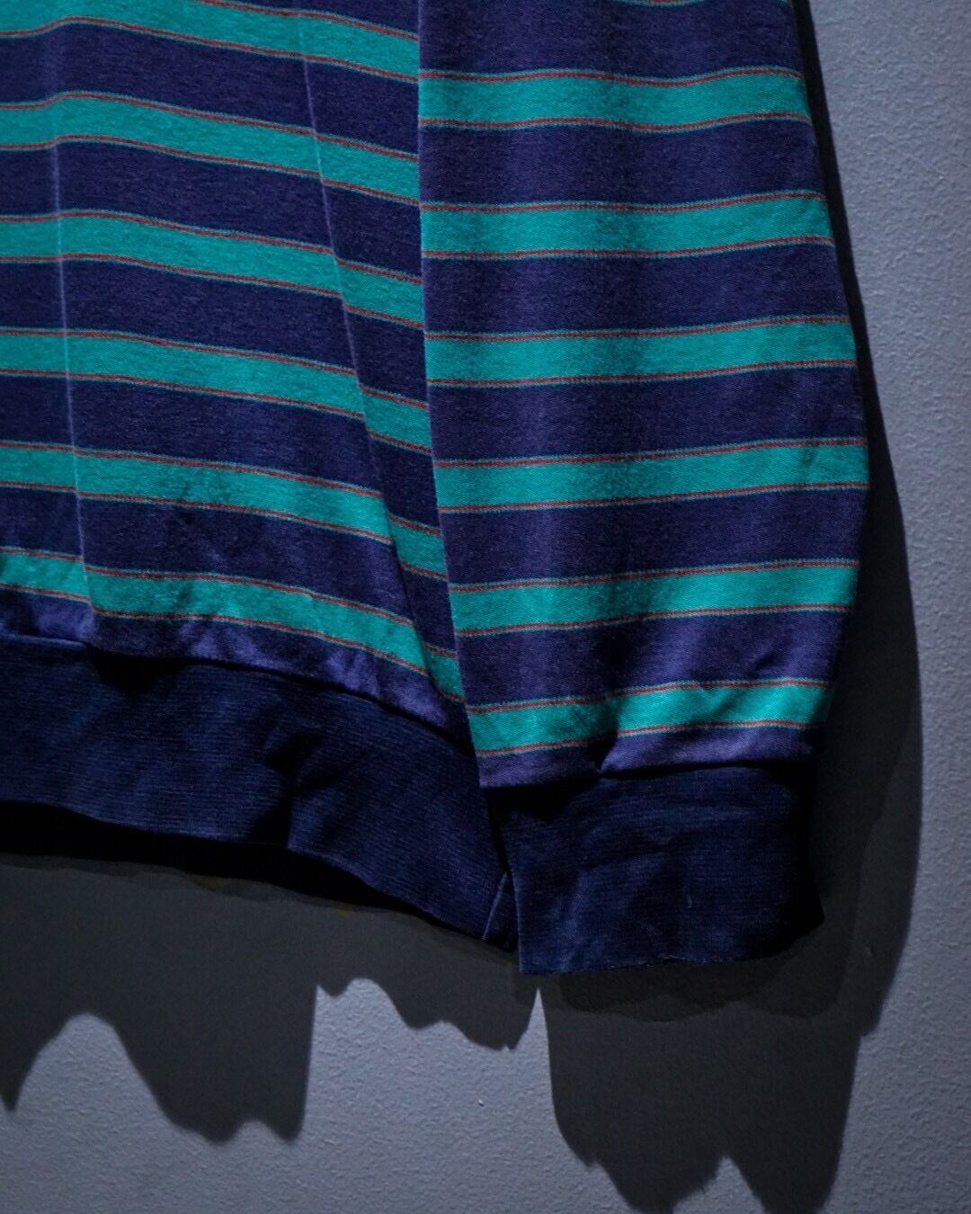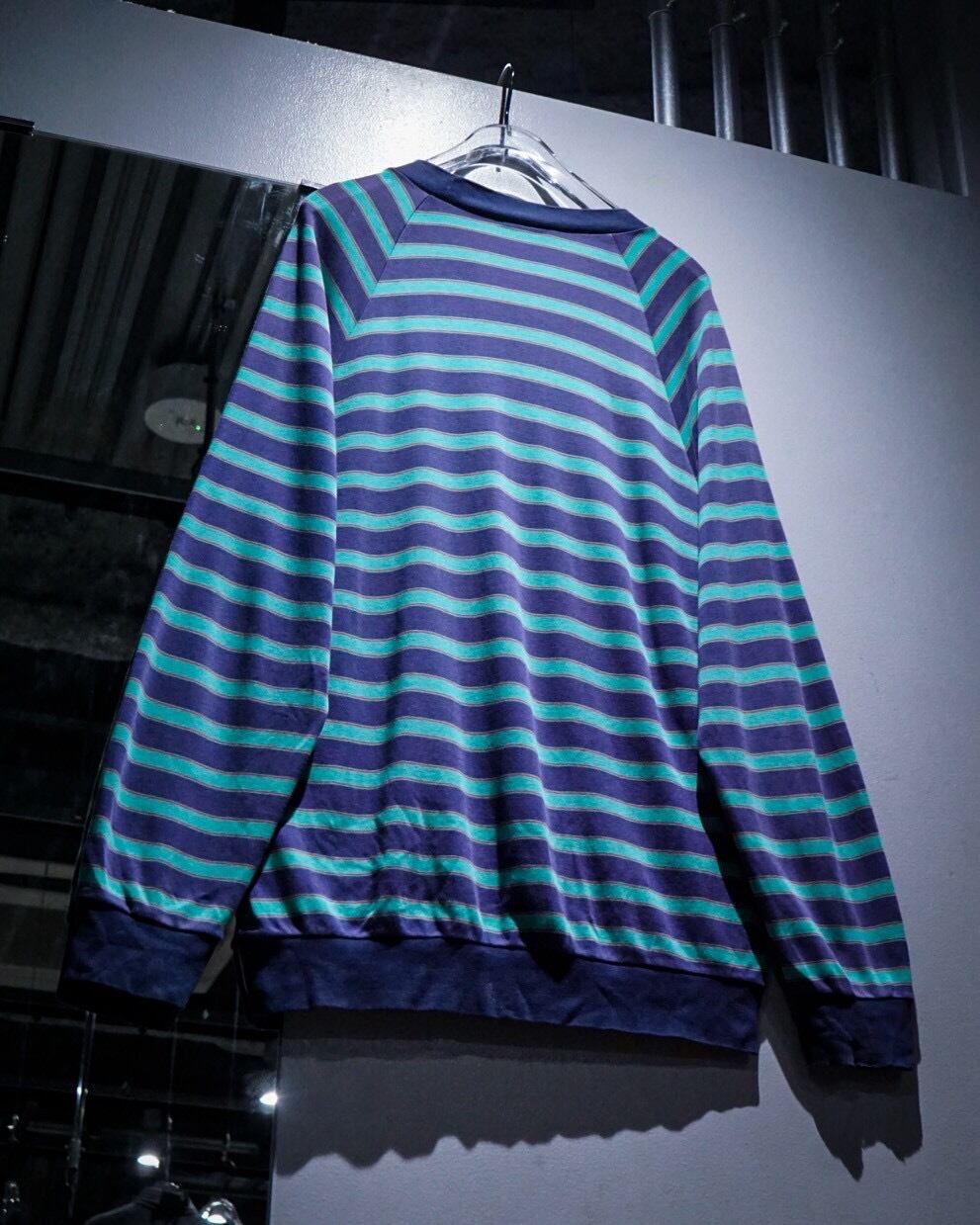 ネイビー、グリーン、赤の配色でボーダーに仕上げたフレンチメイドのスウェットシャツ。