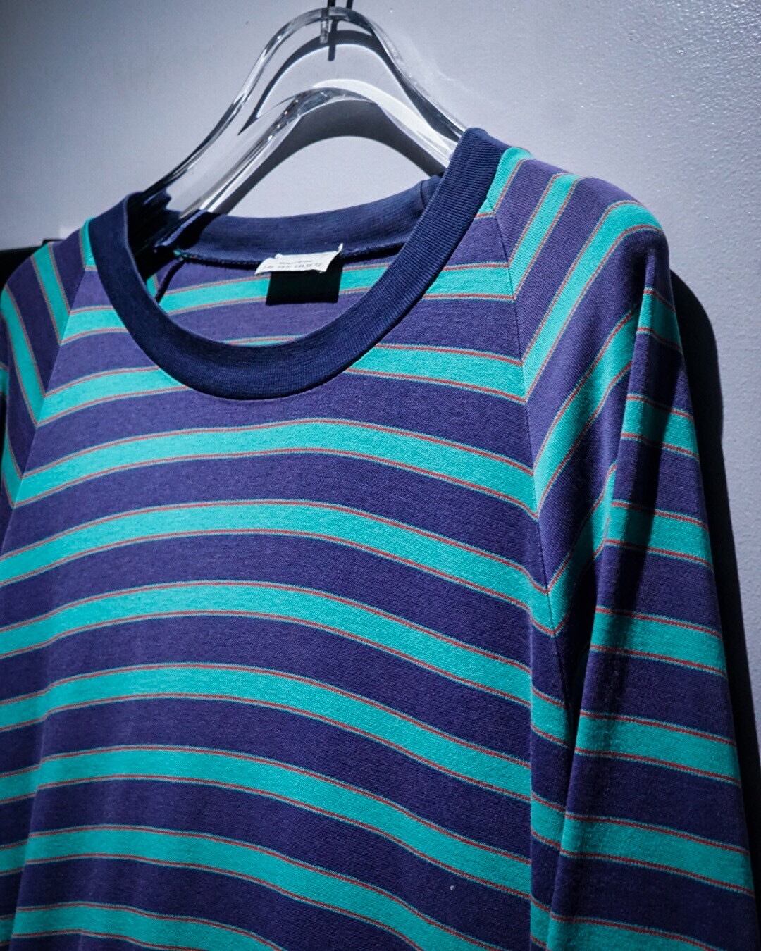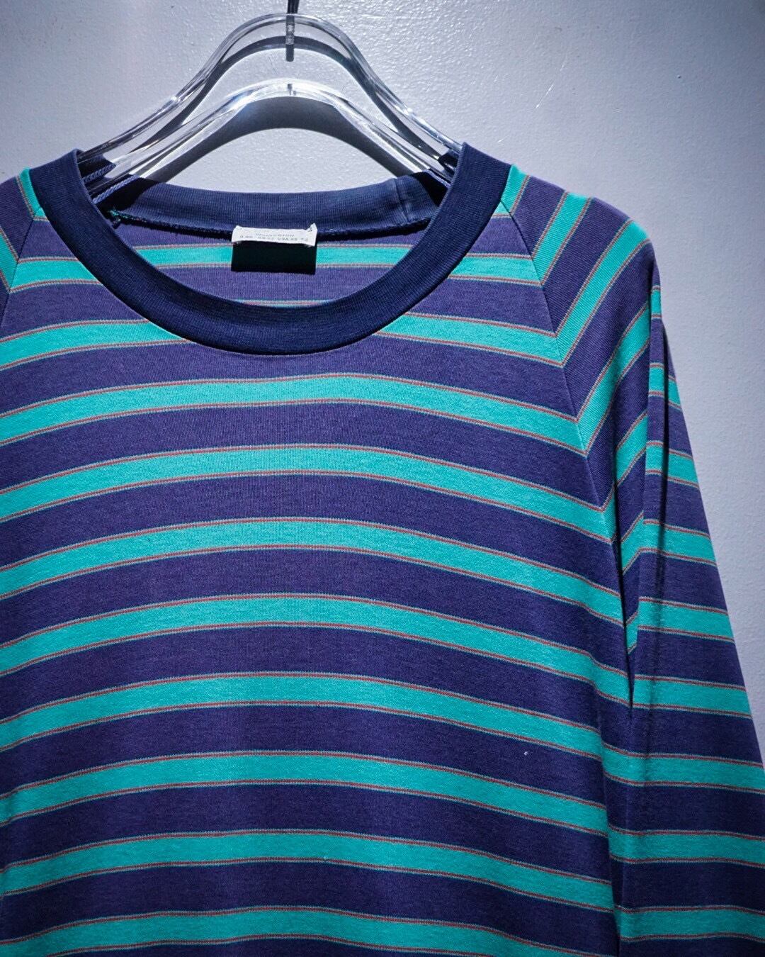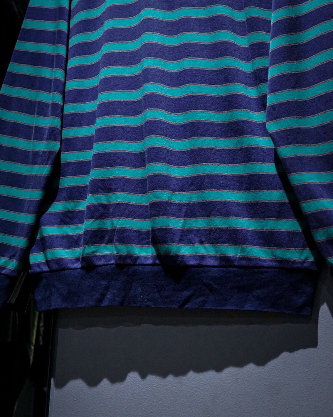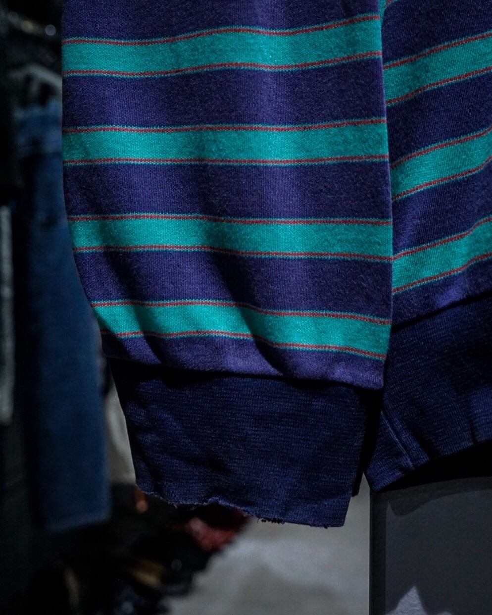 ネイビー、グリーン、赤の配色でボーダーに仕上げたフレンチメイドのスウェットシャツ。