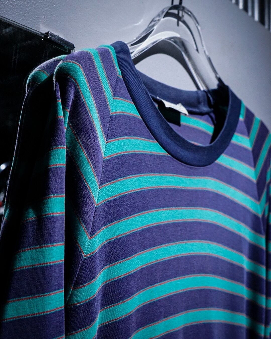 ピッチでボーダーを載せたことで立体感を演出。野暮ったくなりがちなボーダーの中でも非常に洒落た1着かと。