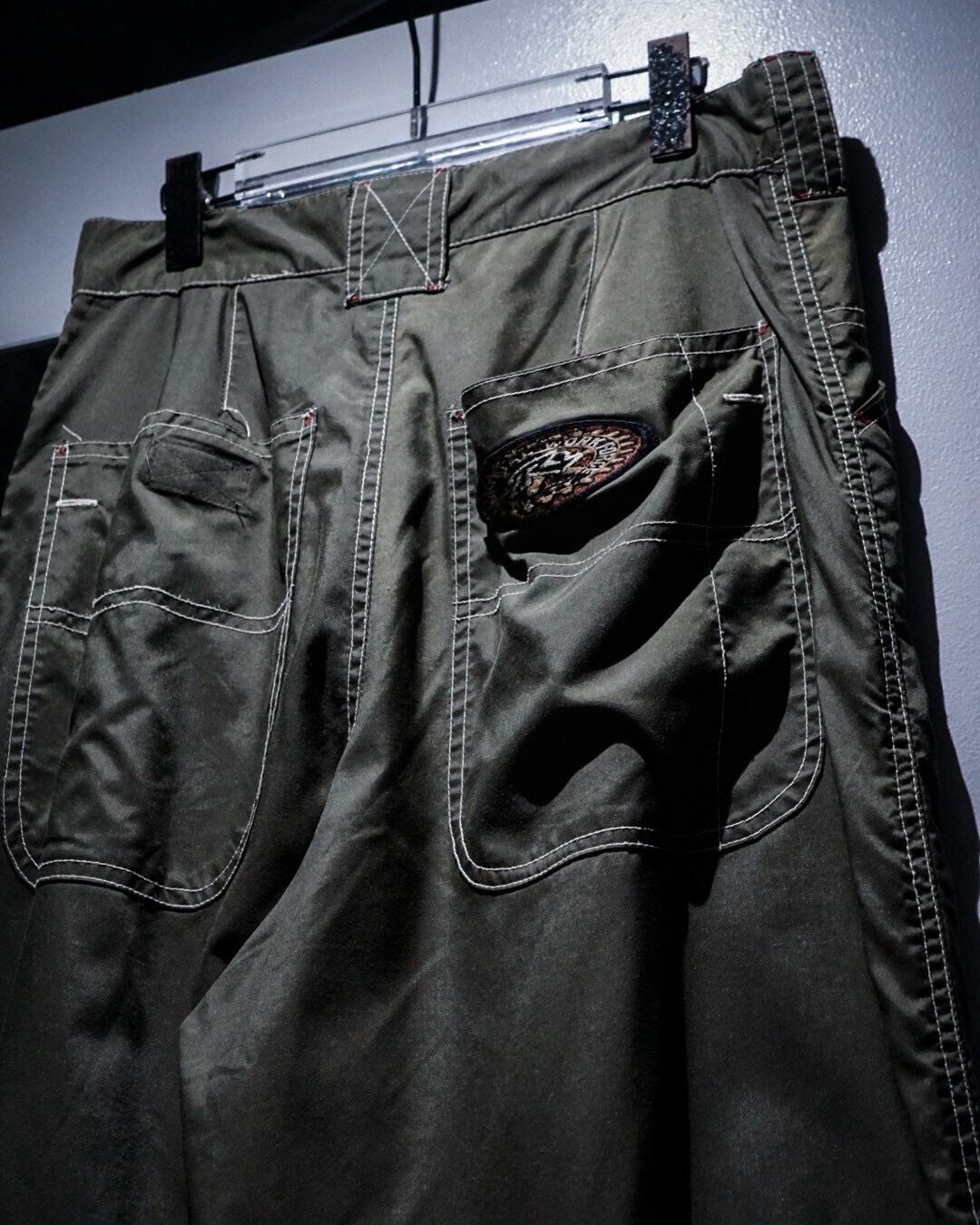 テーパードシルエットや絞りの効いた個体が多い中こちらは、裾にかけて下に綺麗にストンと落ちる美しいストレートシルエット。ありそうで中々見つからない1本かと。