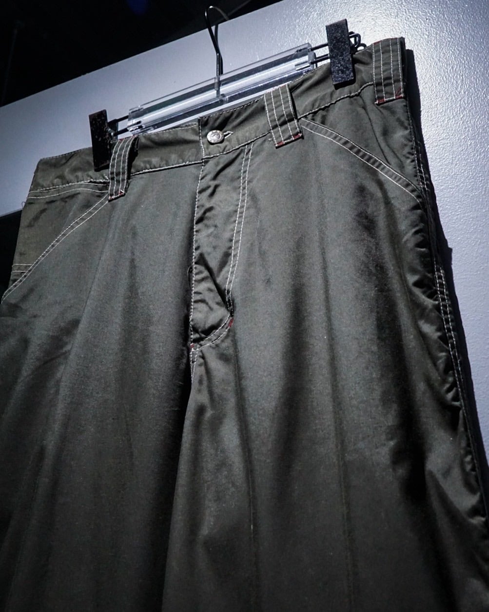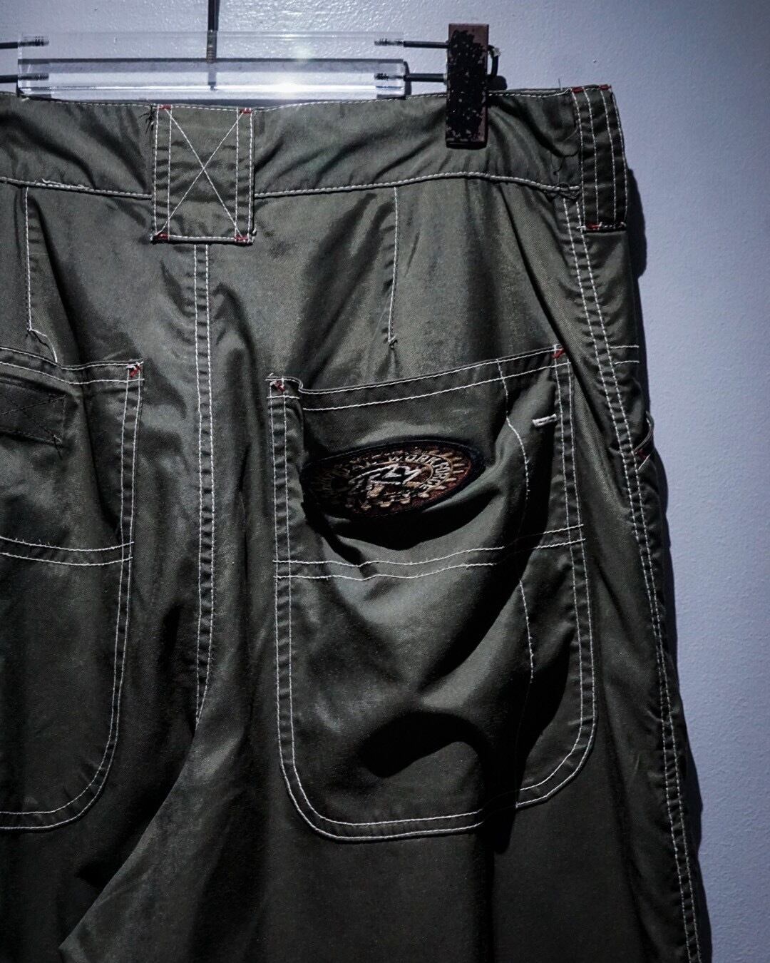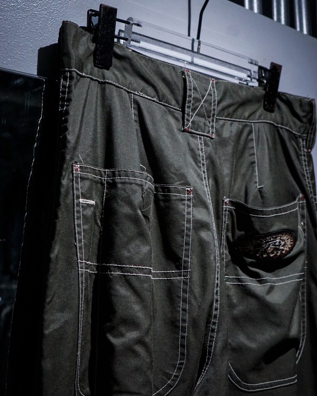 ハリのあるナイロンを用いたボディに、裾にリブの効いた生地を切り替えたナイロンパンツ。
