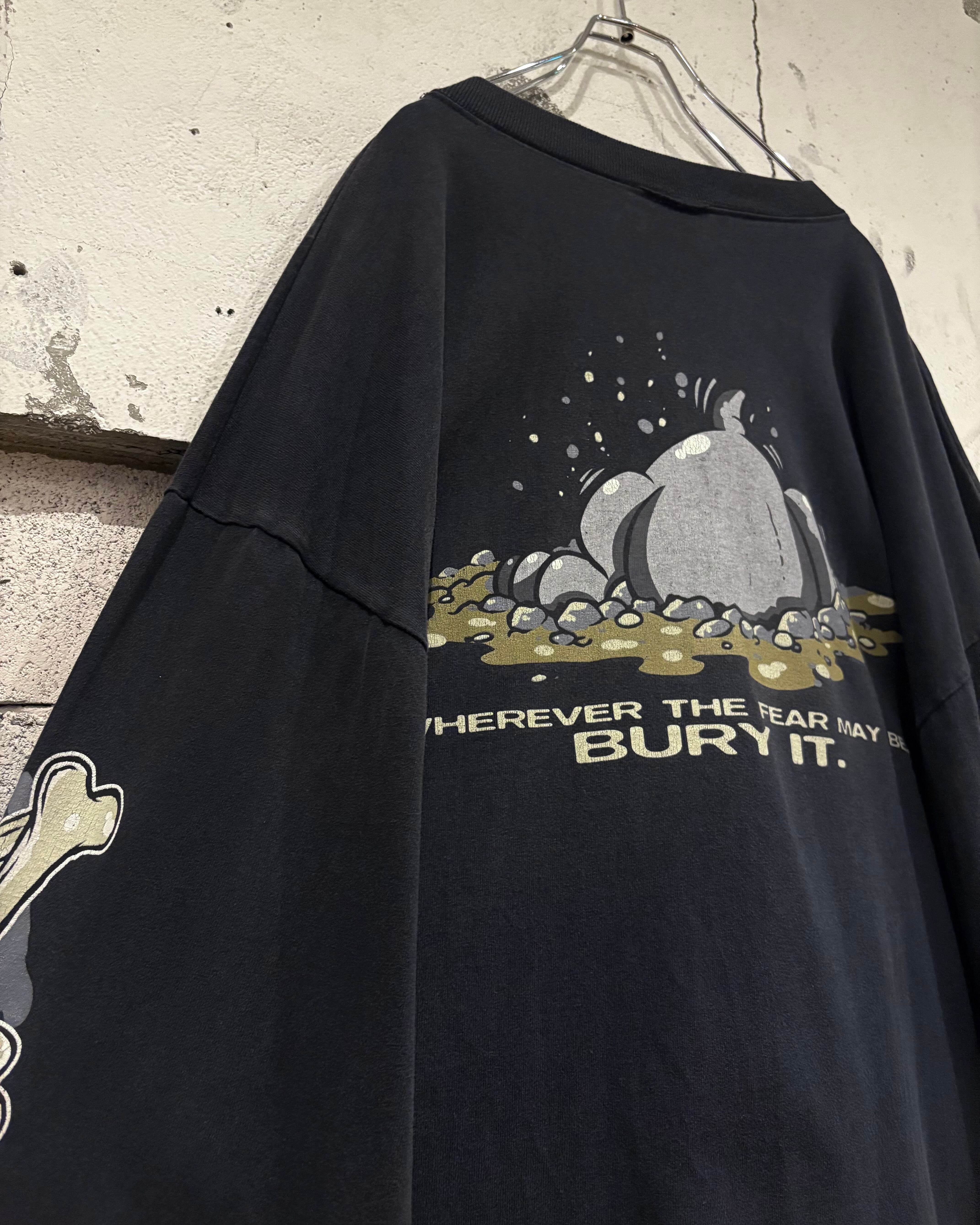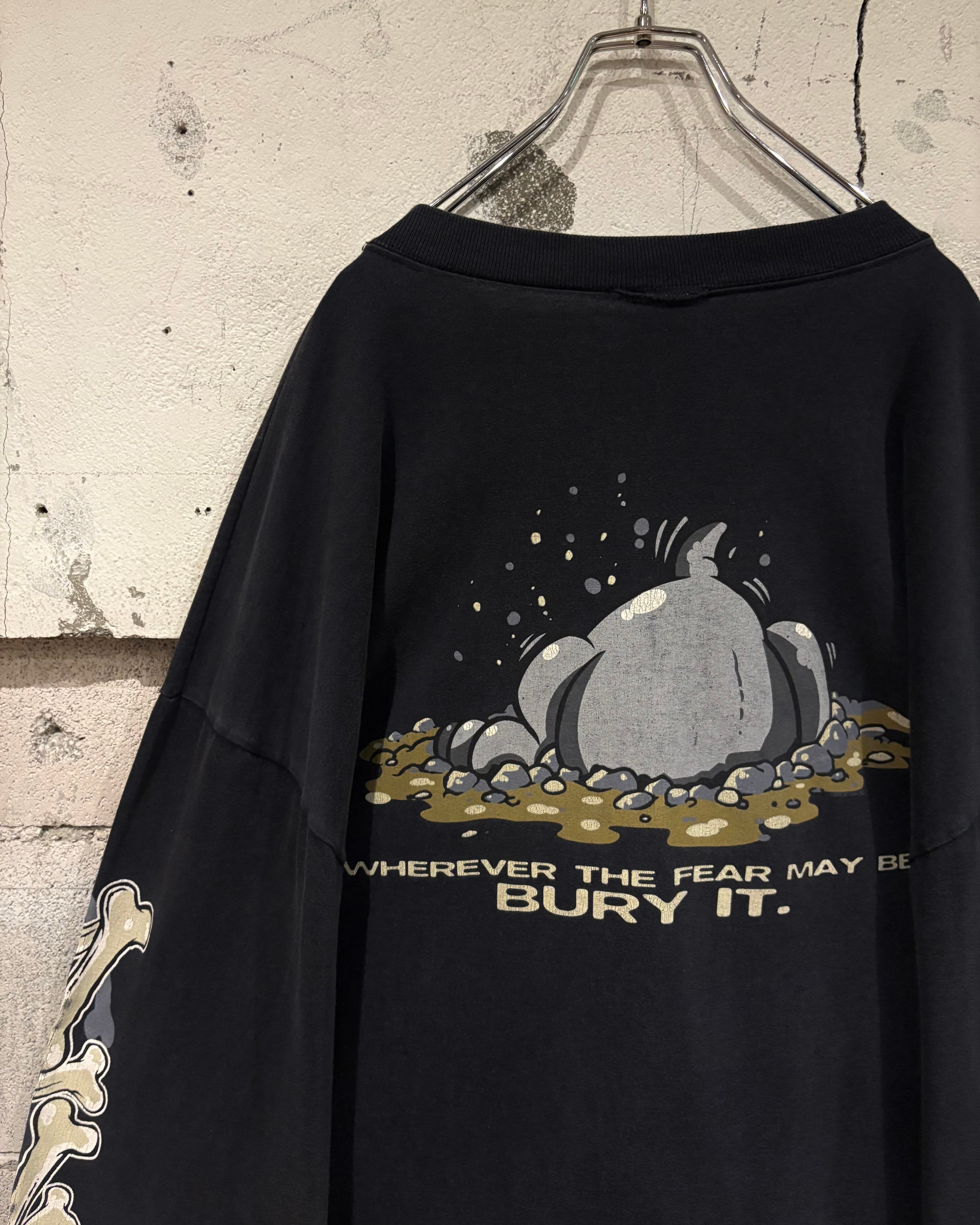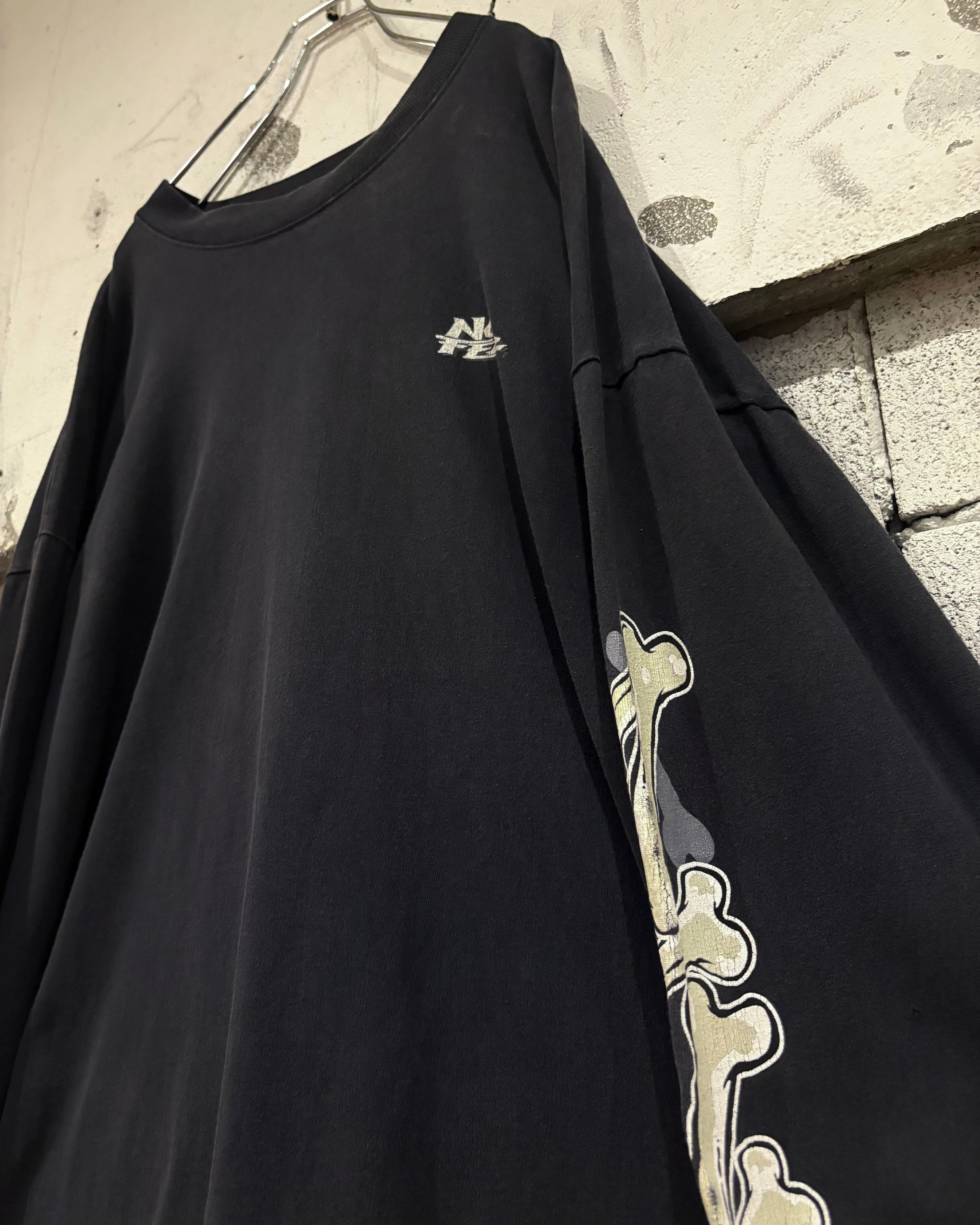 フェード感の良いブラックのボディに、袖に骨、背面にグラフィックをプリントした、NO FEARらしいデザインが光る1着。