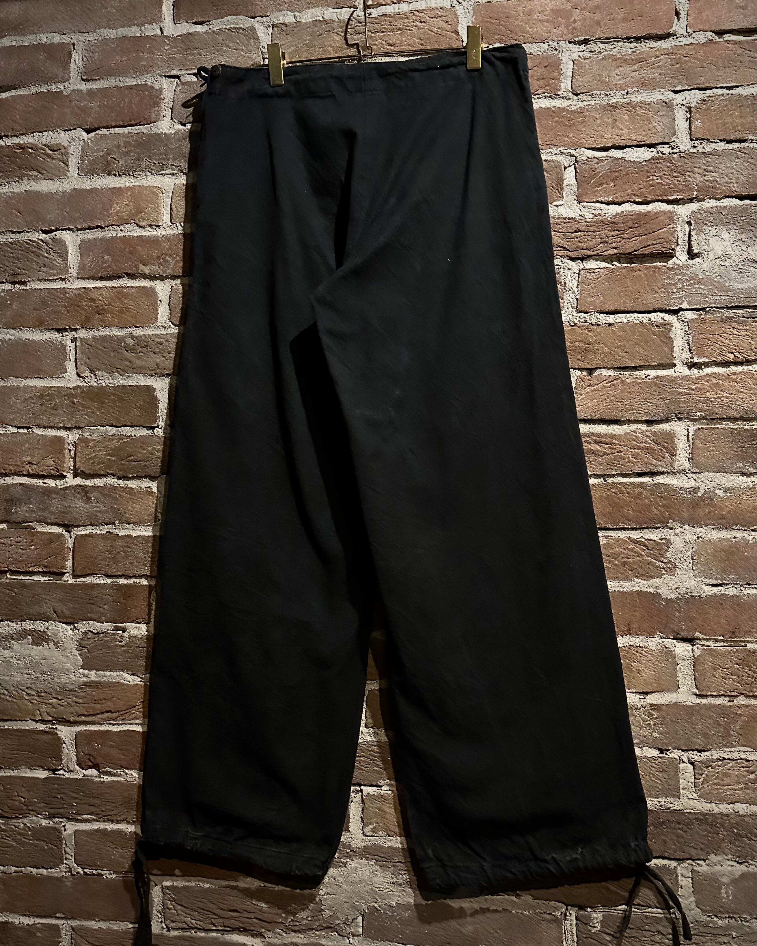 裾にはドローコードが備わっており、溜まりを作った着こなしも可能。開いてあげるとズドンと落ちるシルエットに早変わり。靴やスタイル、気分によってシルエットを変えられるのは嬉しいポイントですね。
