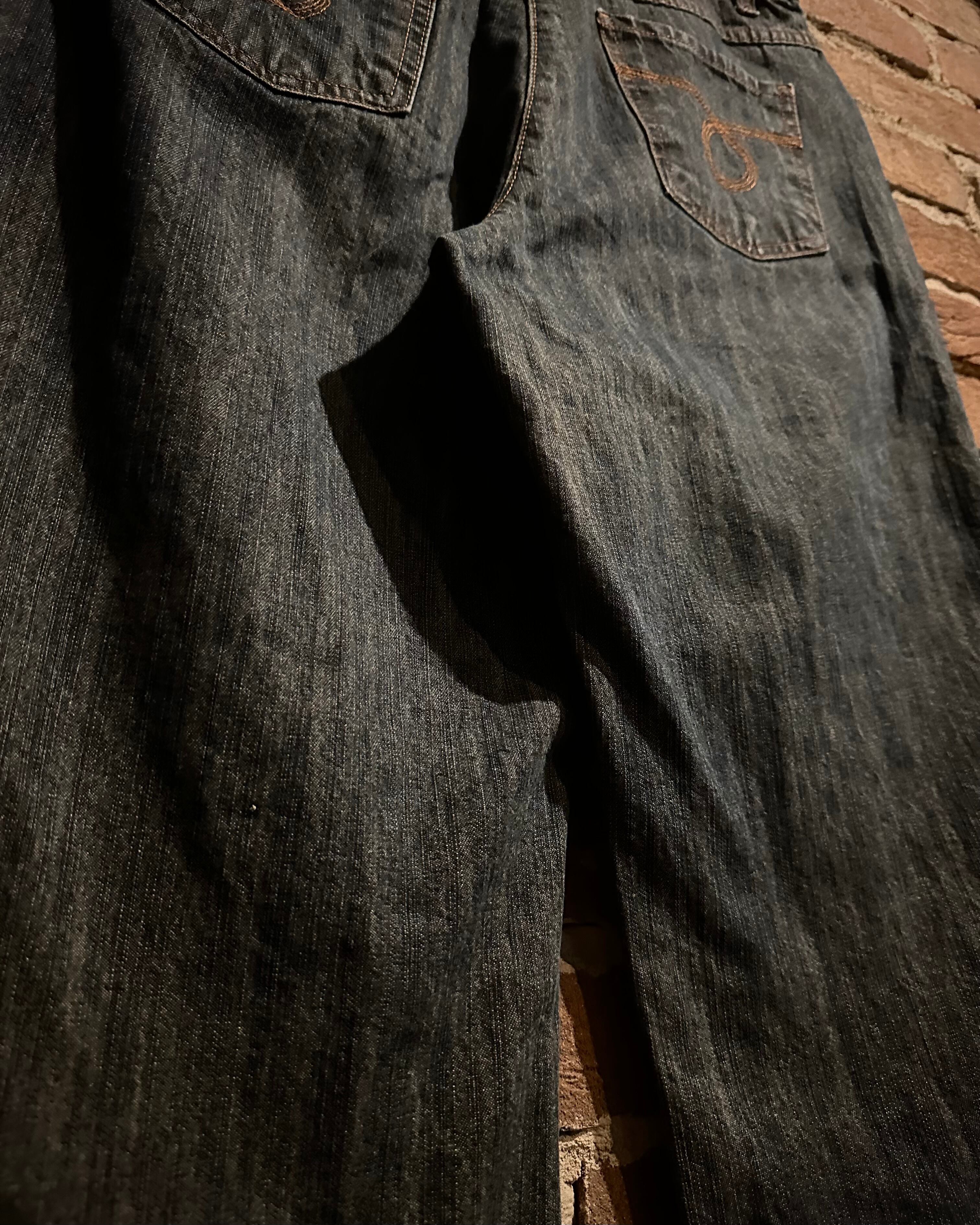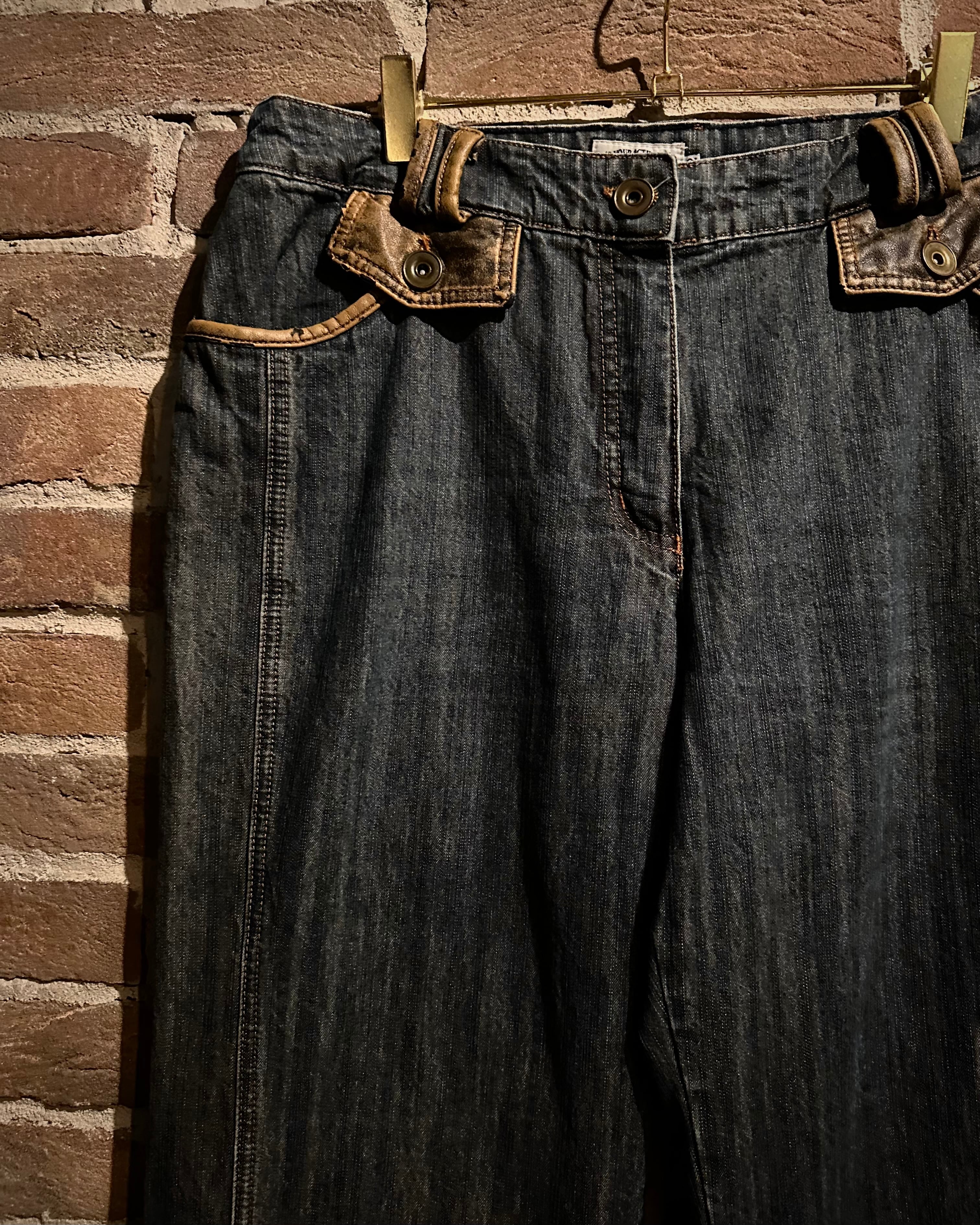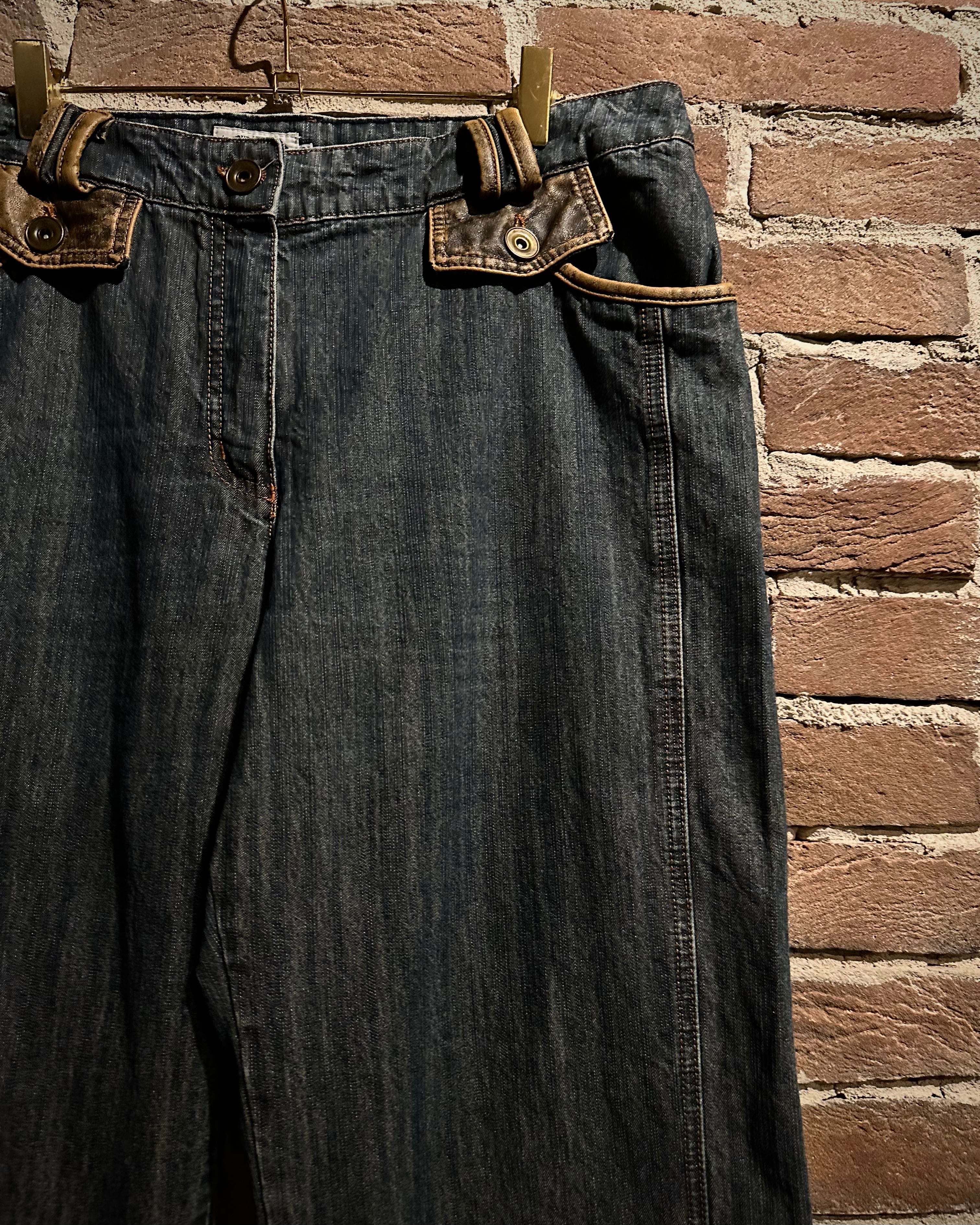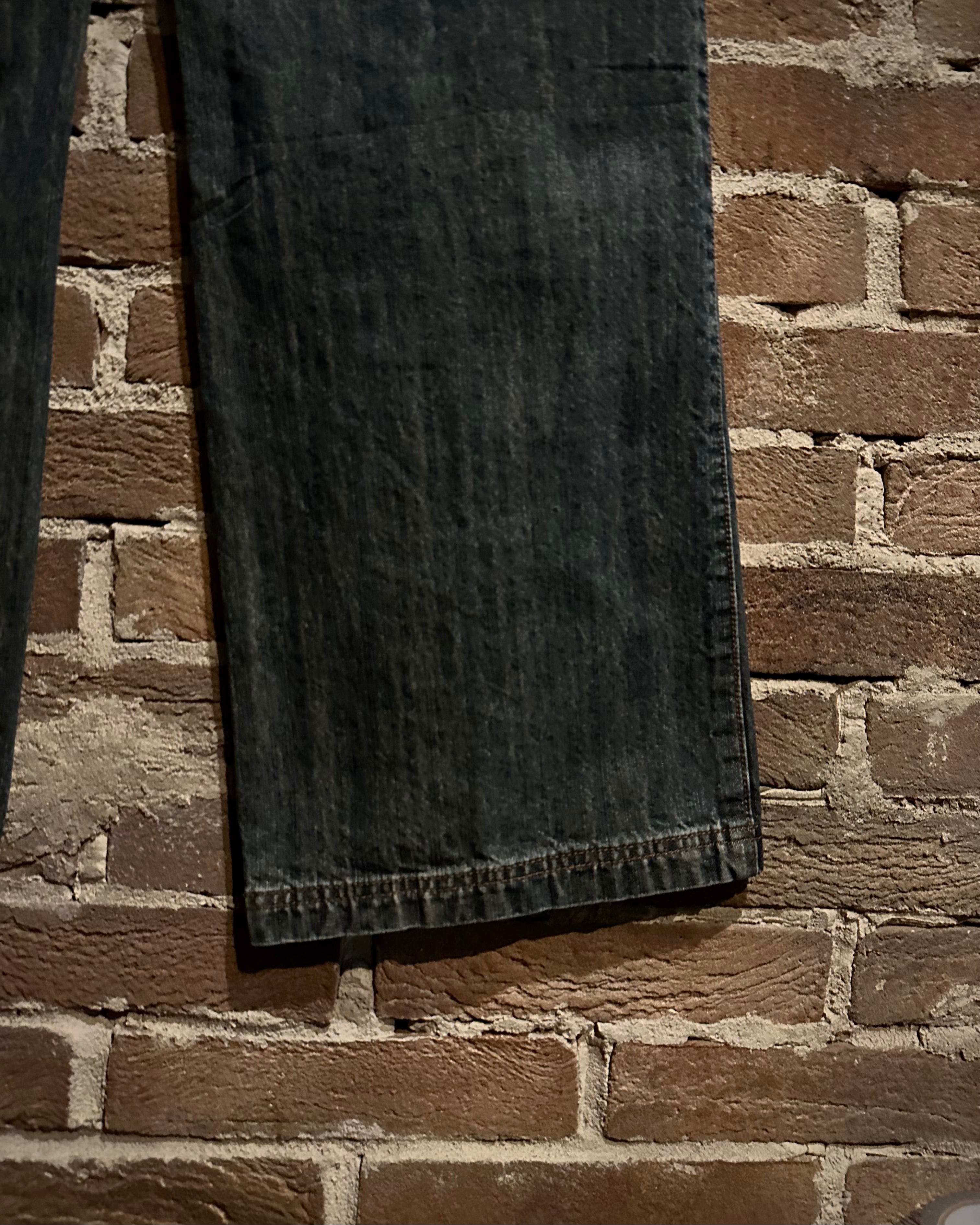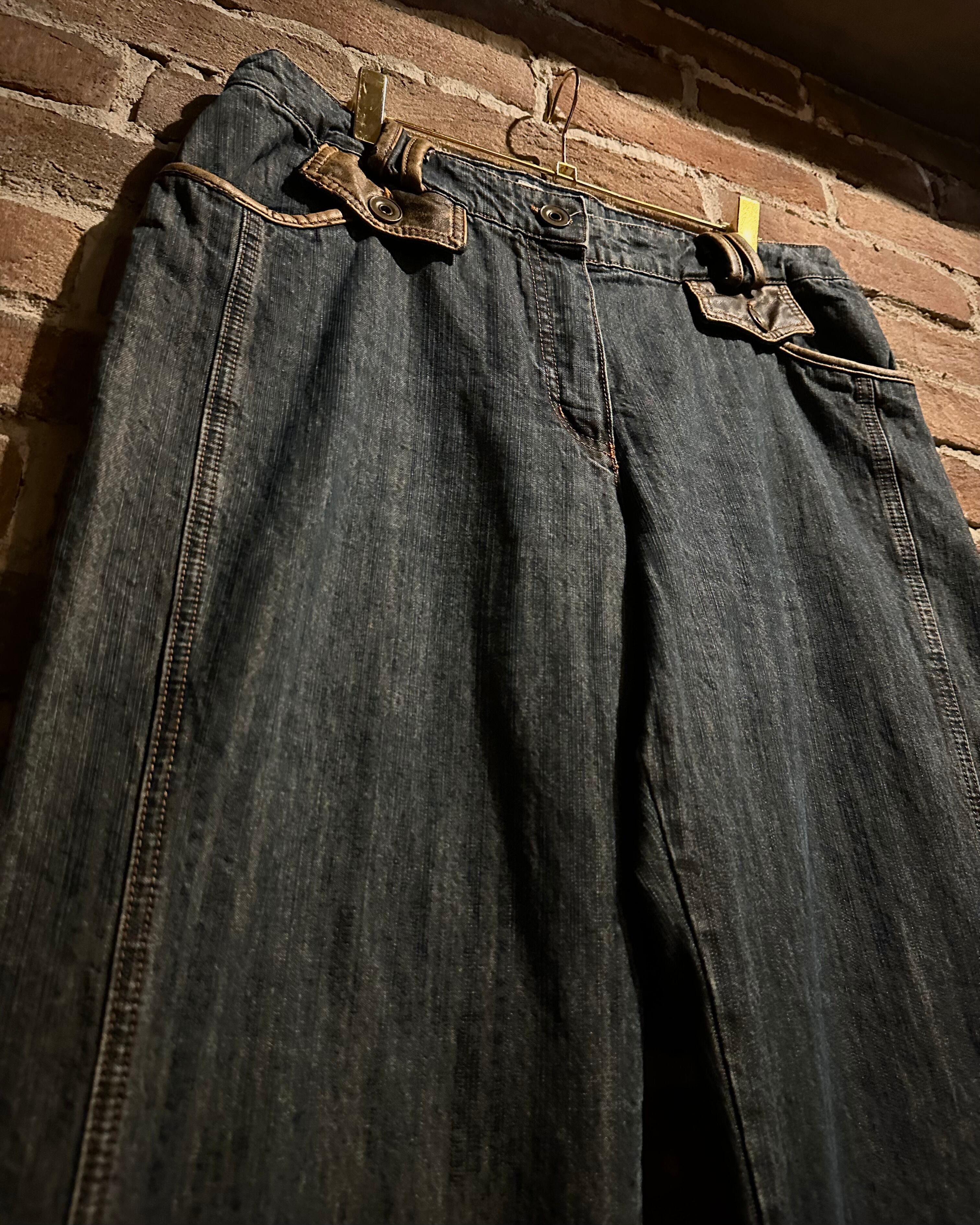 縦落ちの美しいデニムのボディに、レザーを切り替えた稀有なバギーパンツ。