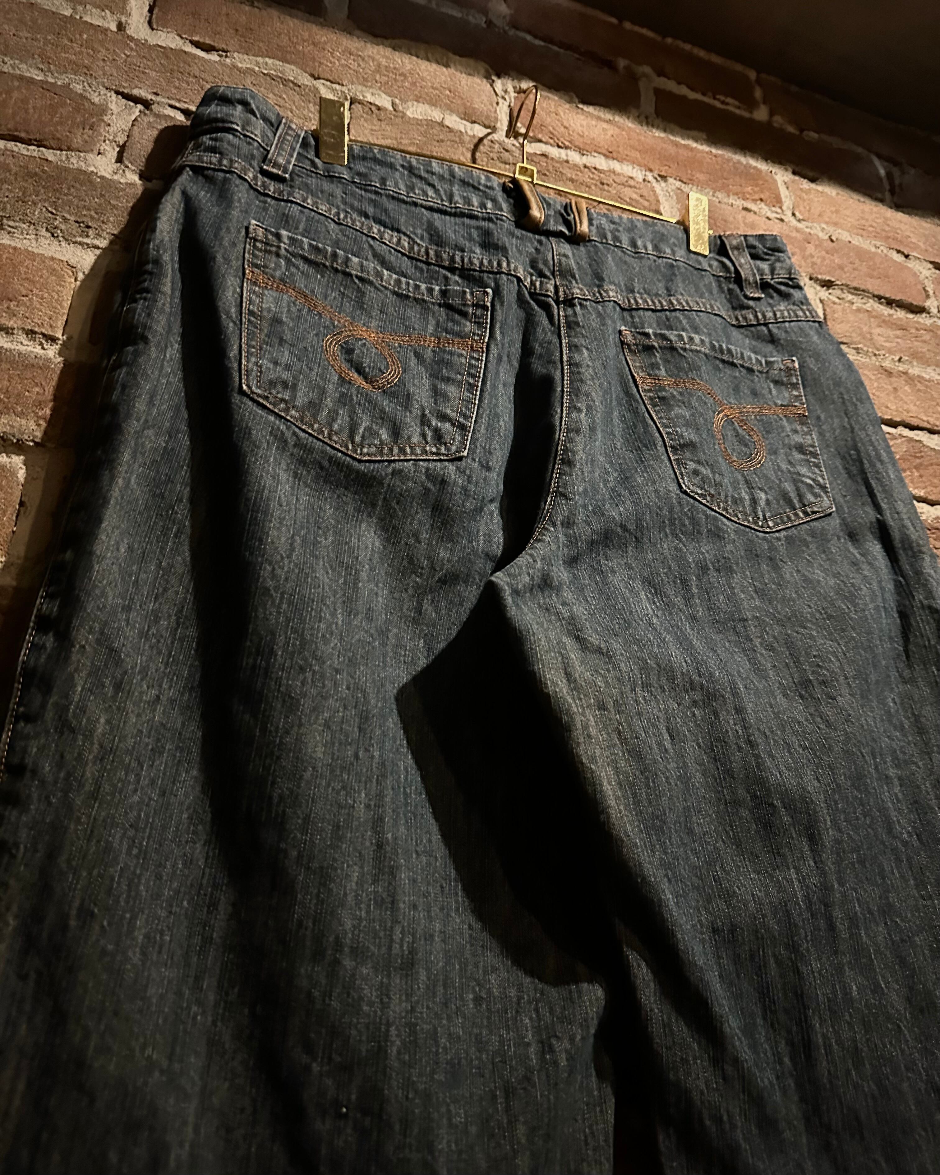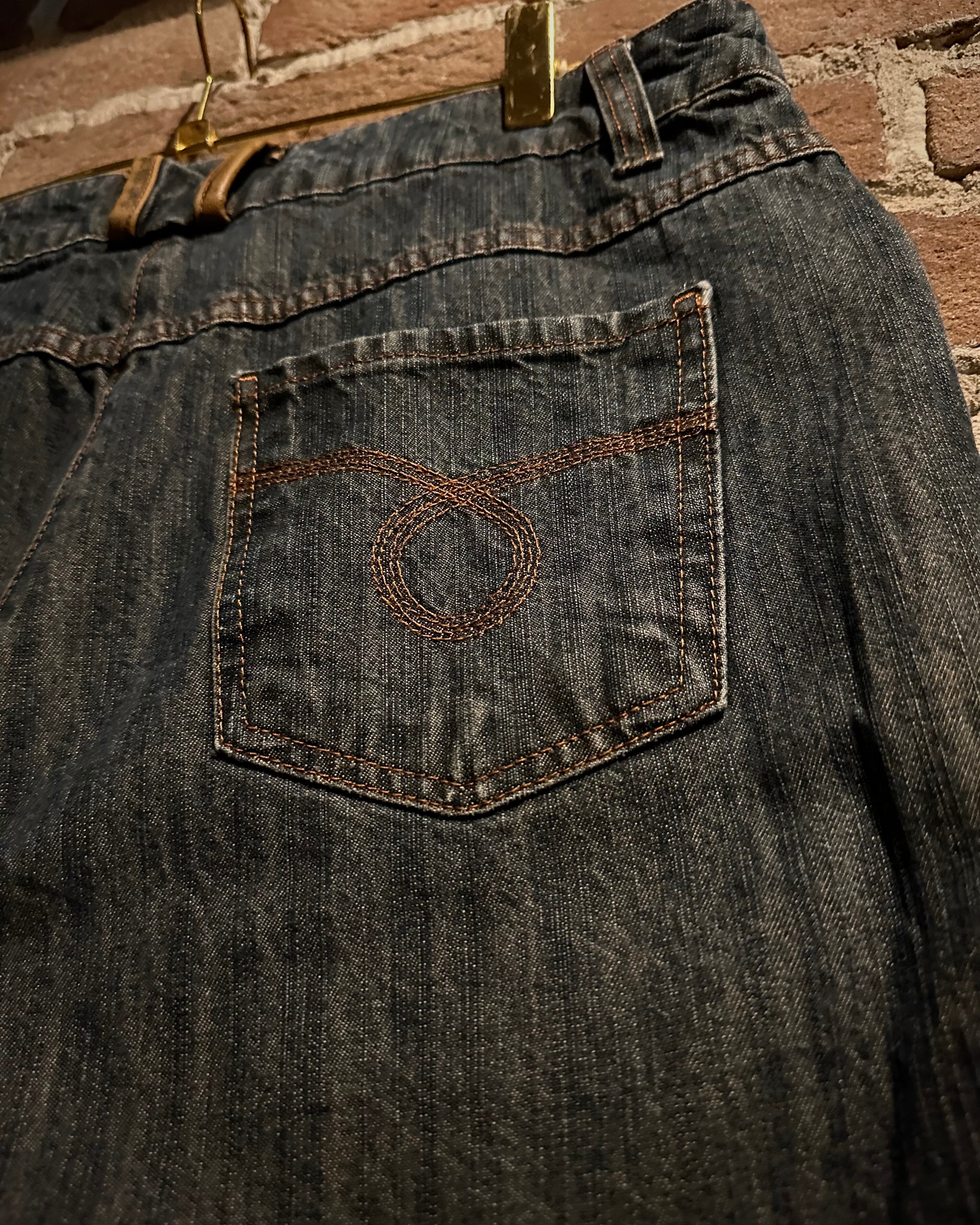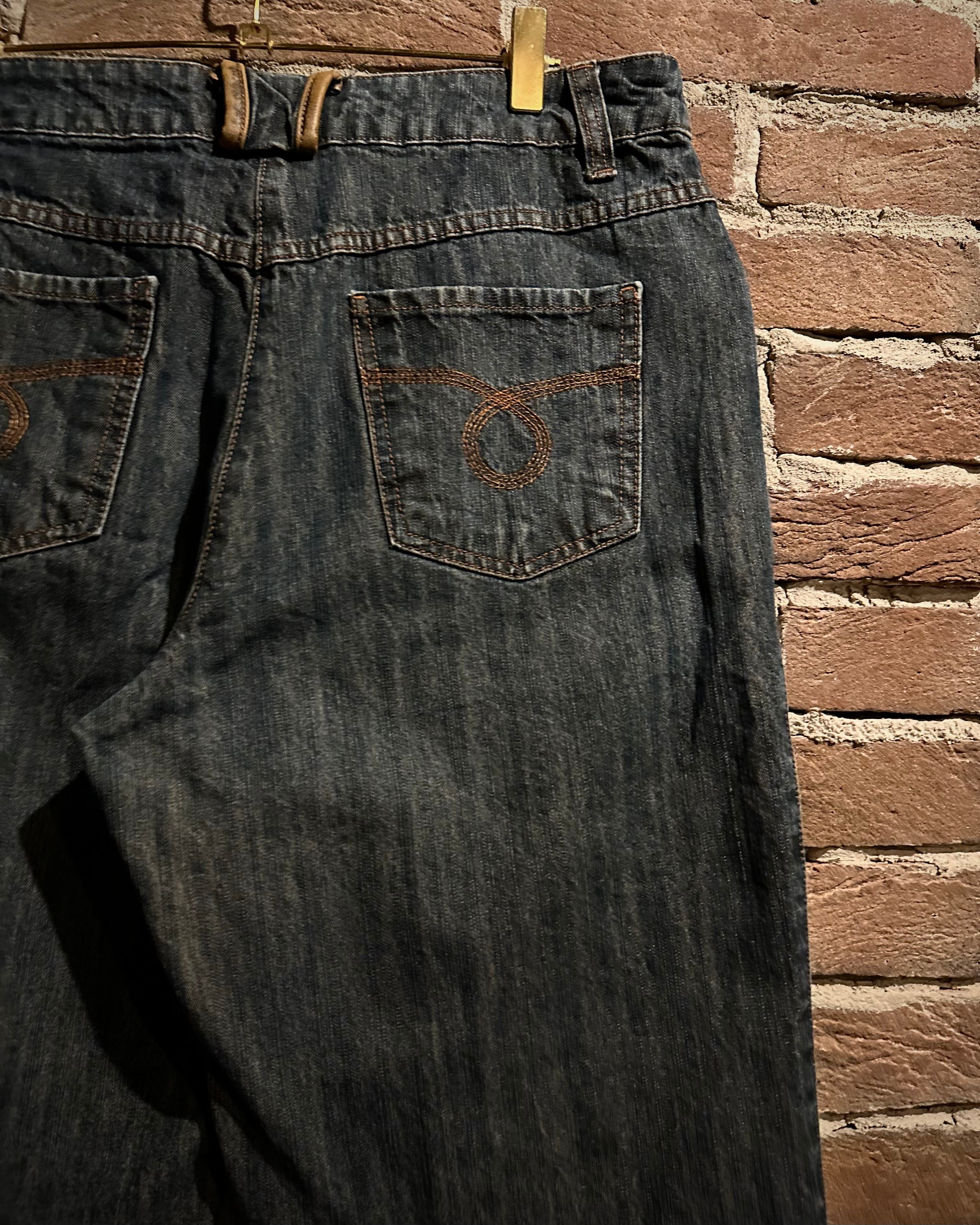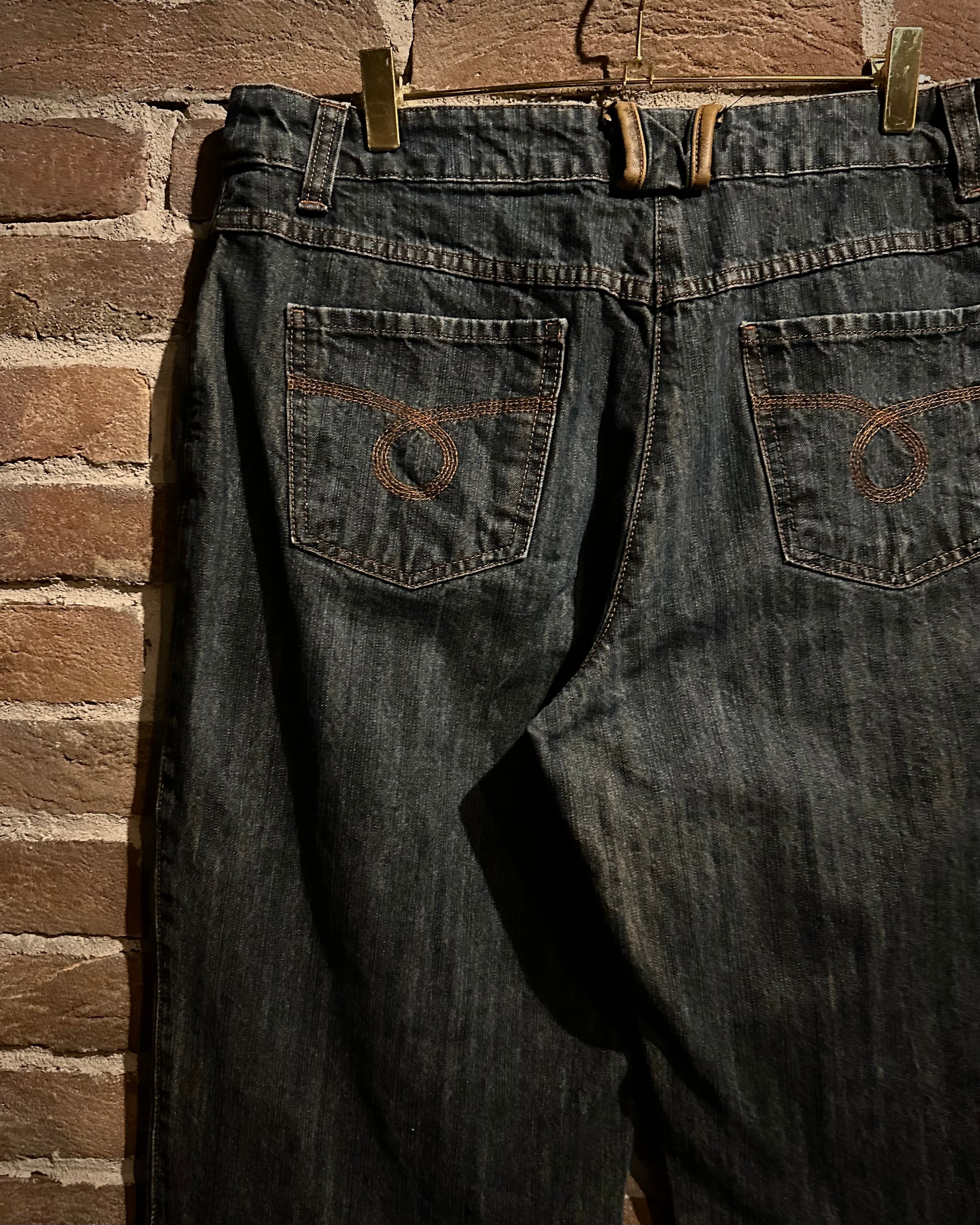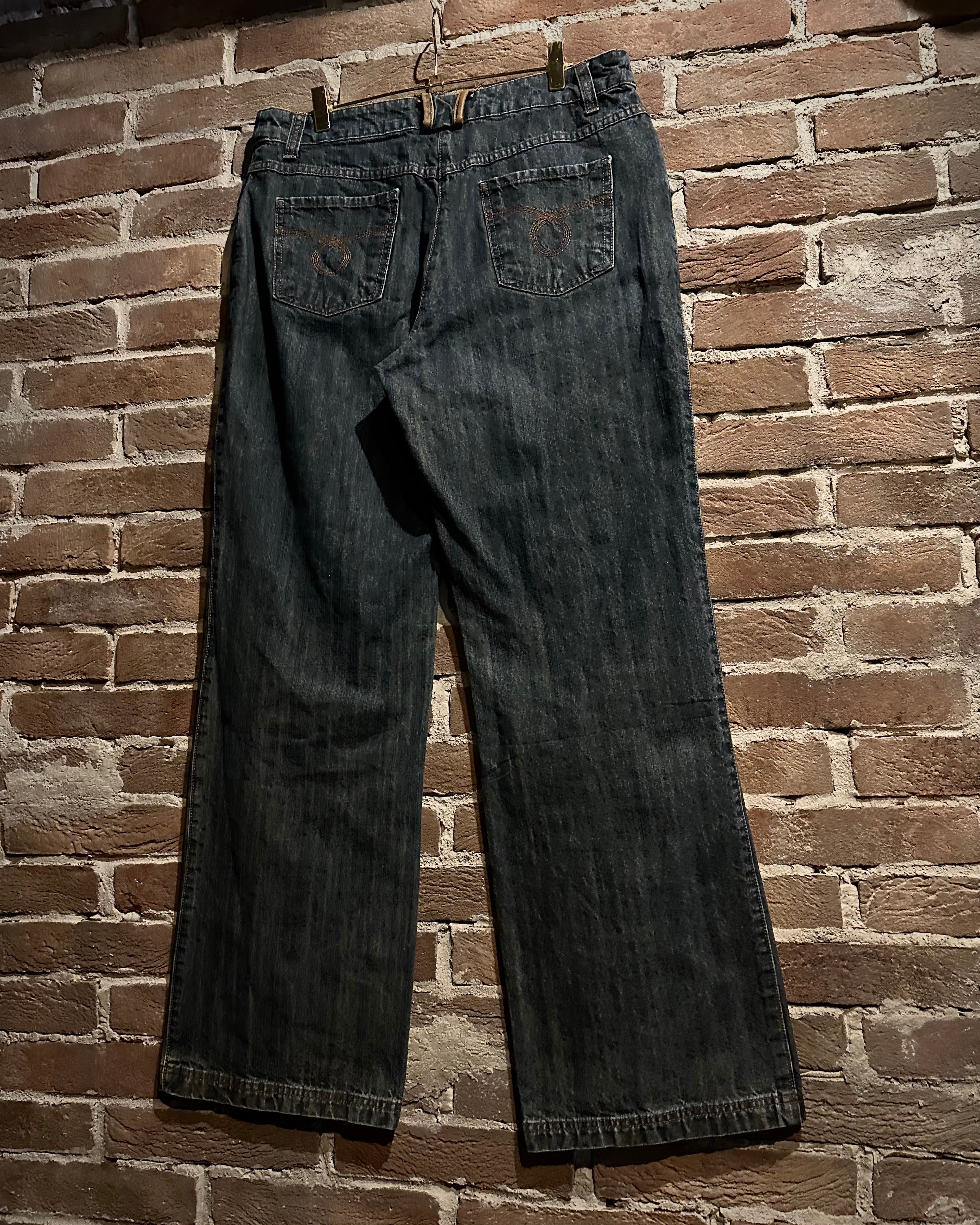 縦落ちの美しいデニムのボディに、レザーを切り替えた稀有なバギーパンツ。