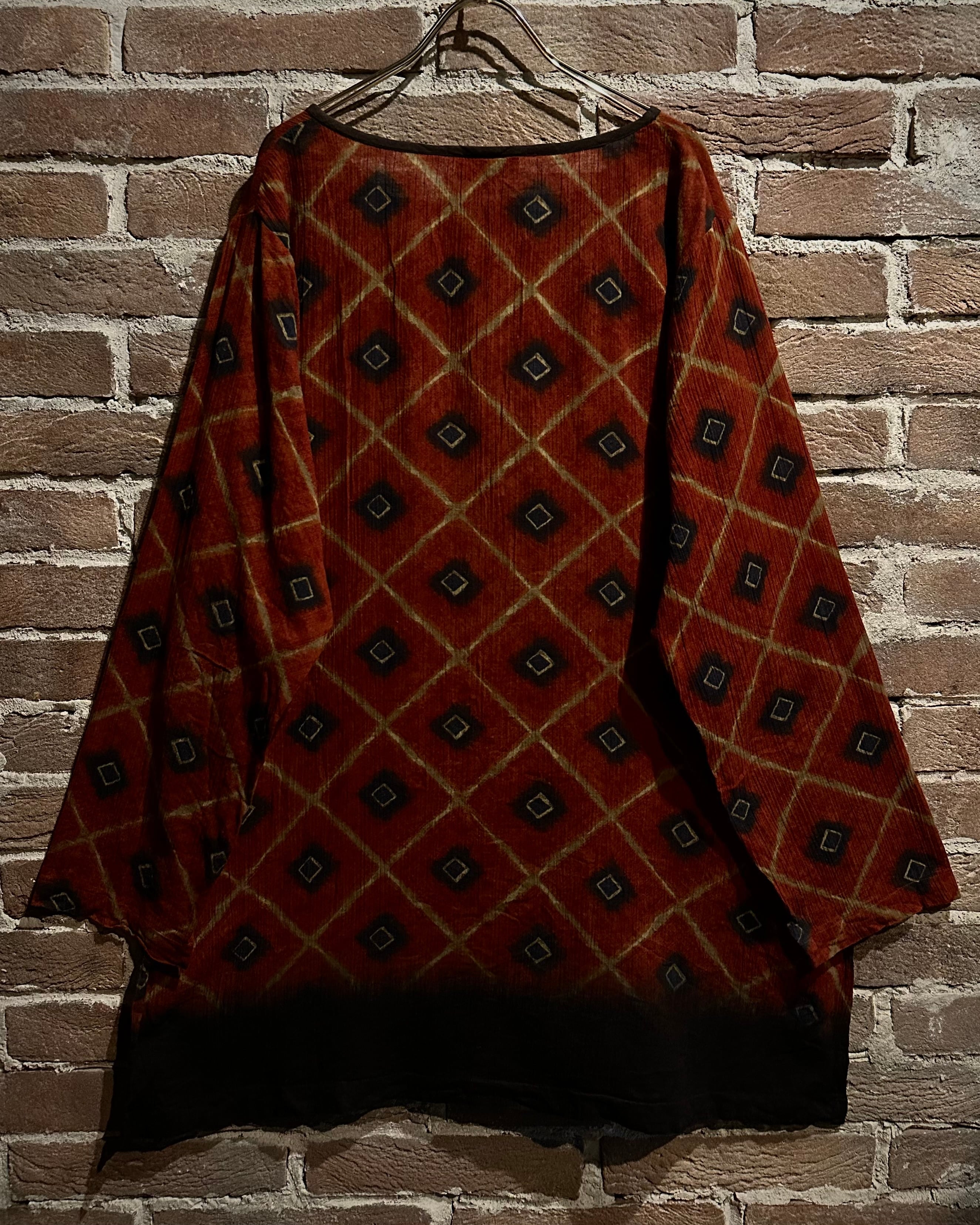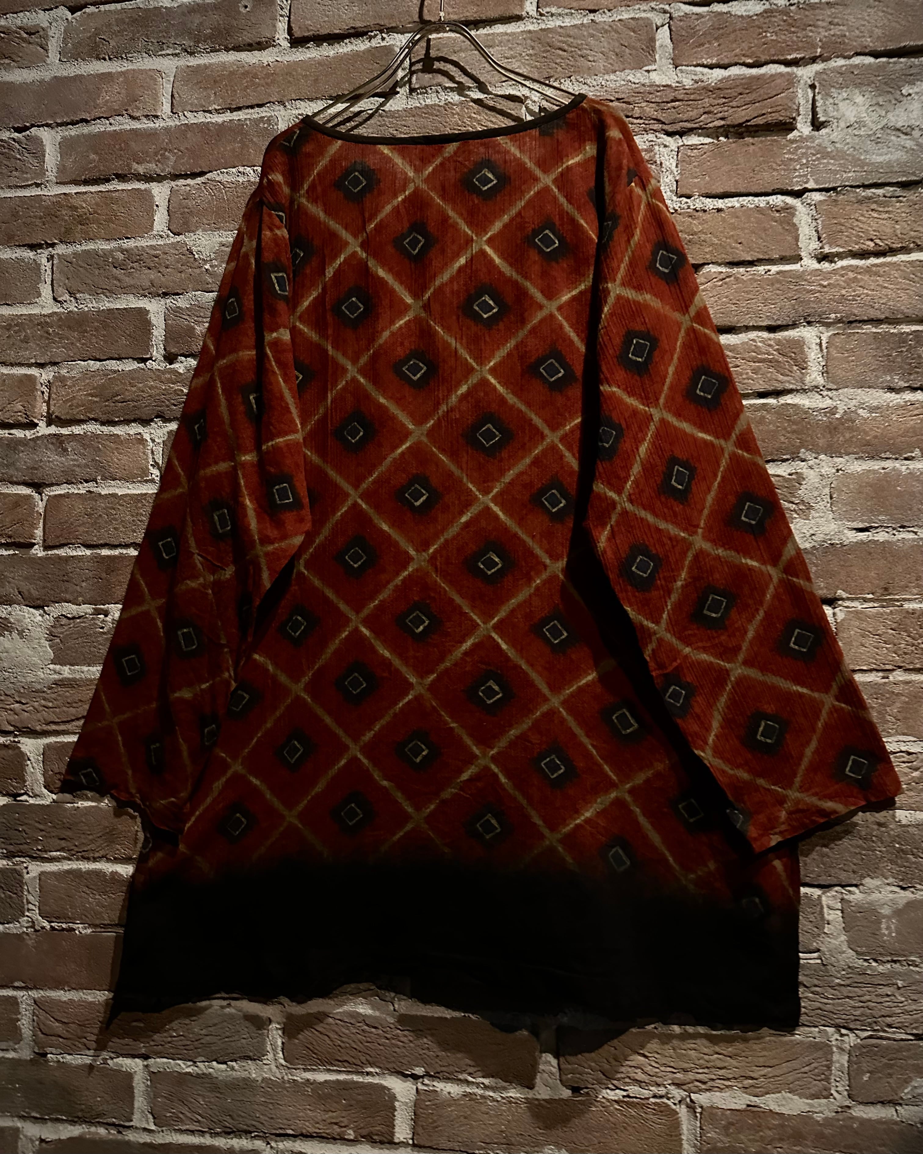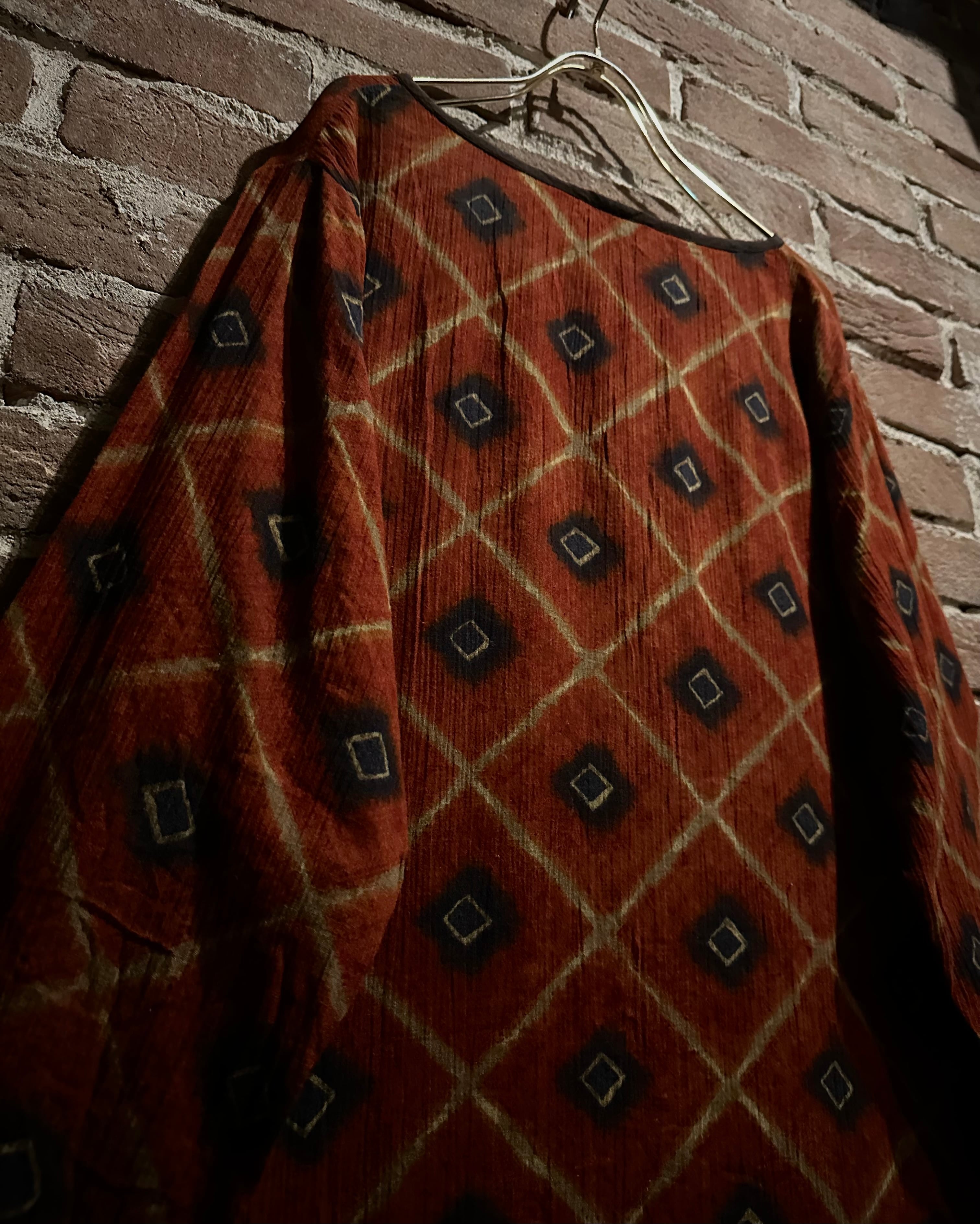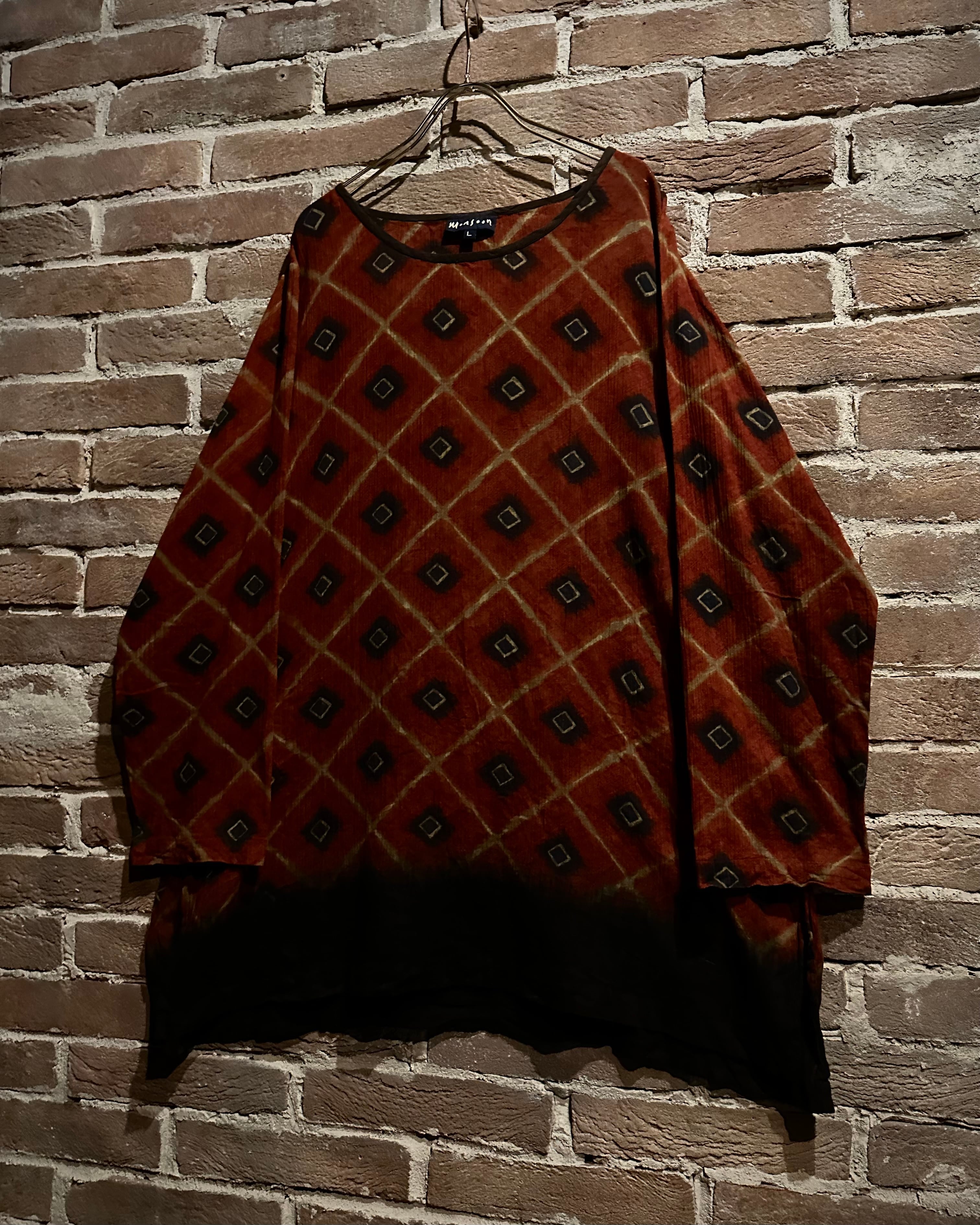 プリーツ風に加工されたボディに、チェック柄を載せたプルオーバー。