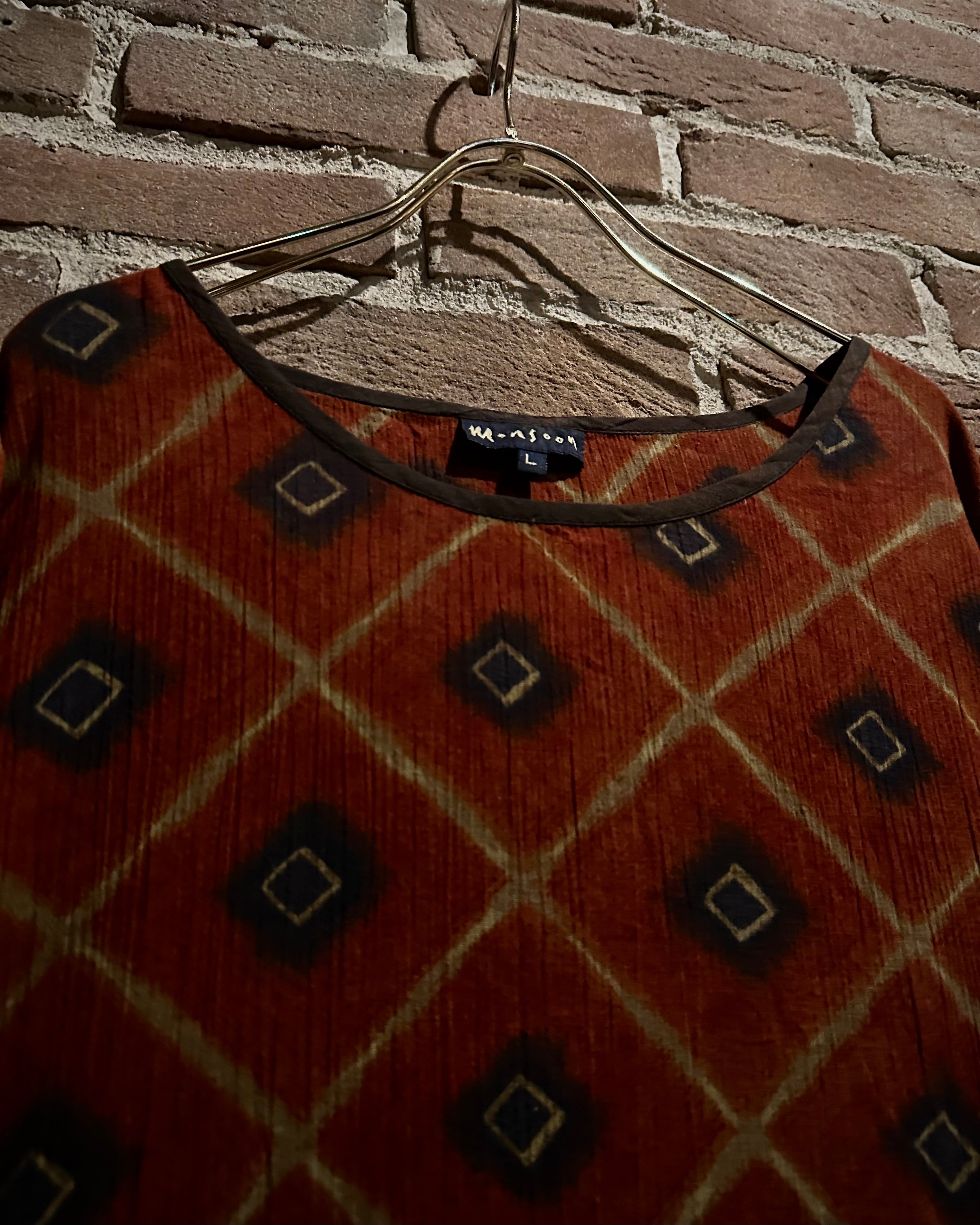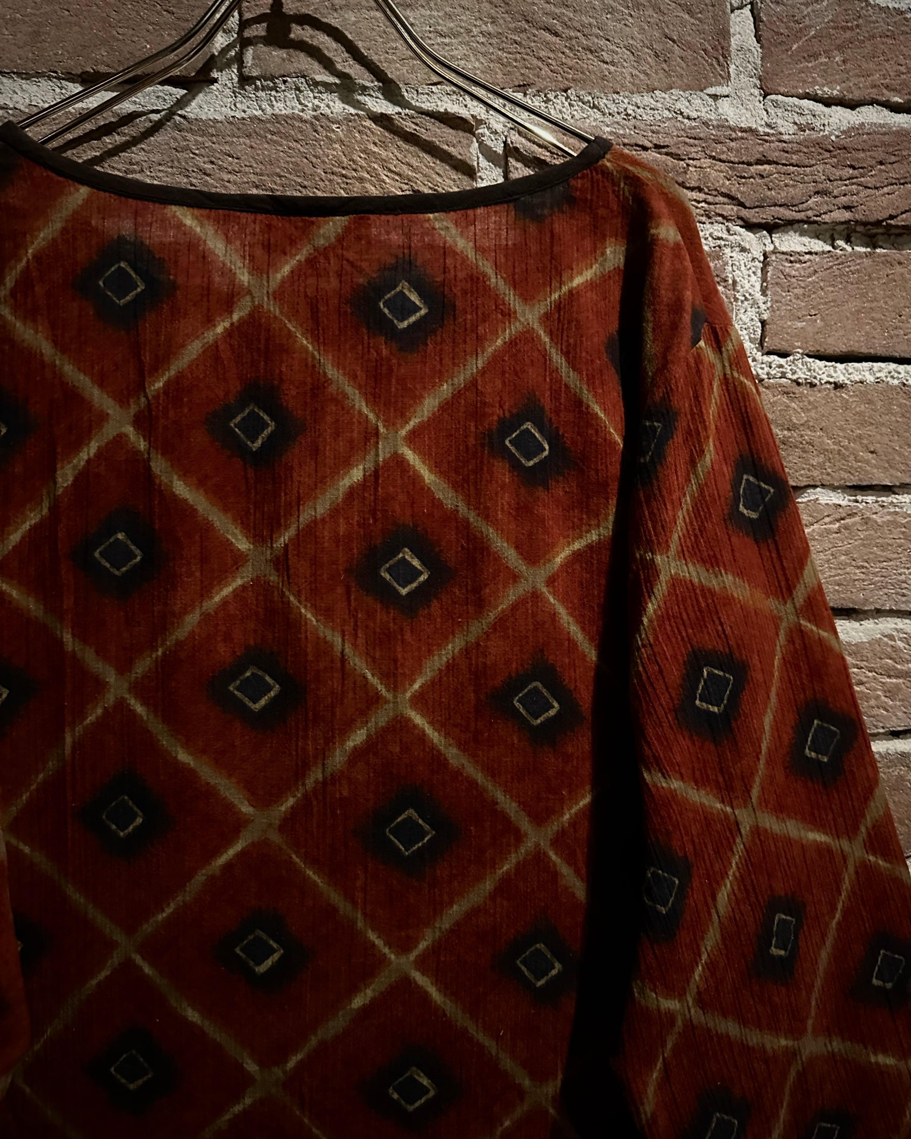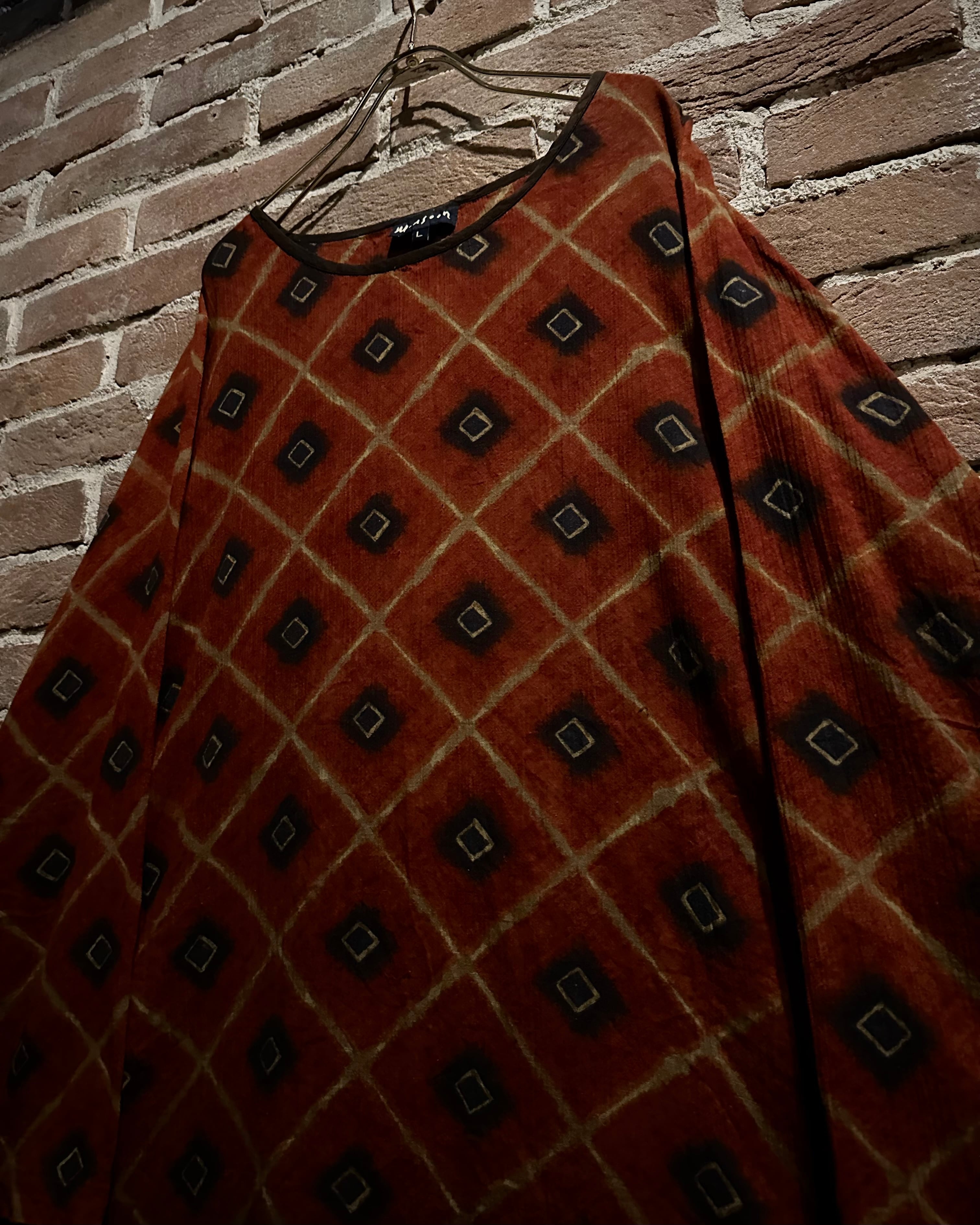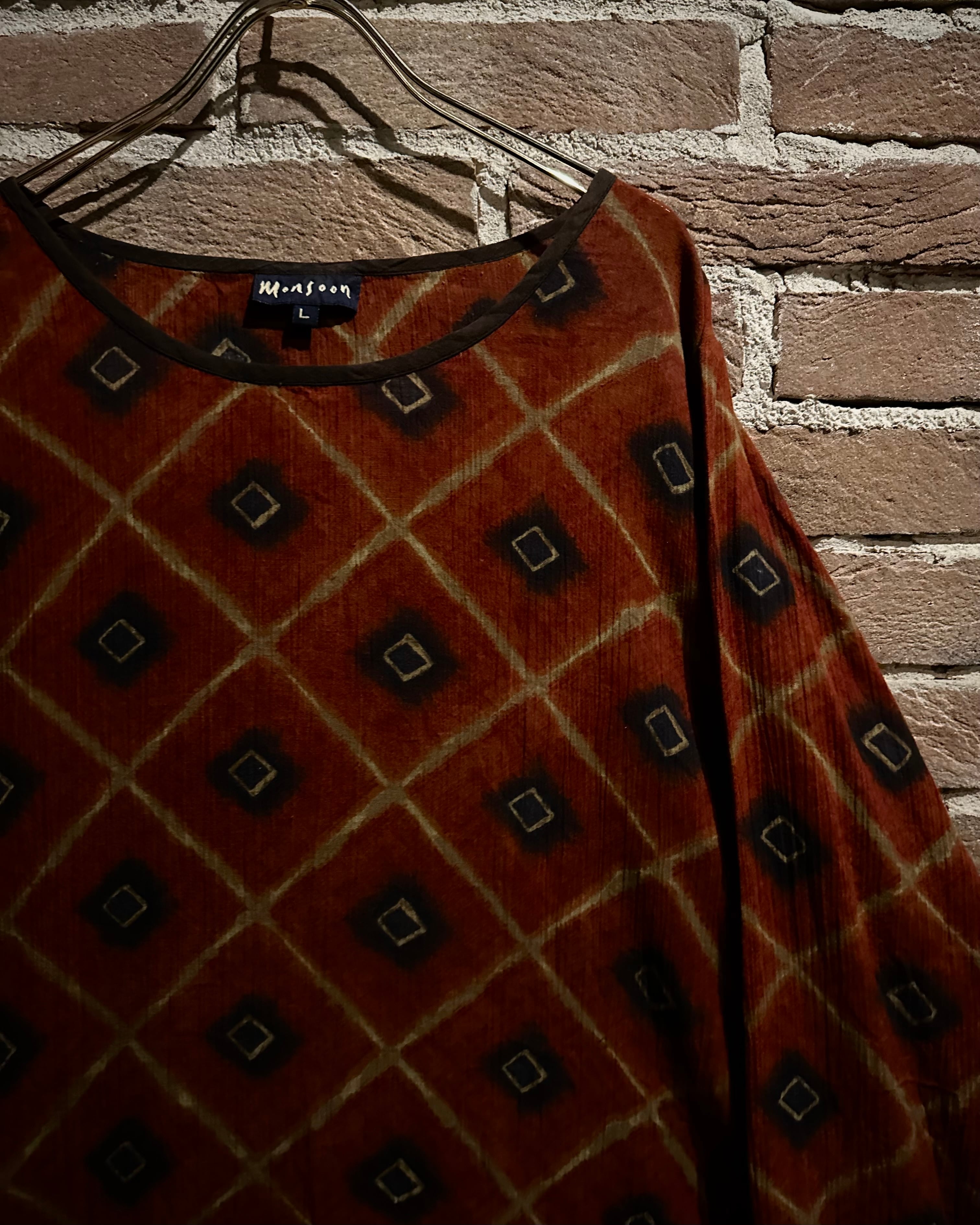 プリーツ風に加工されたボディに、チェック柄を載せたプルオーバー。
