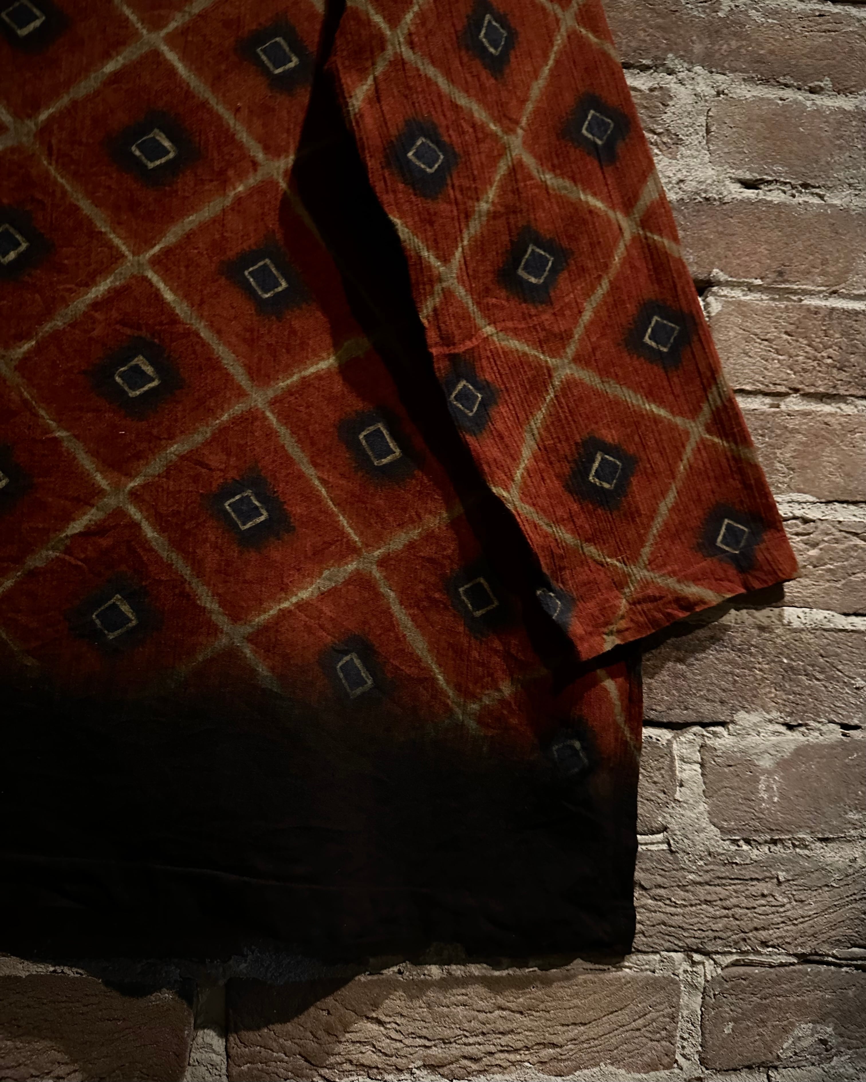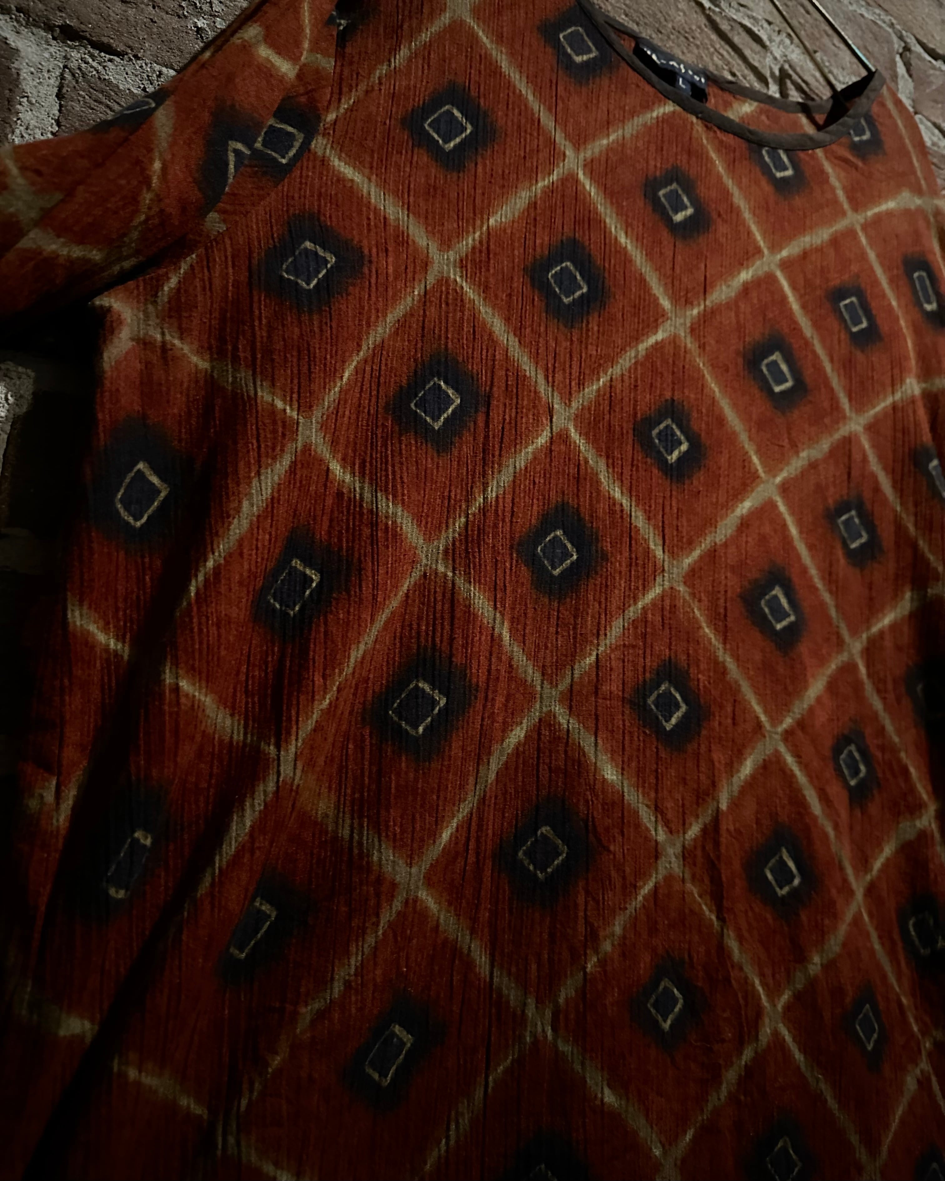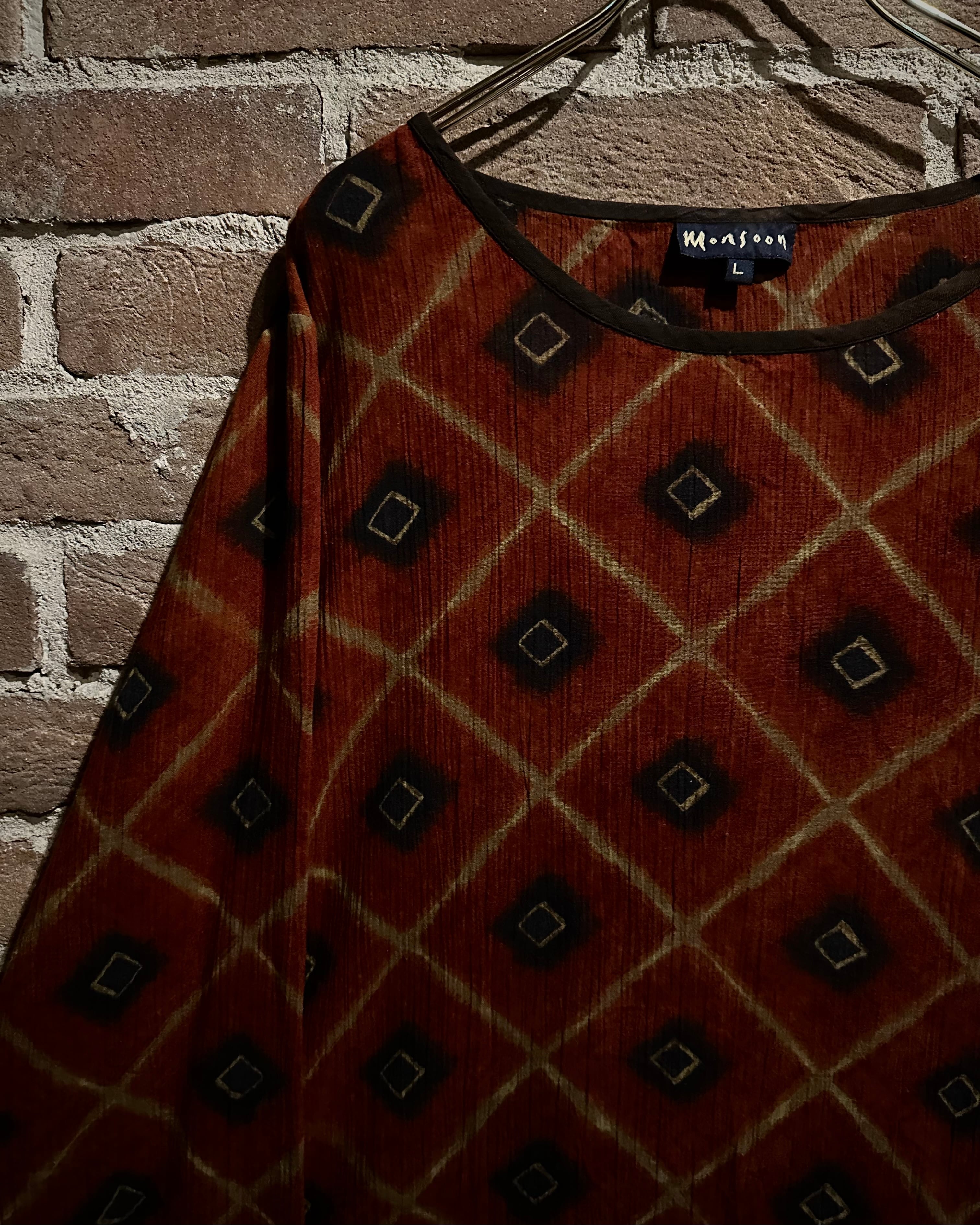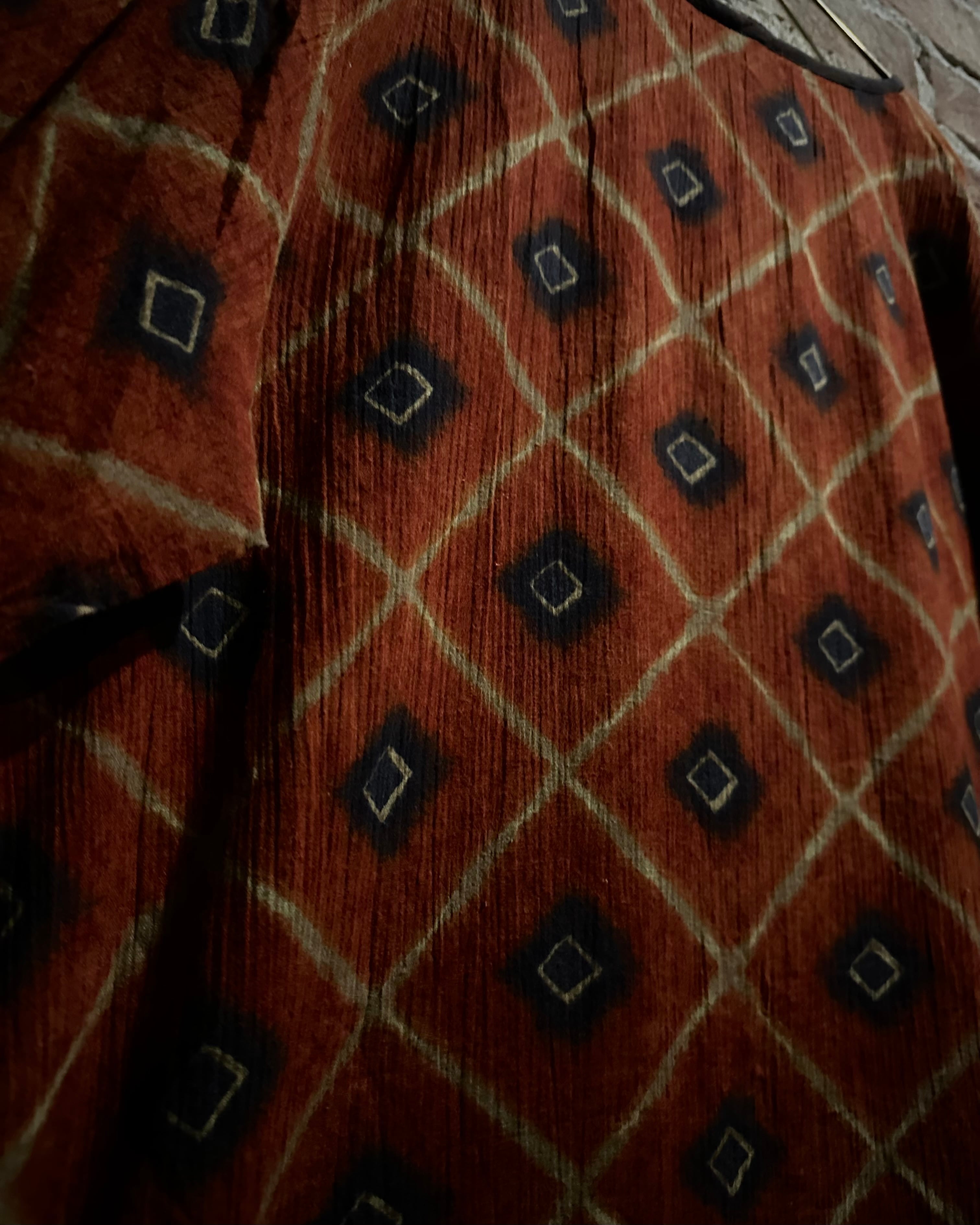 プリーツ風に加工されたボディに、チェック柄を載せたプルオーバー。