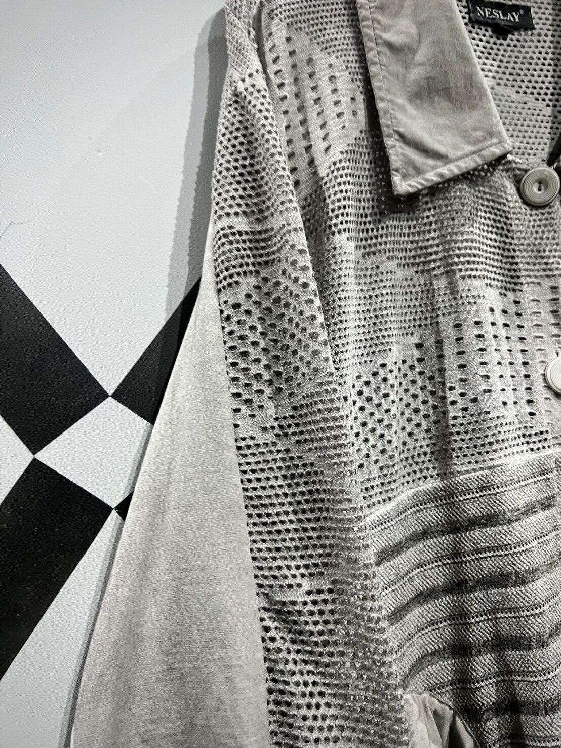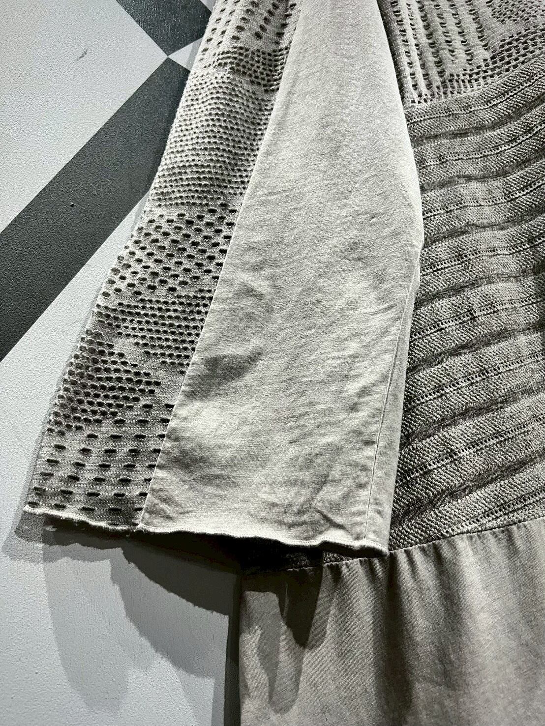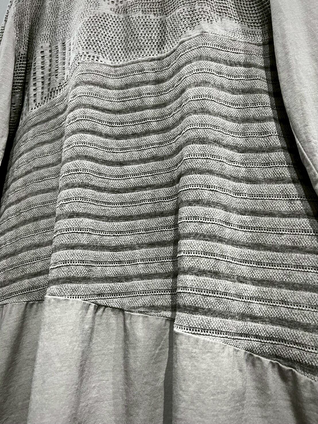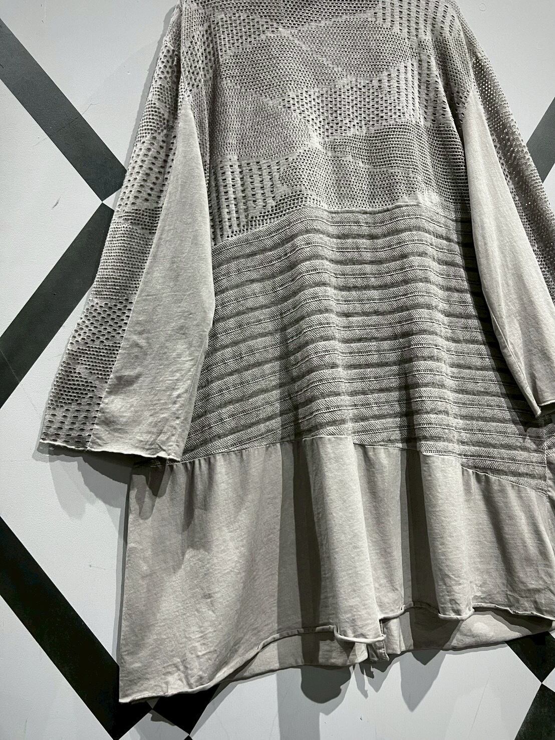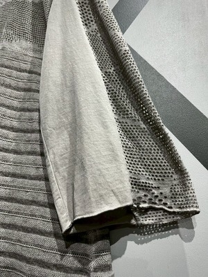 柔らかく肌触りの良いコットンを用いて、ボーダーやメッシュを切り替えたハーフレングスのジャケット。