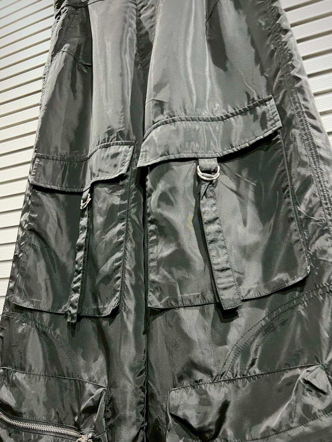 ウエストから裾にかけて美しい広がりを見せるレイヴシルエットが◎フロントにポケットのギミックを施したことで生み出される着用時の立体的なフォルムも非常にイケてます。