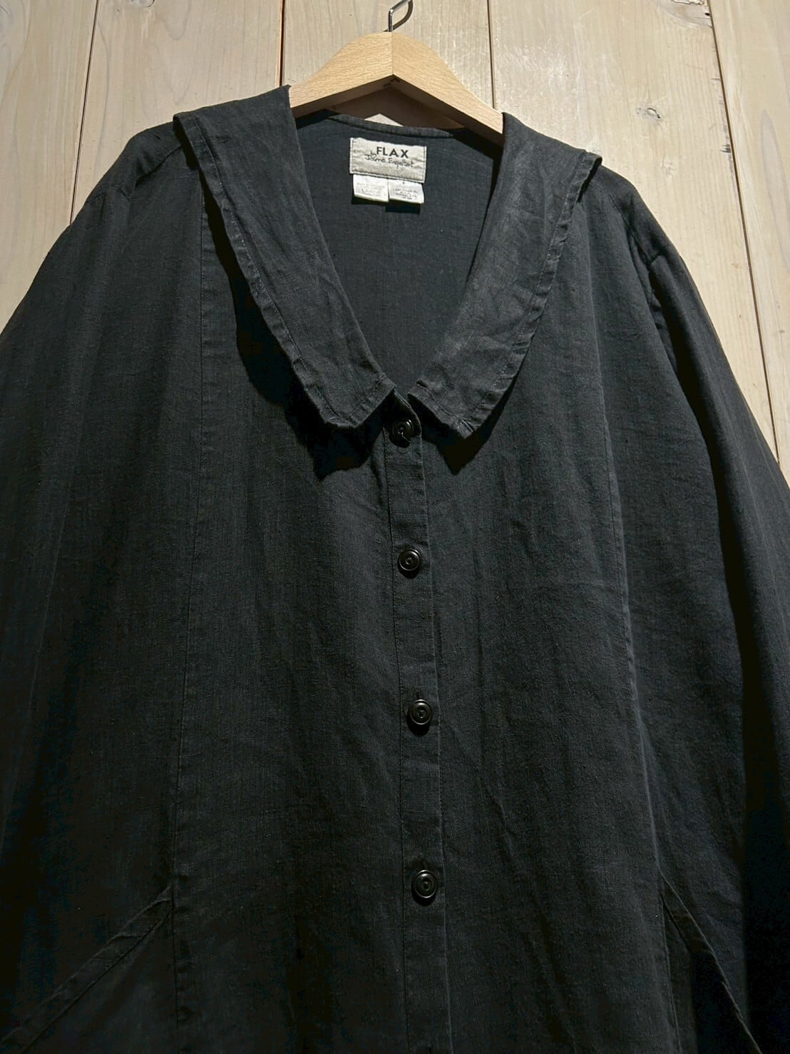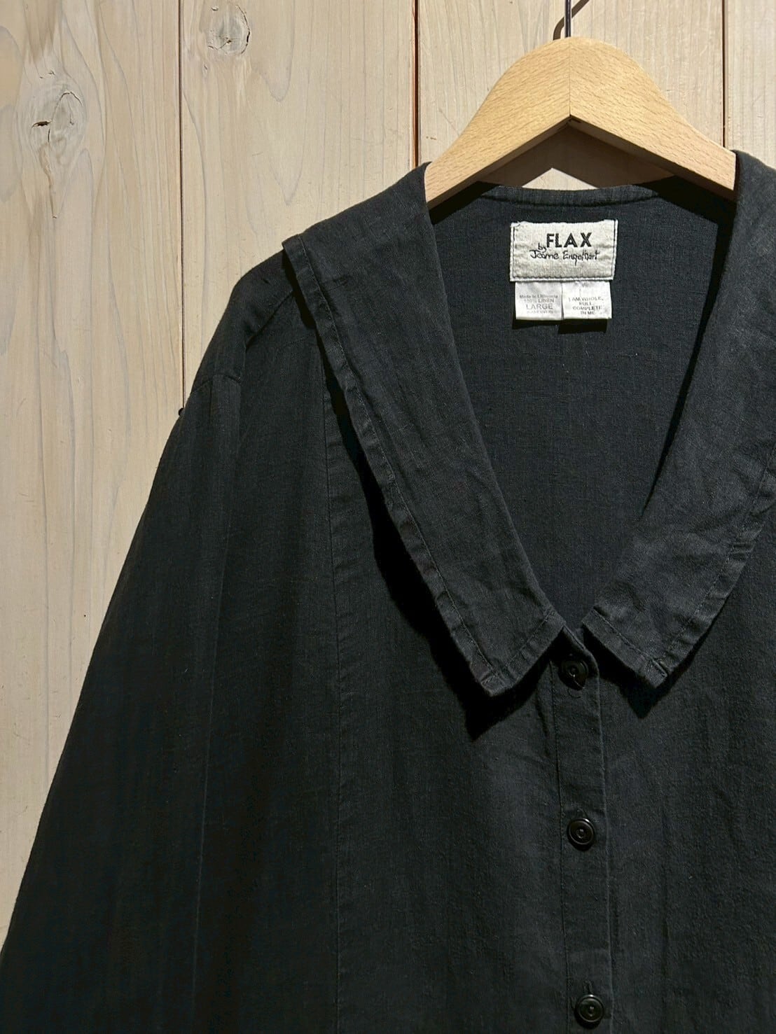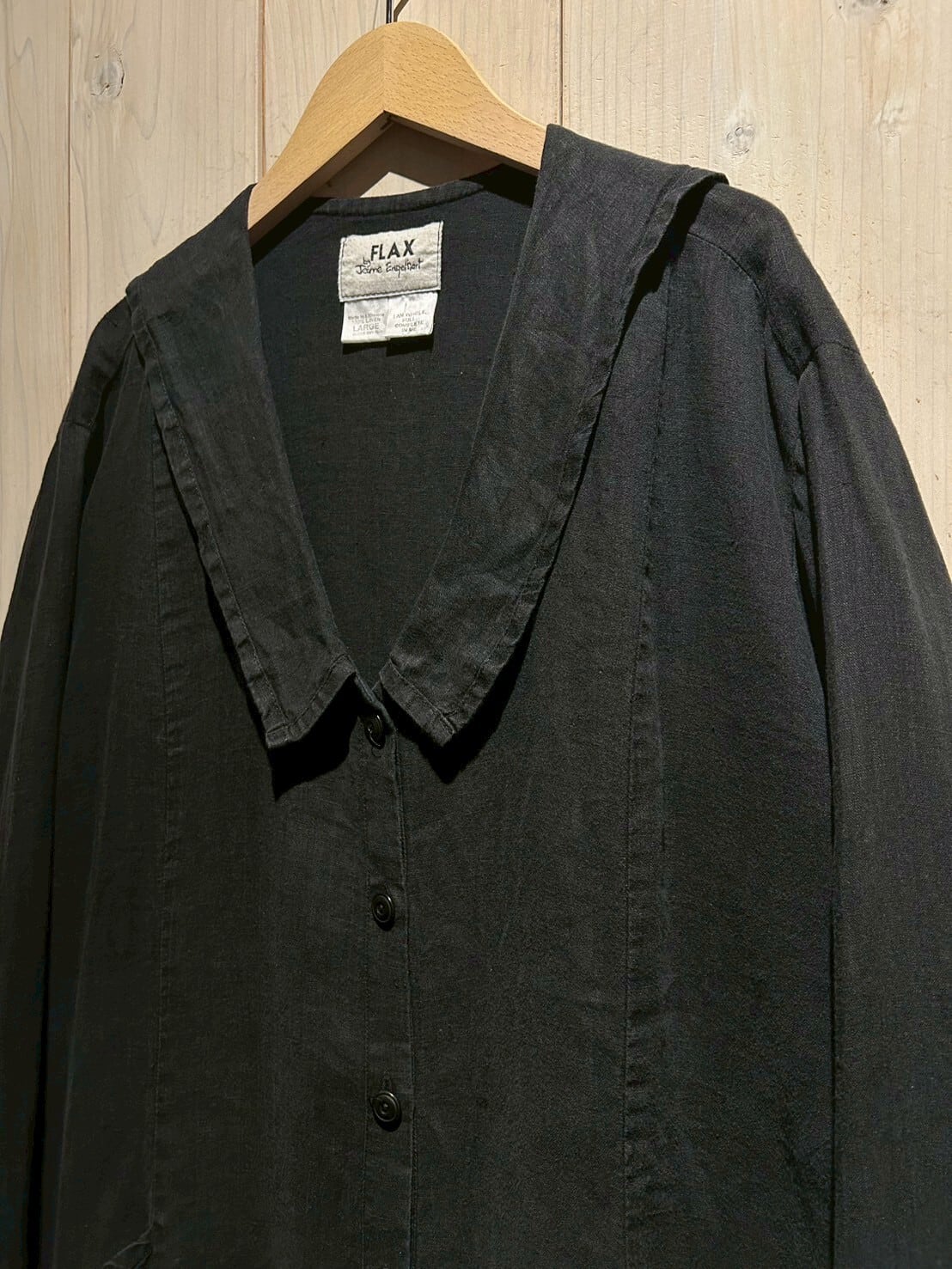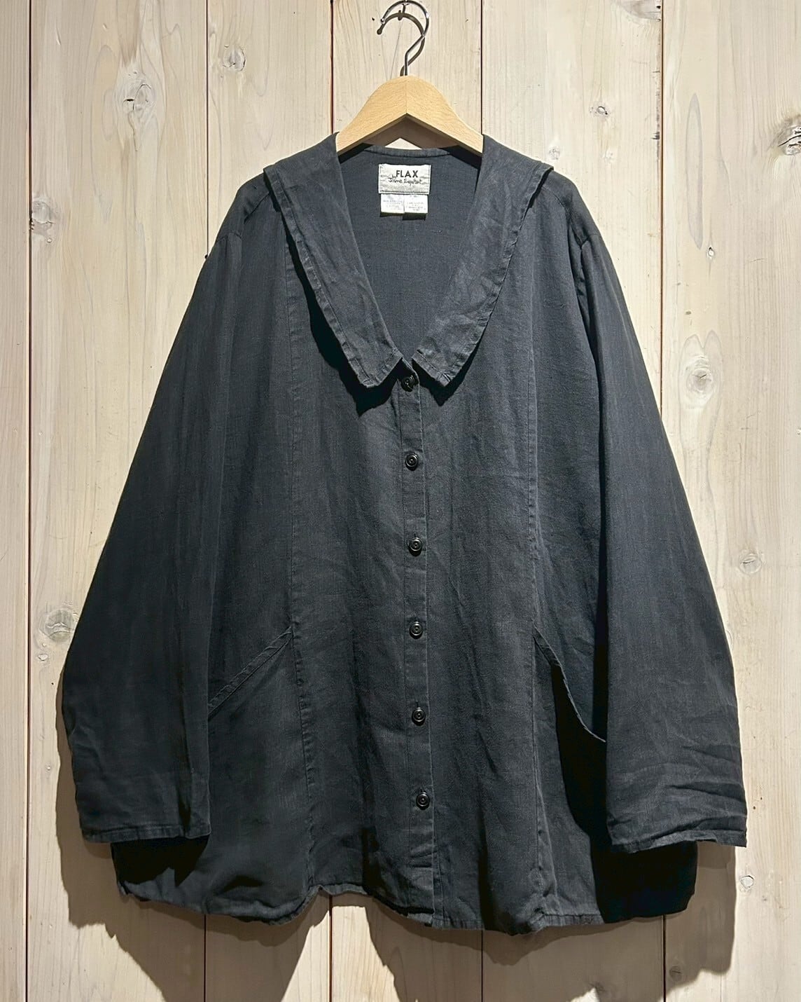 余談ですが、FLAXのアイテムのほとんどのタグに英語でメッセージが書かれているんです。一つ一つ違って、心にグッとくる内容でこちらの1着にも施されていますが、お手に取って頂いた時のお楽しみということでここでは伏せておきます。