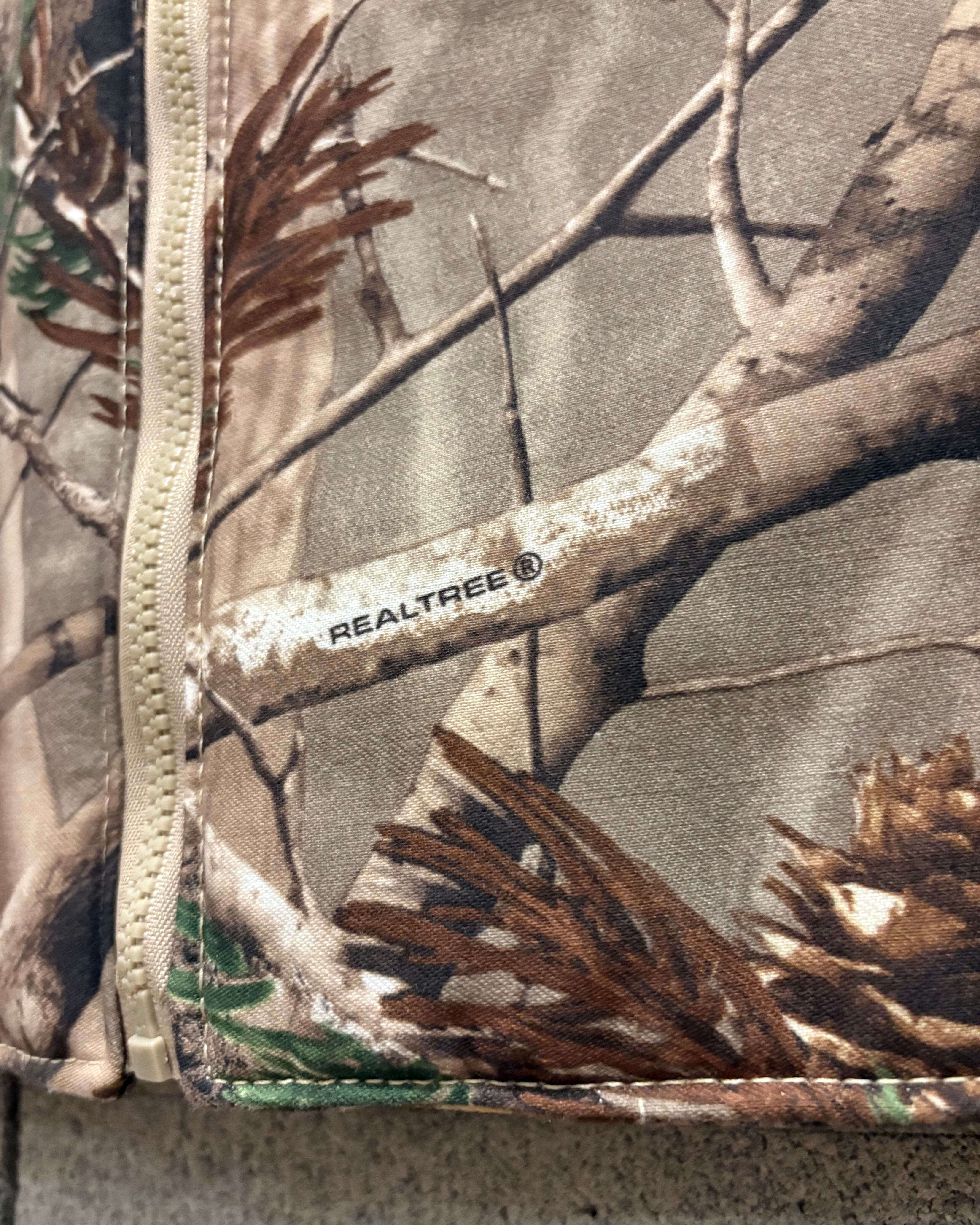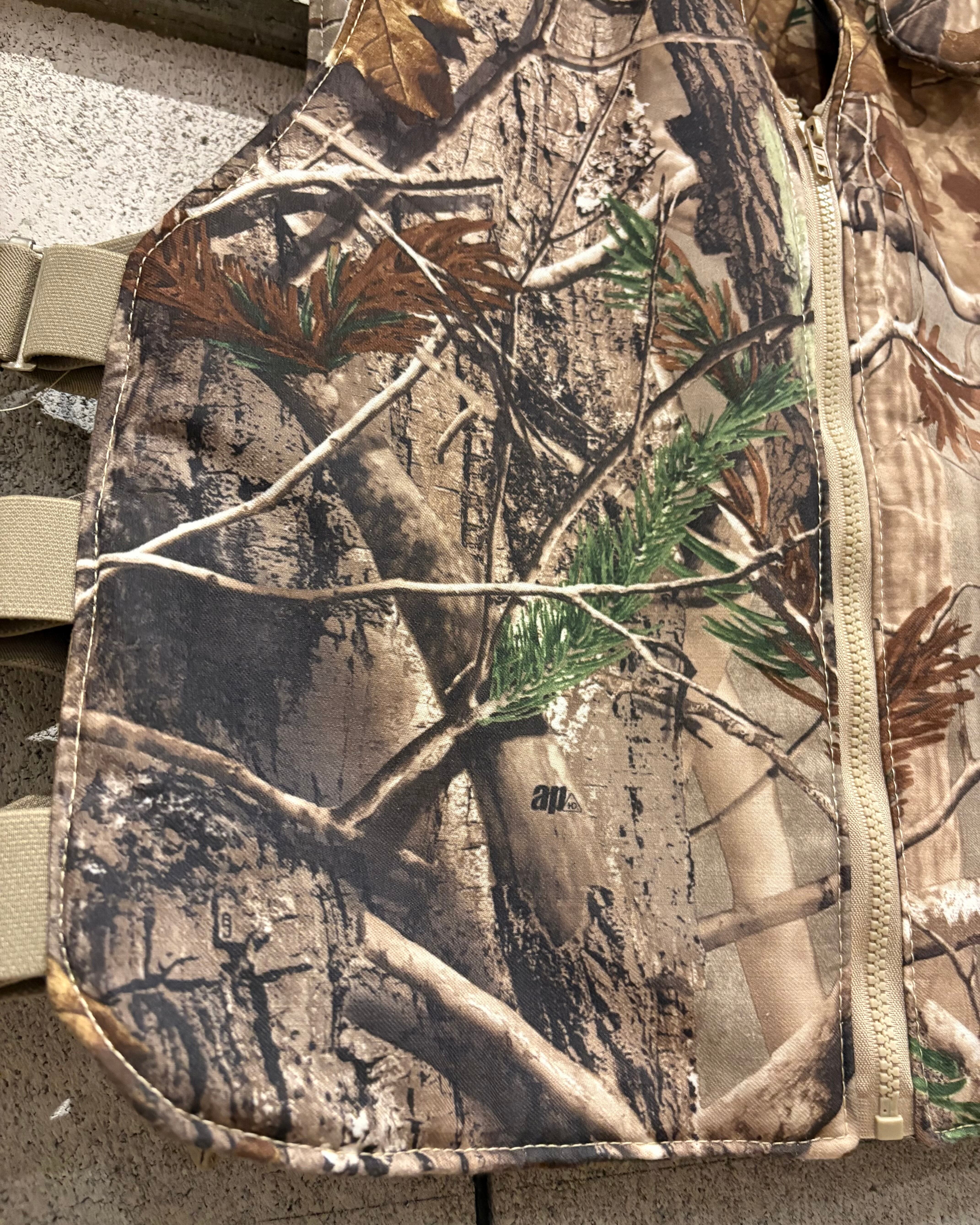 ガシッとタフなボディに、リアルツリーカモを載せたジップアップベスト。