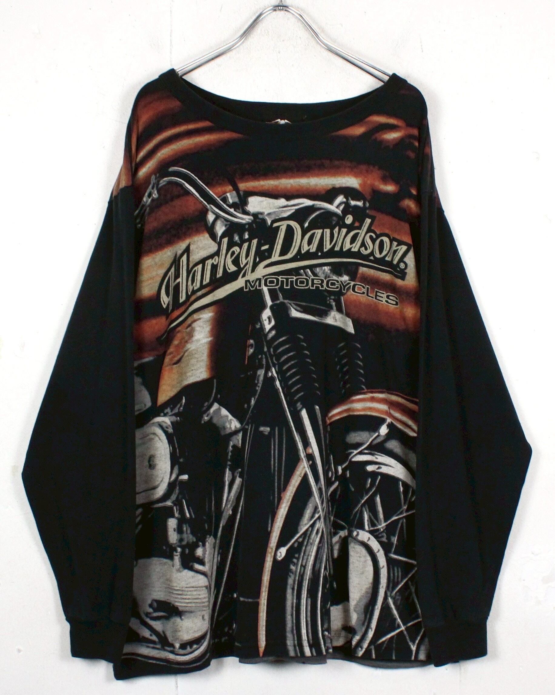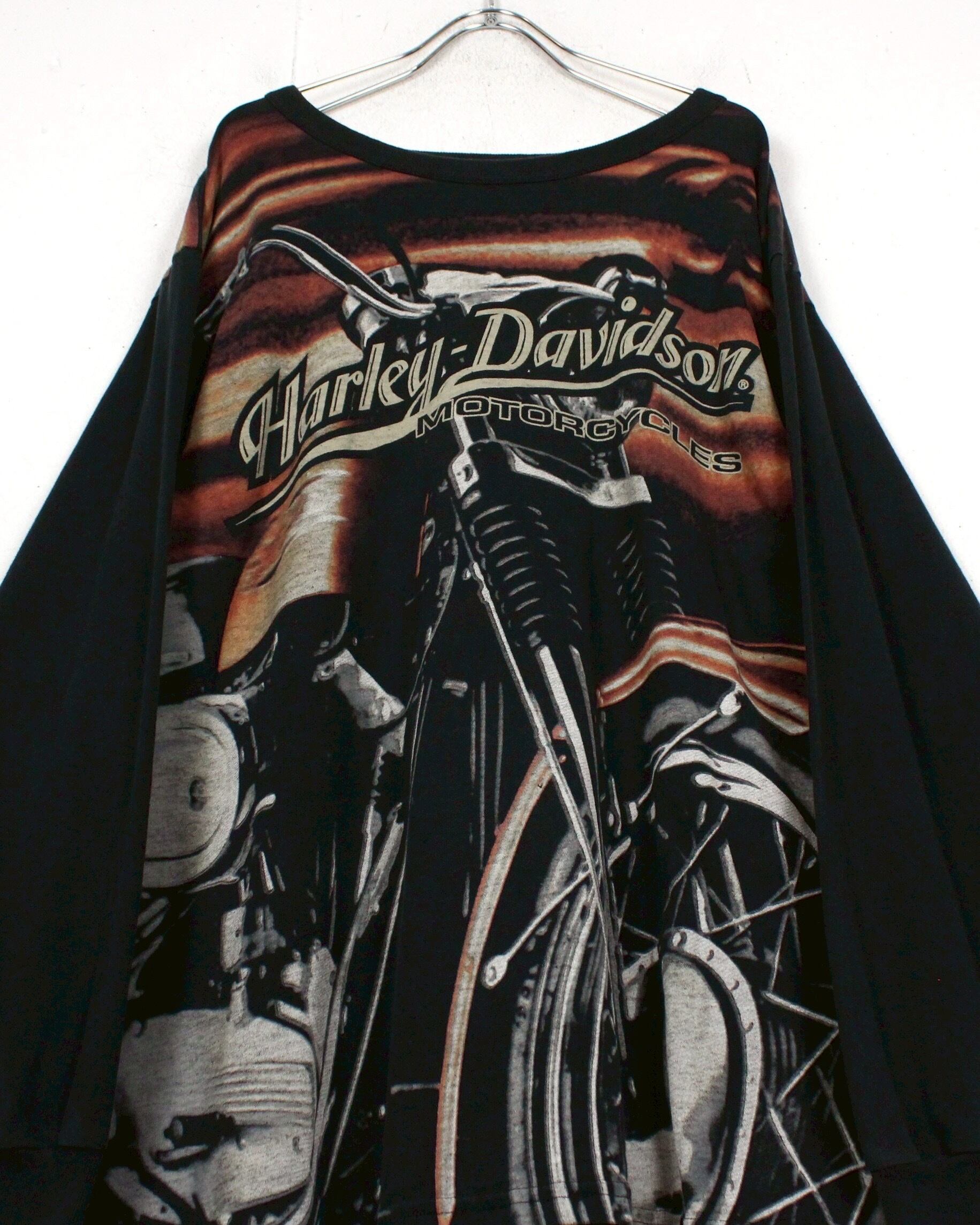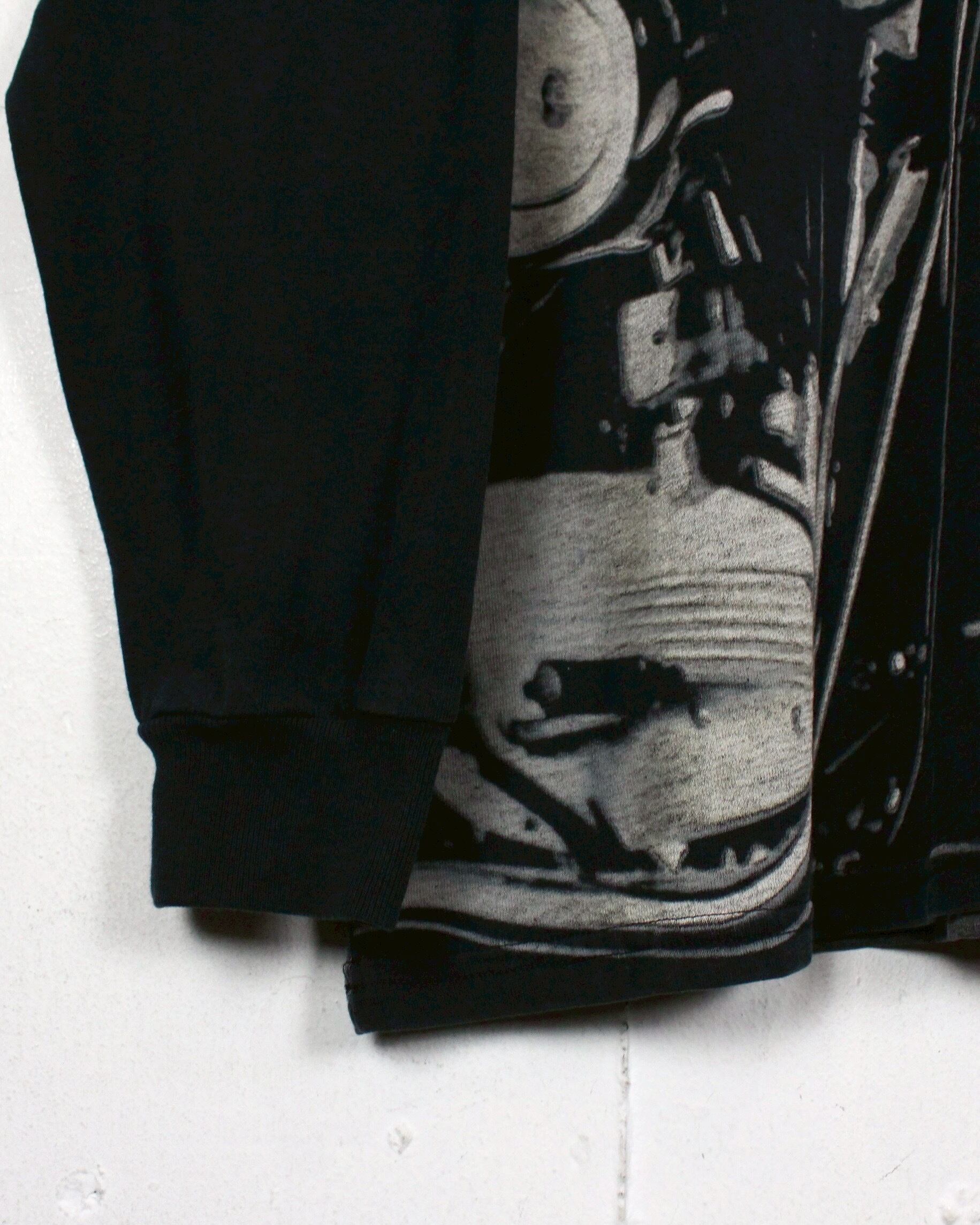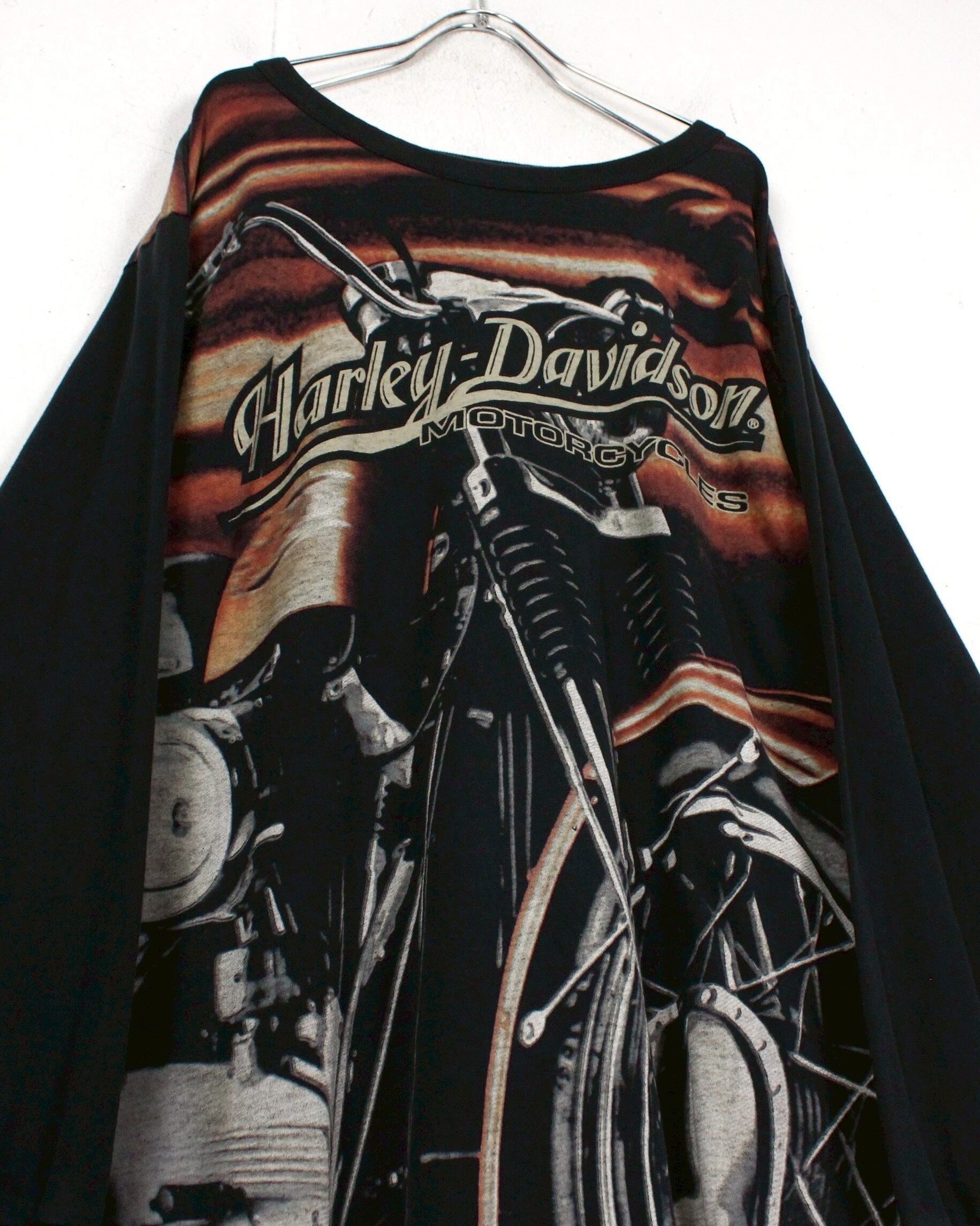 ブラックのボディをベースに、フロントにハーレーのバイクのデザインを載せたロンT。
