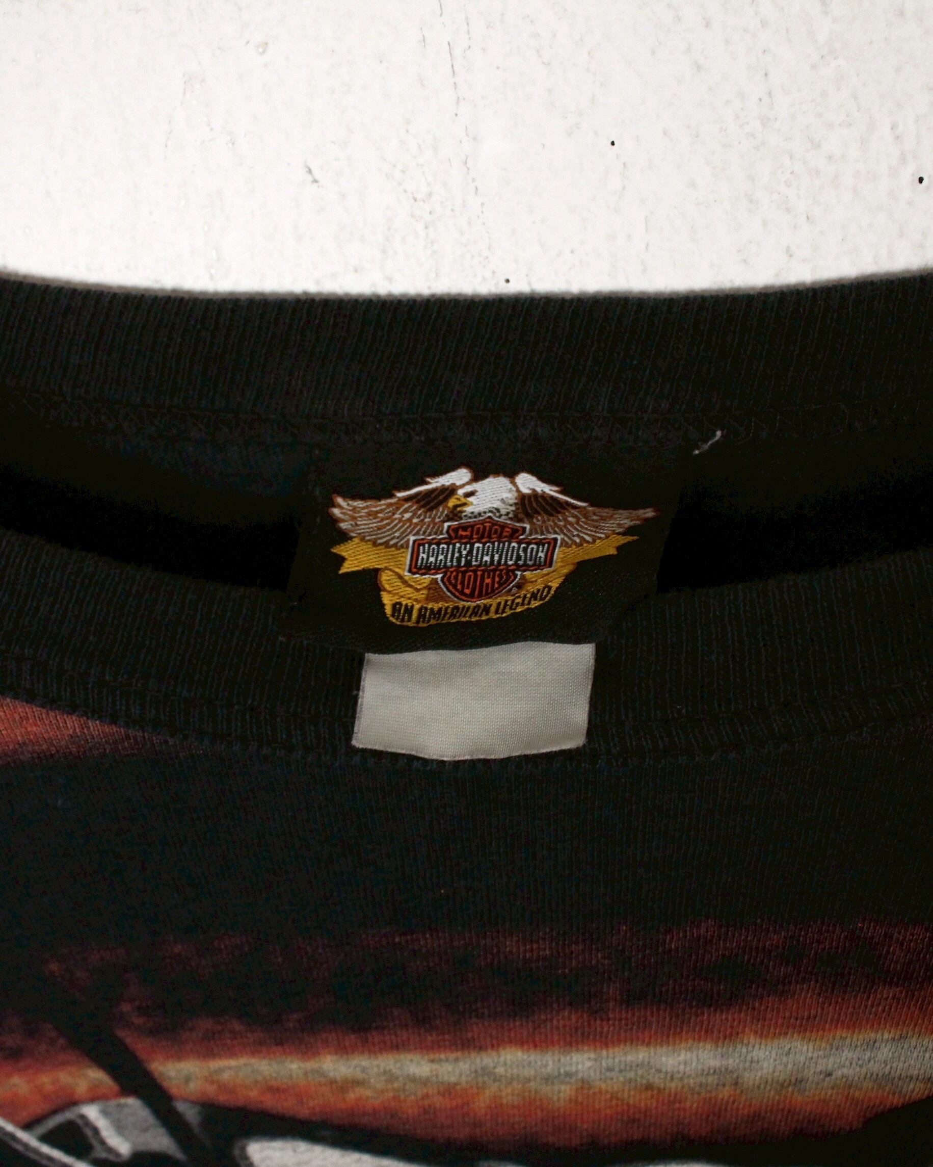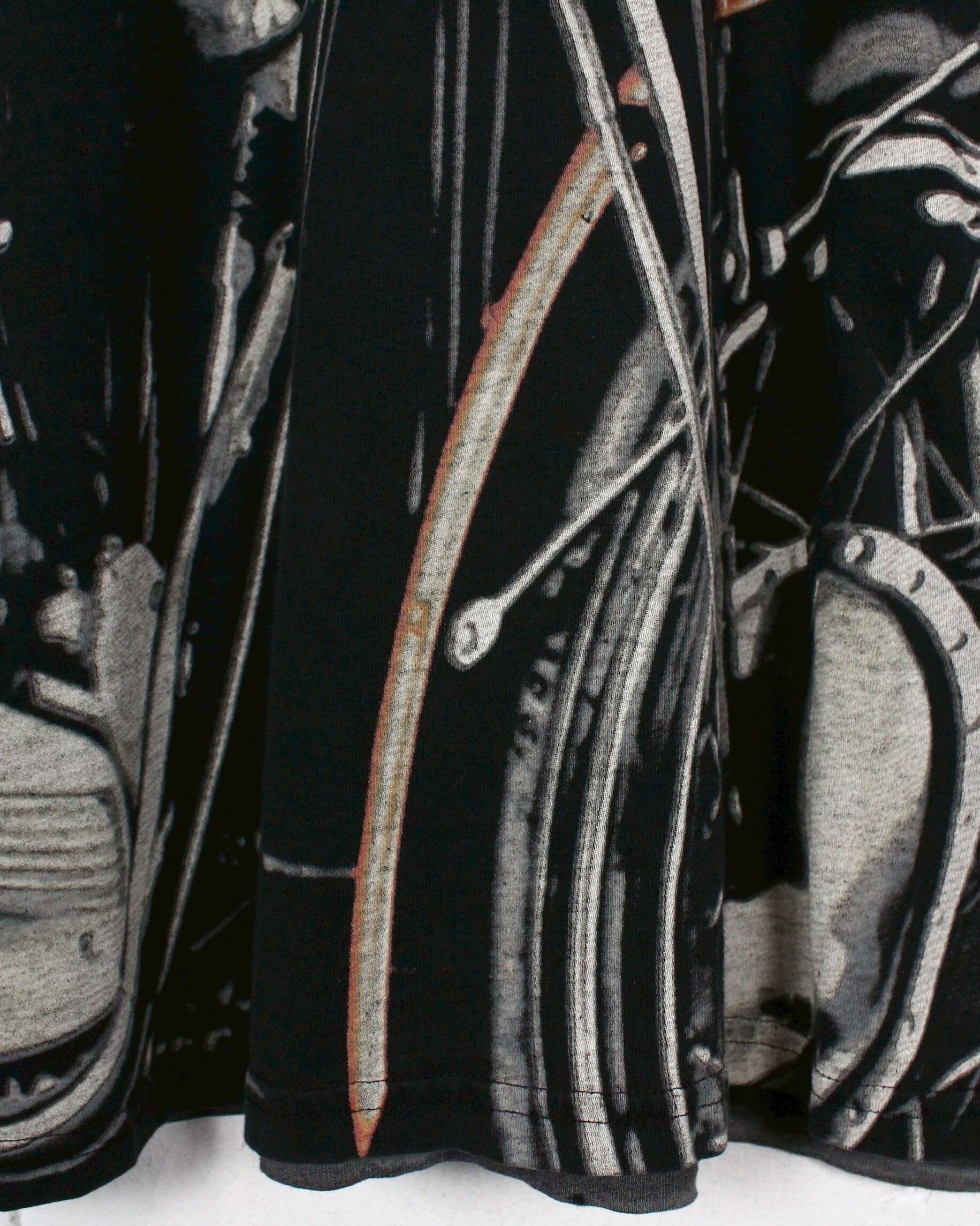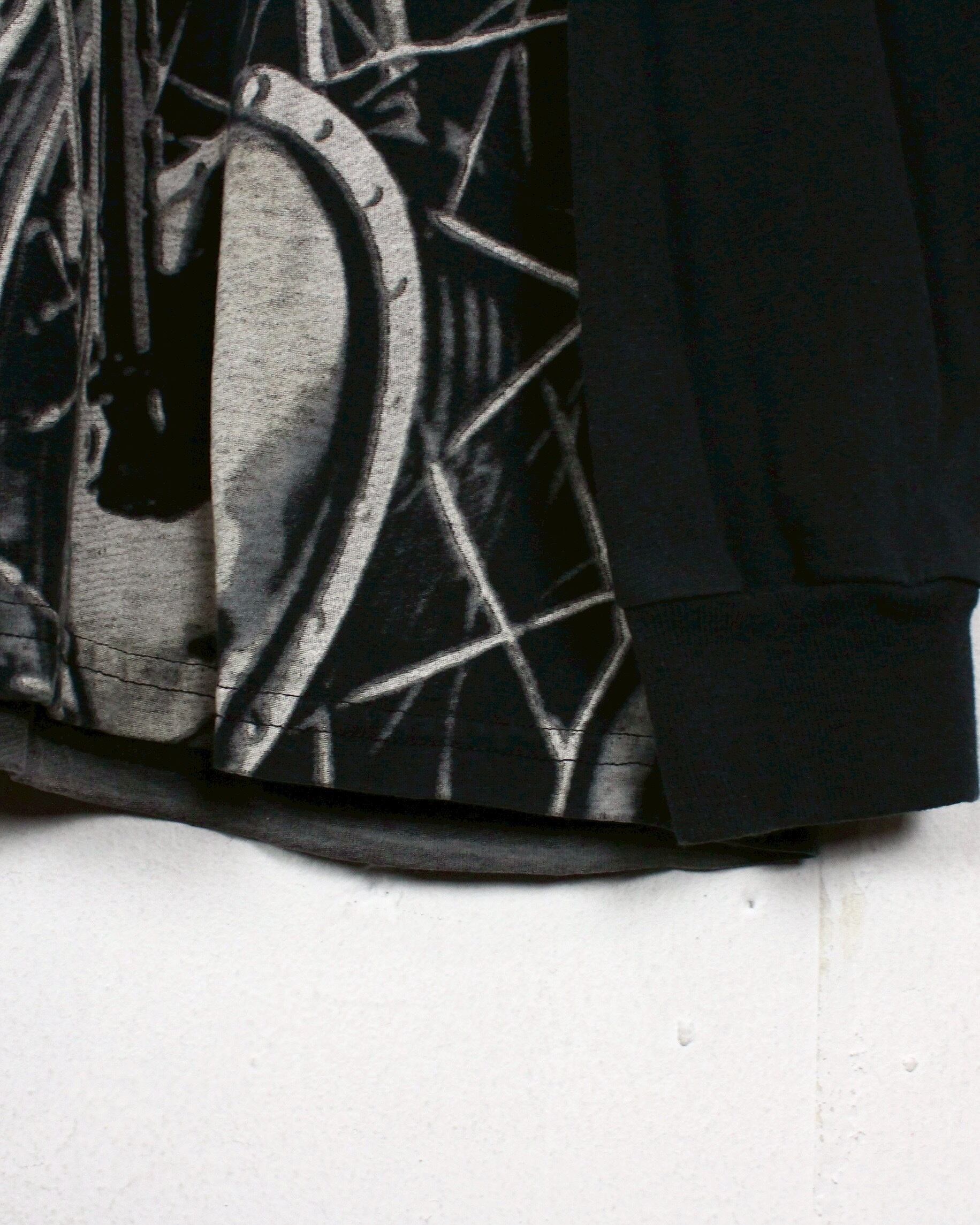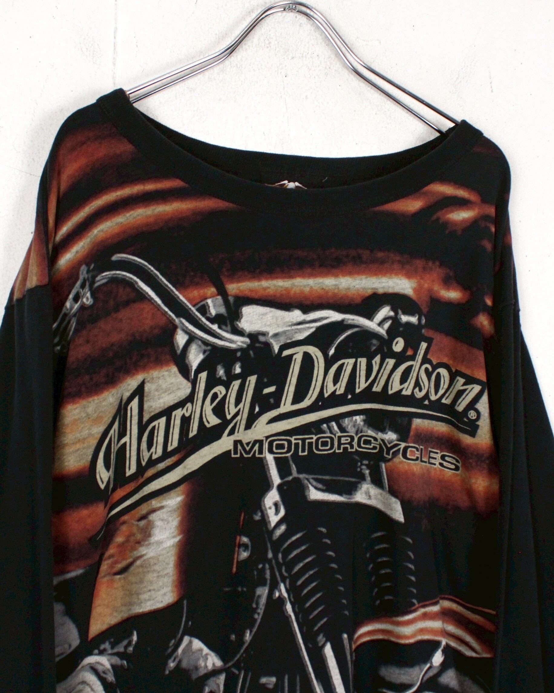 ブラックのボディをベースに、フロントにハーレーのバイクのデザインを載せたロンT。