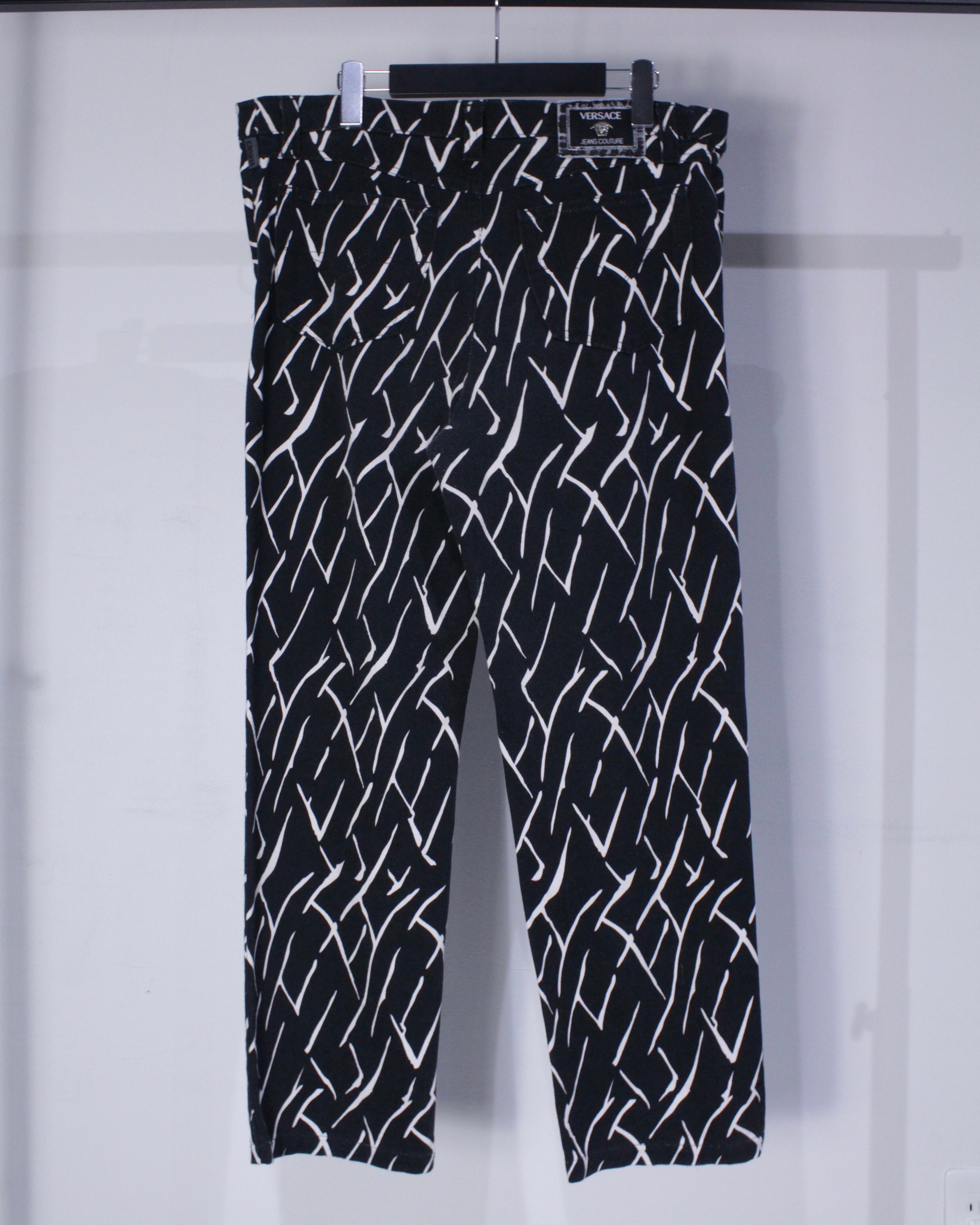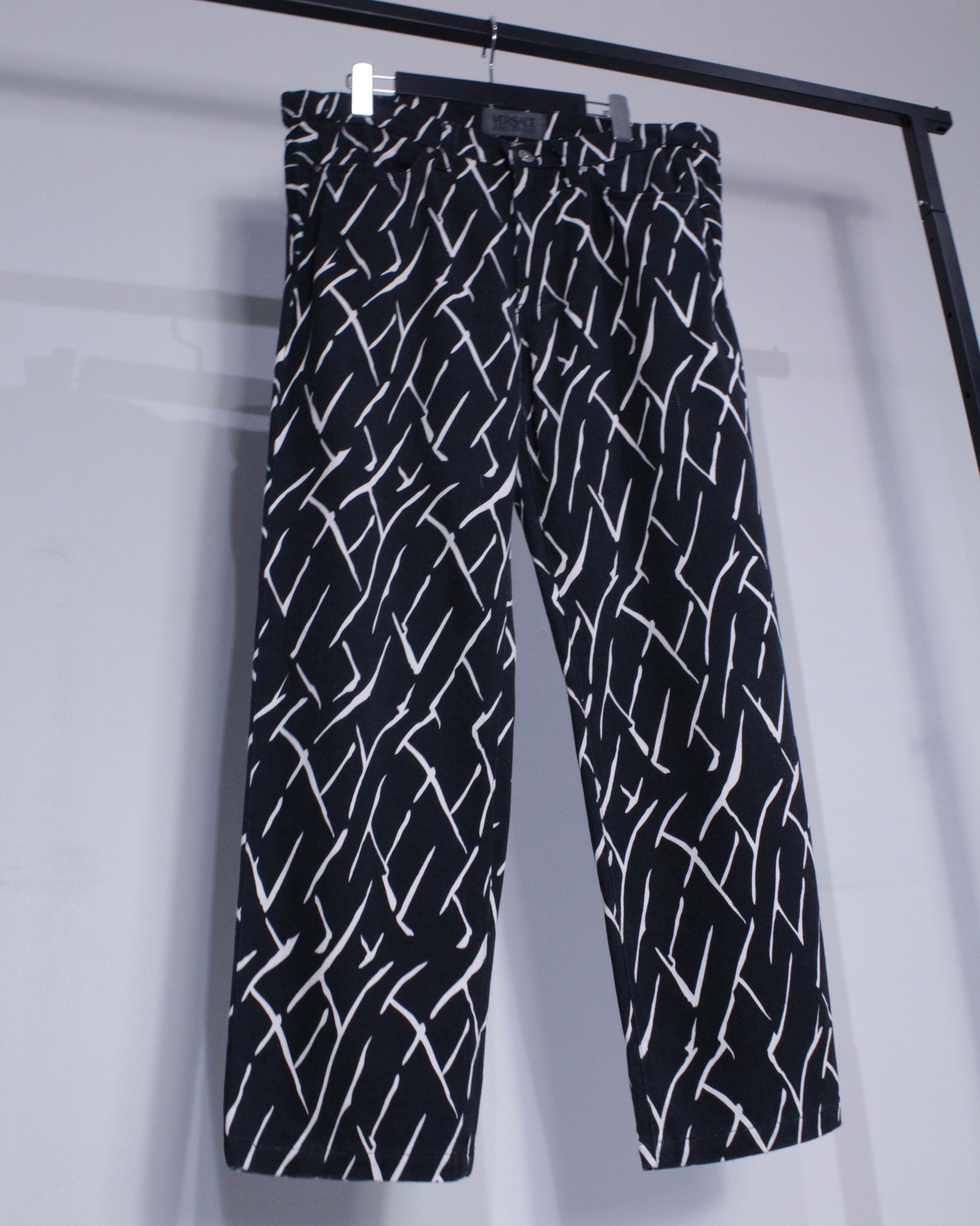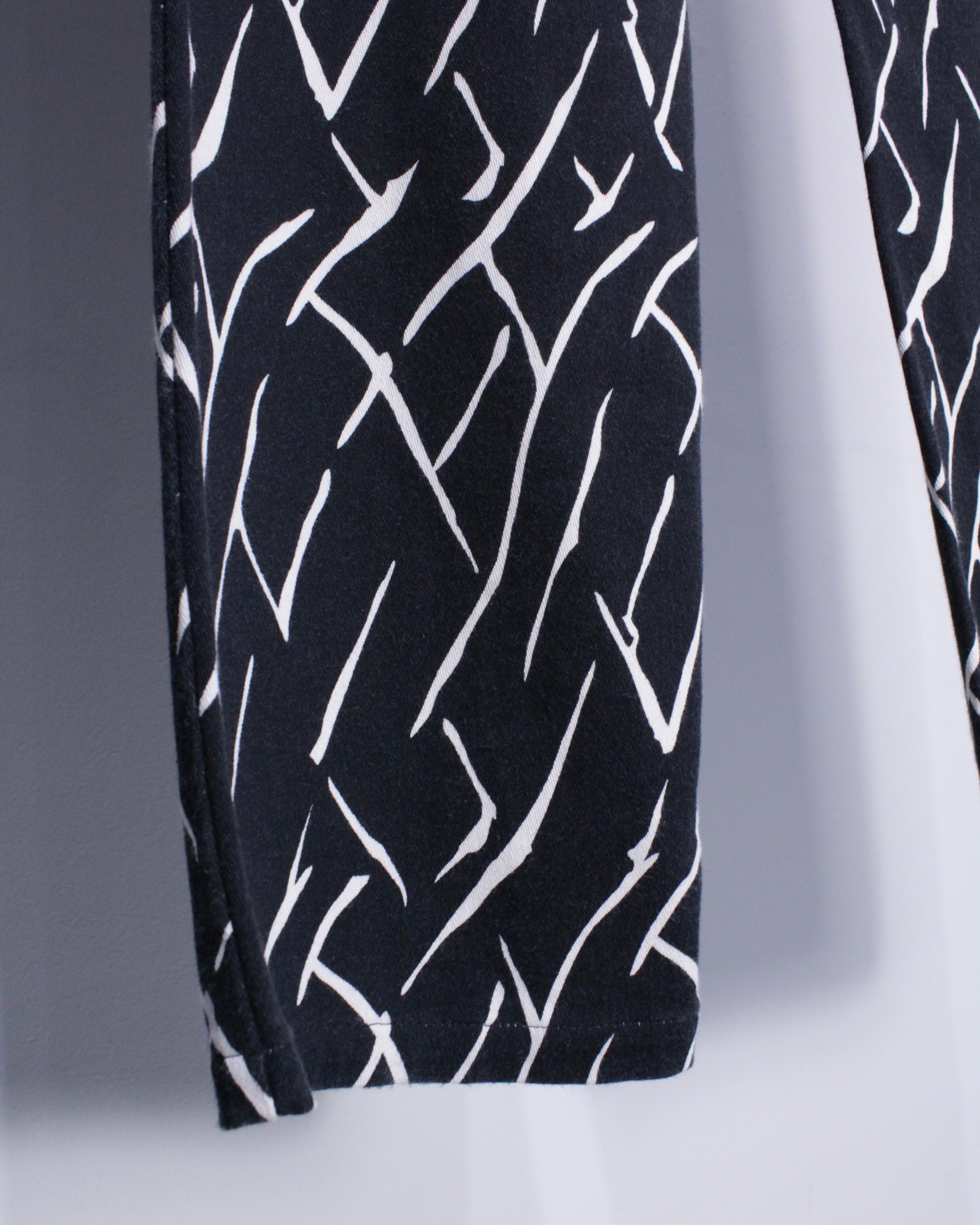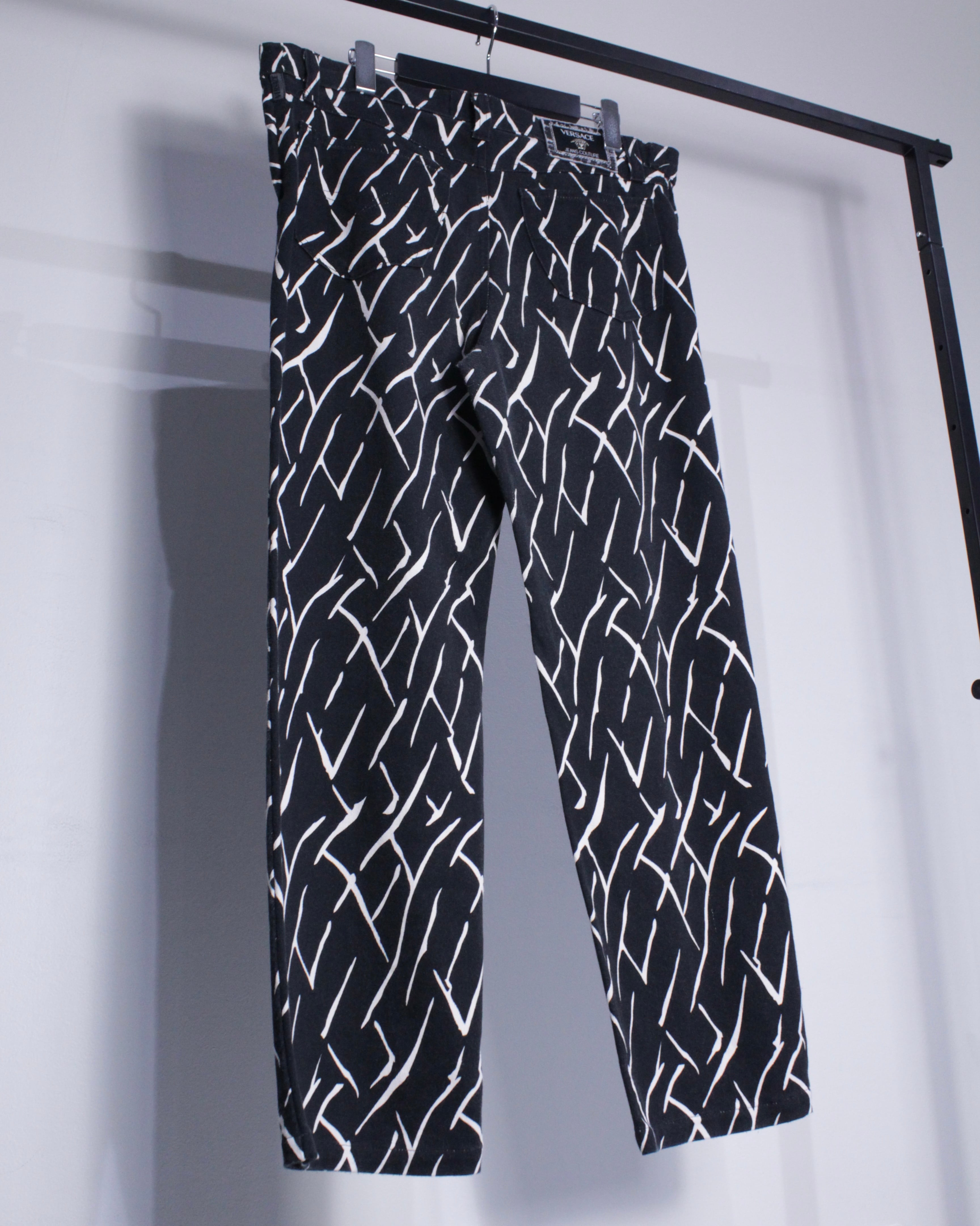 ブラックのボディに、白でボディ全体に柄模様を施したパンツ。