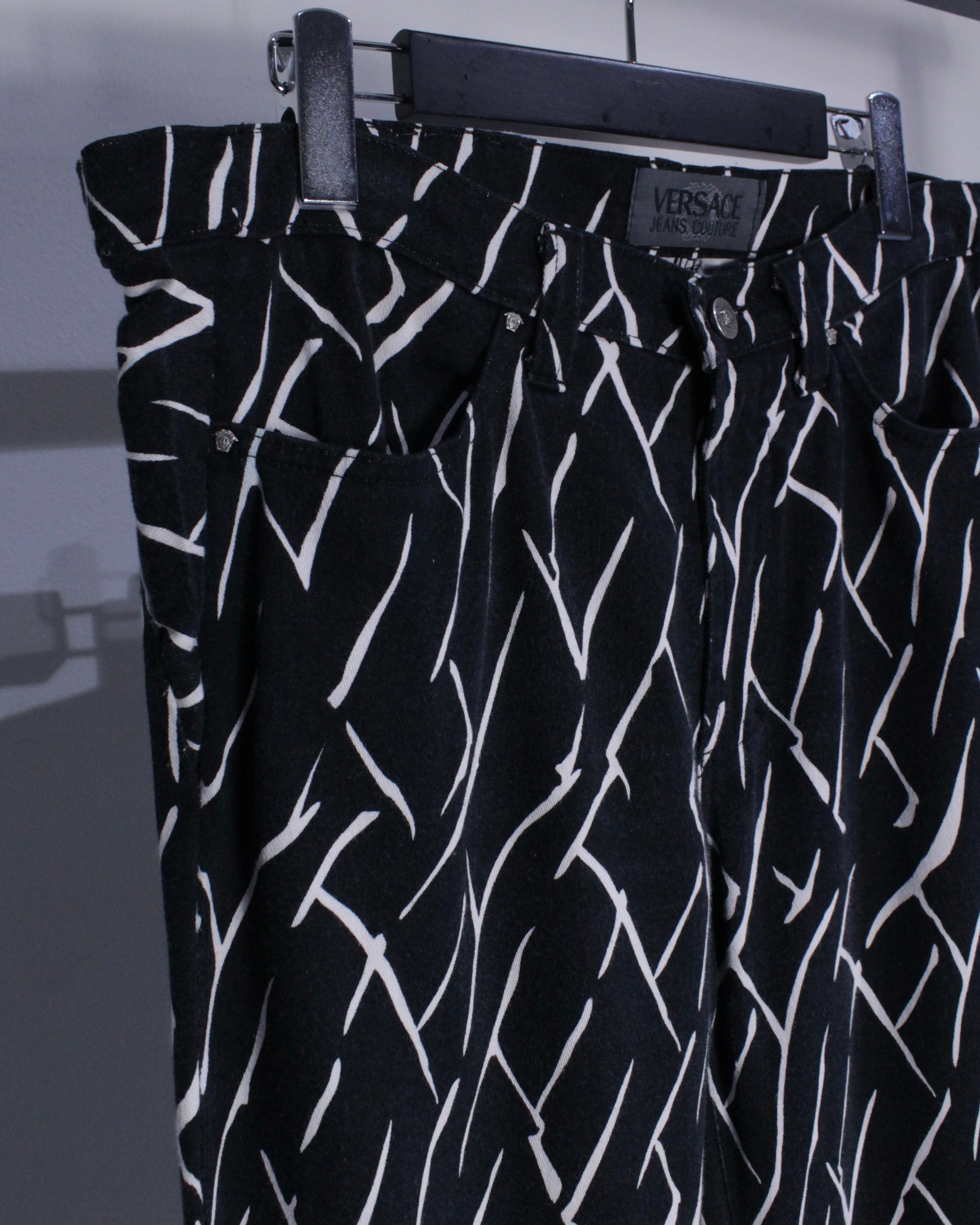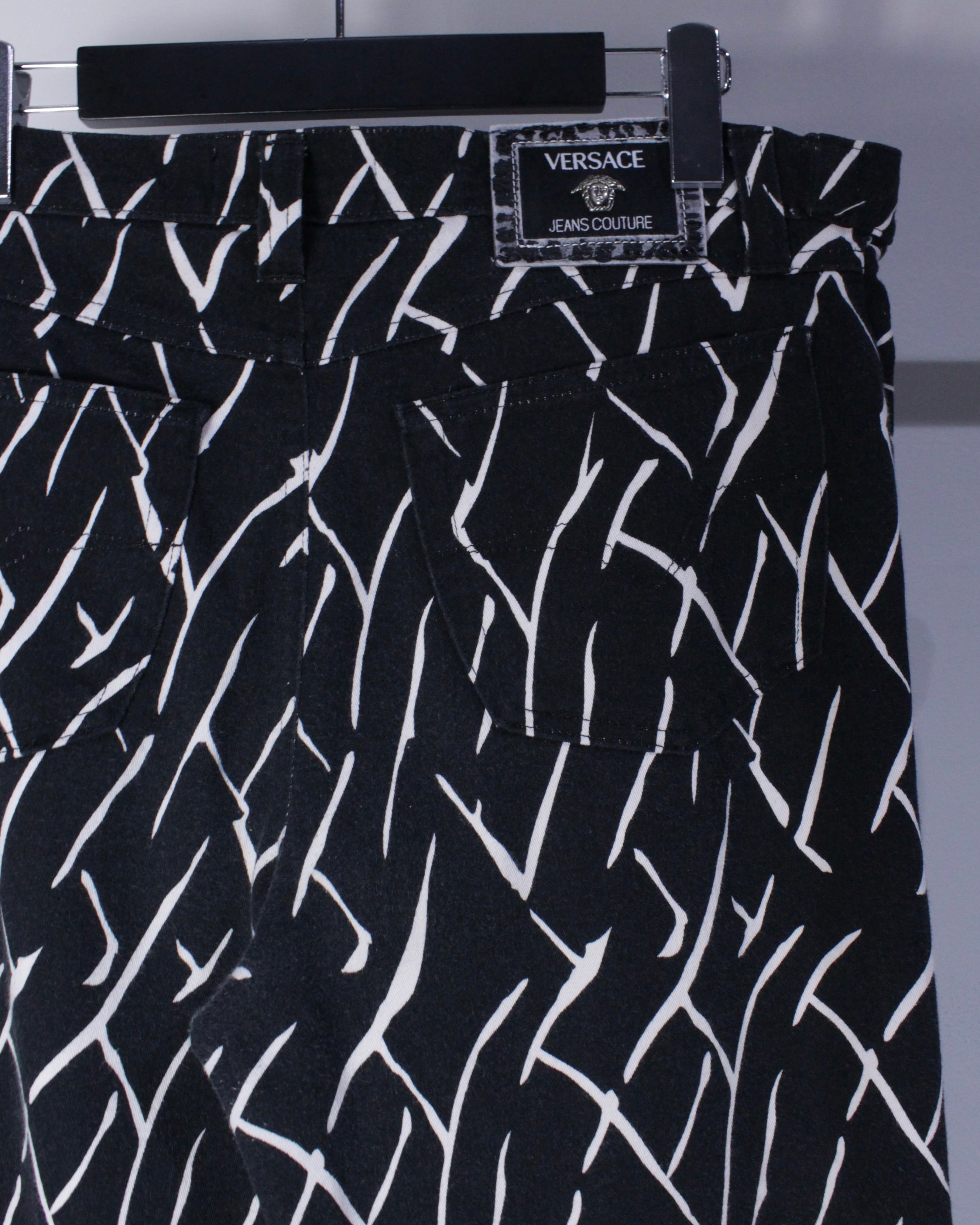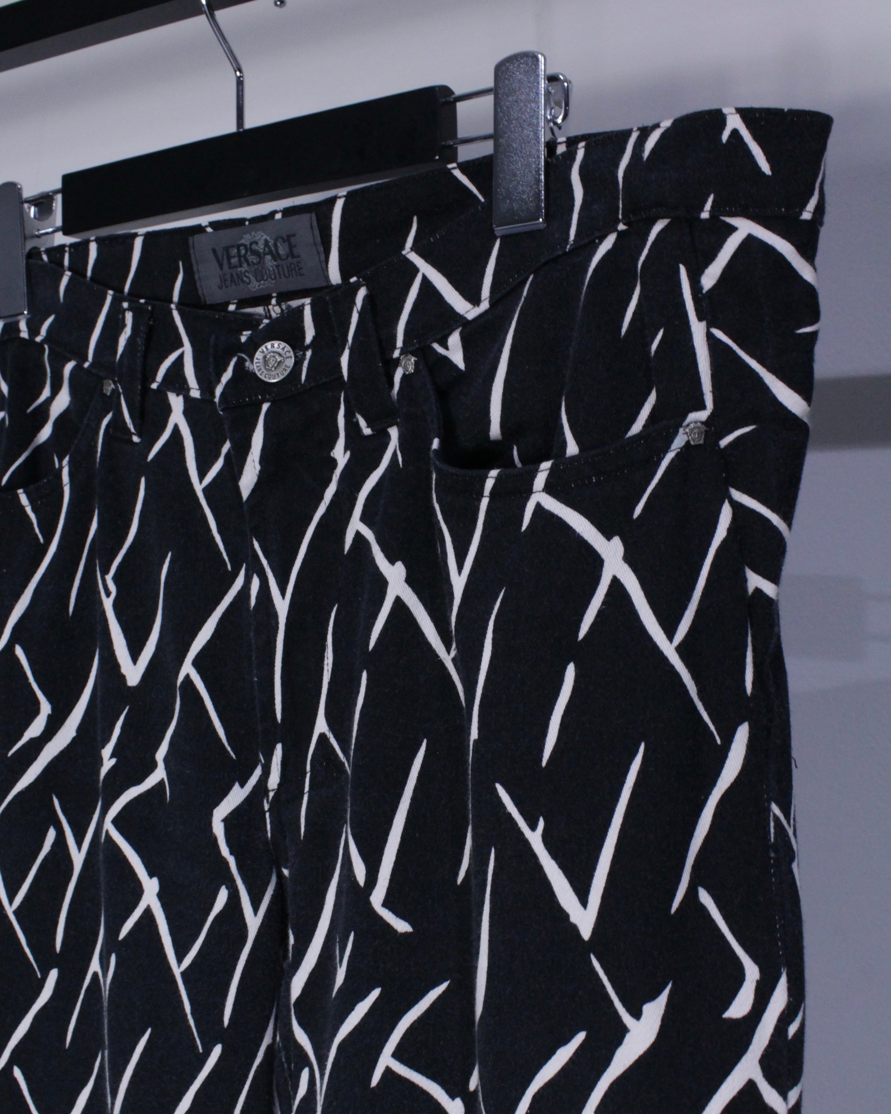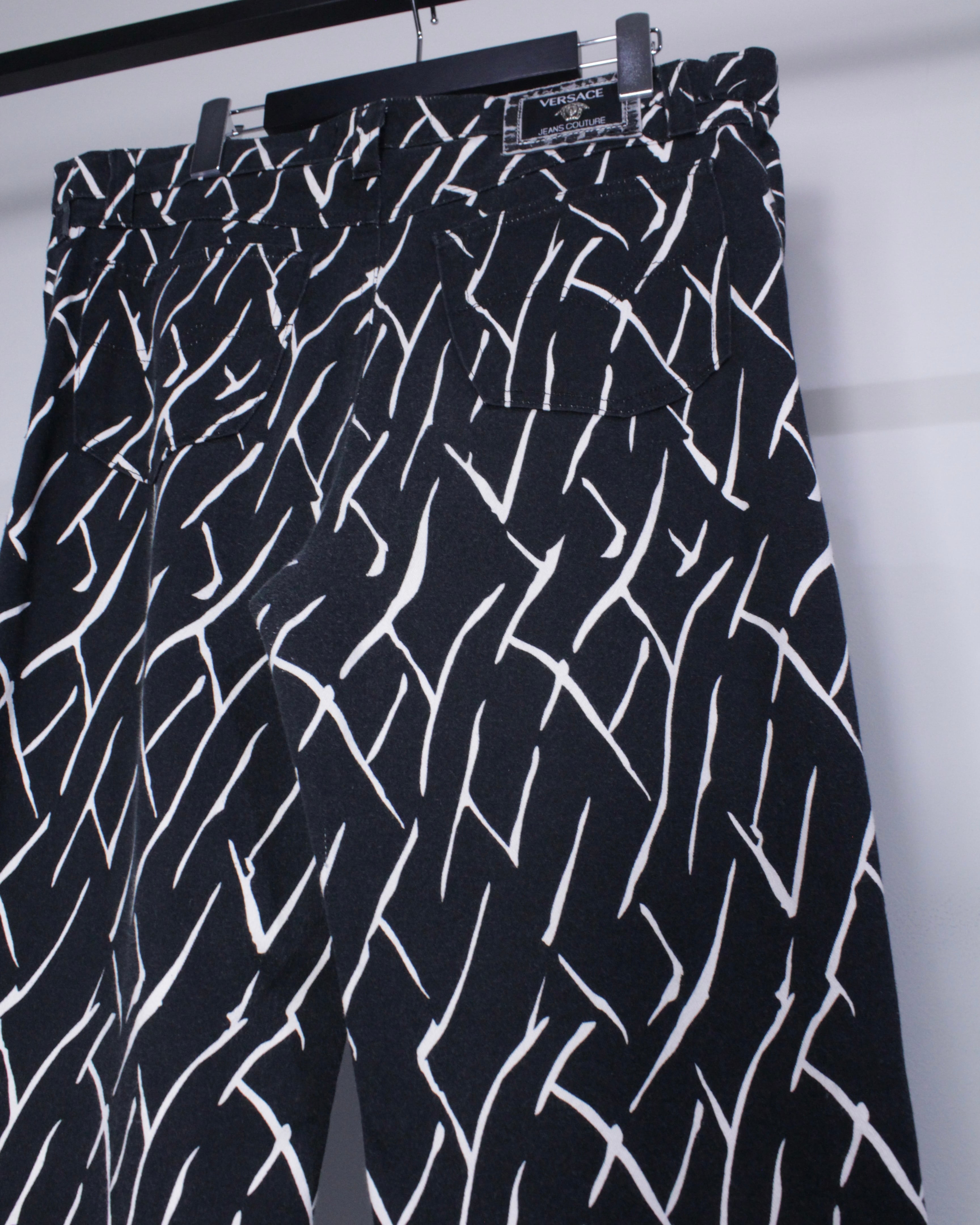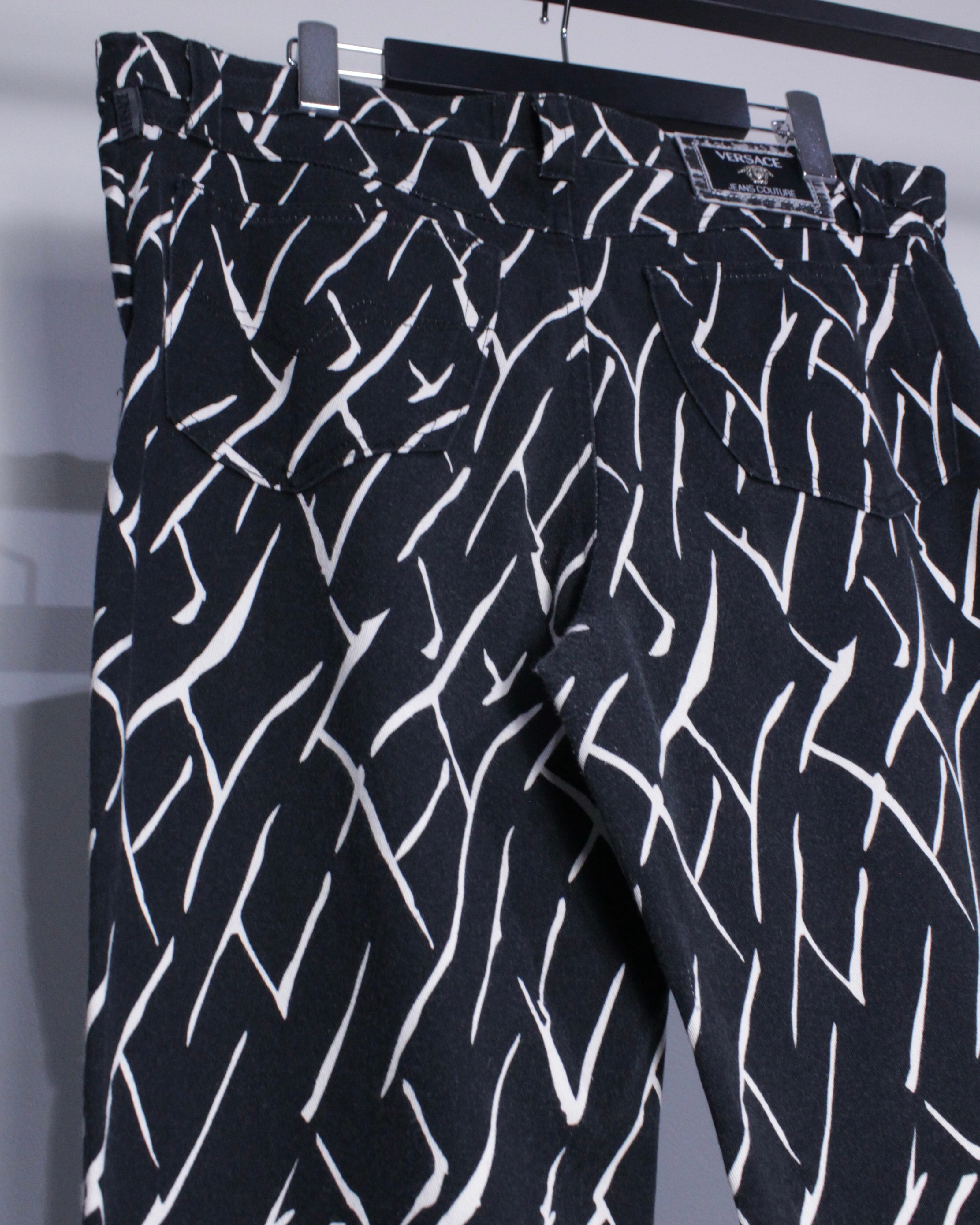ブラックのボディに、白でボディ全体に柄模様を施したパンツ。
