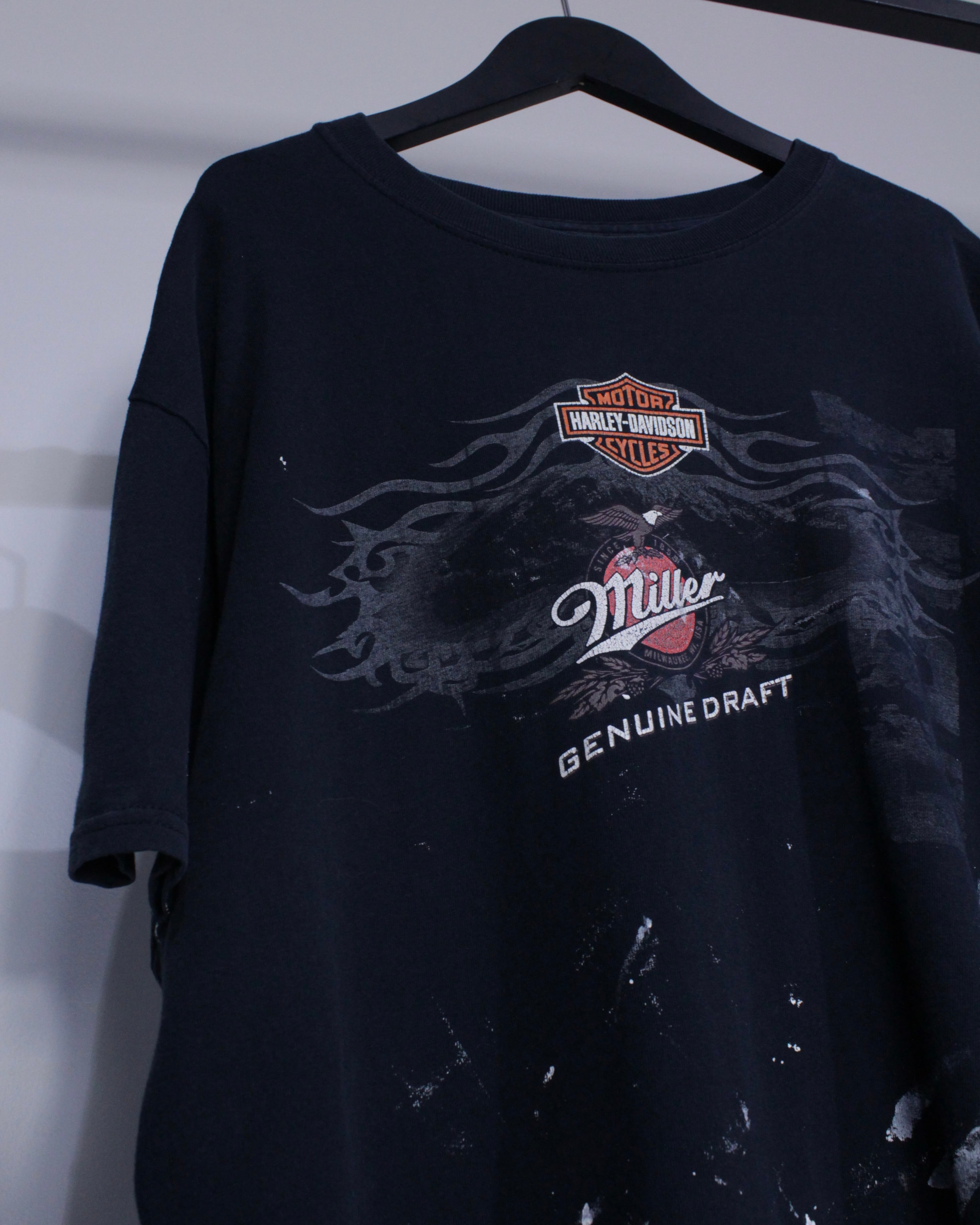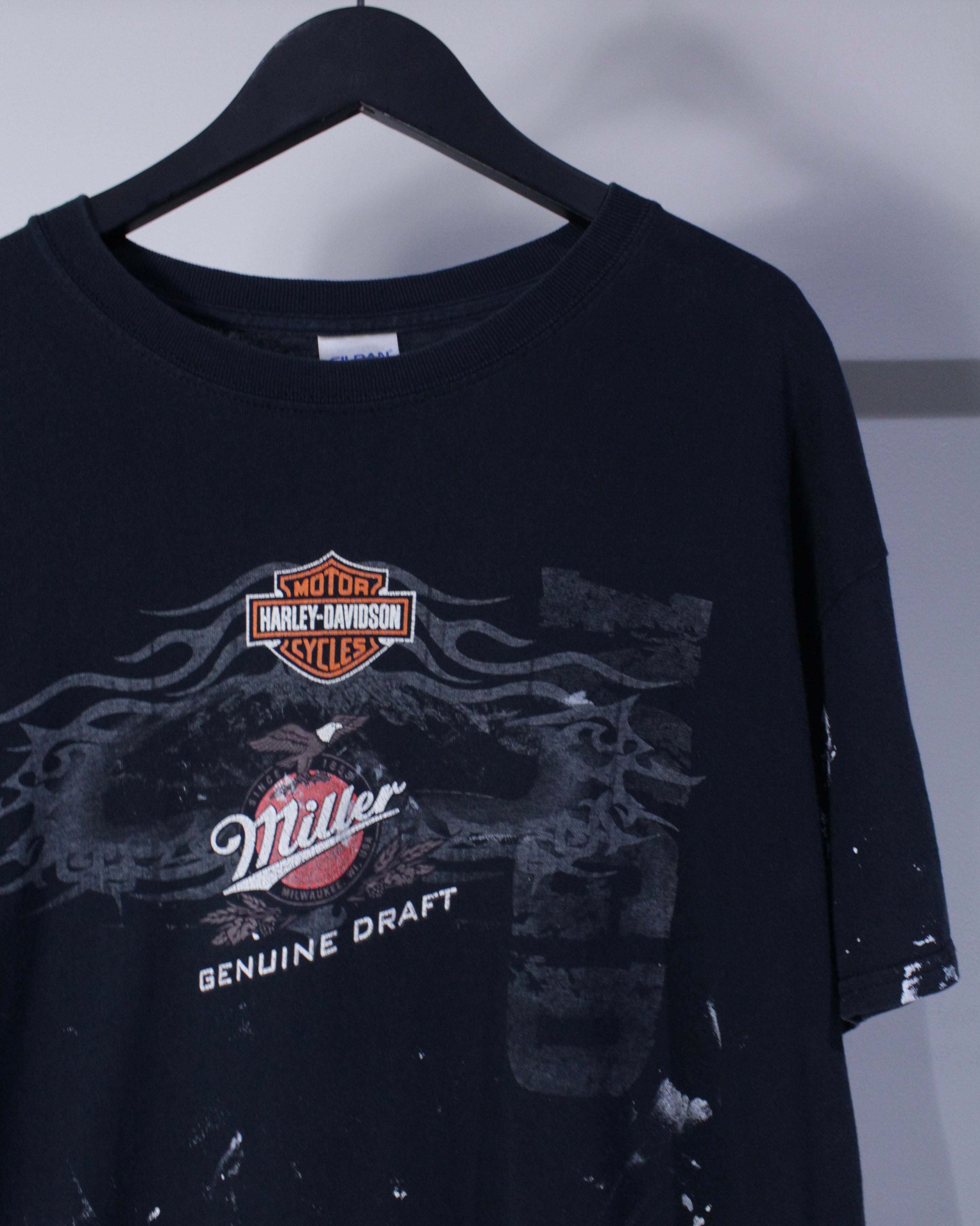 店頭でも幅広いバリエーションで展開中の"HARLEY DAVIDSON"より、デザインのノリ、ペイントのバランス感が絶妙なTシャツの逸品です。