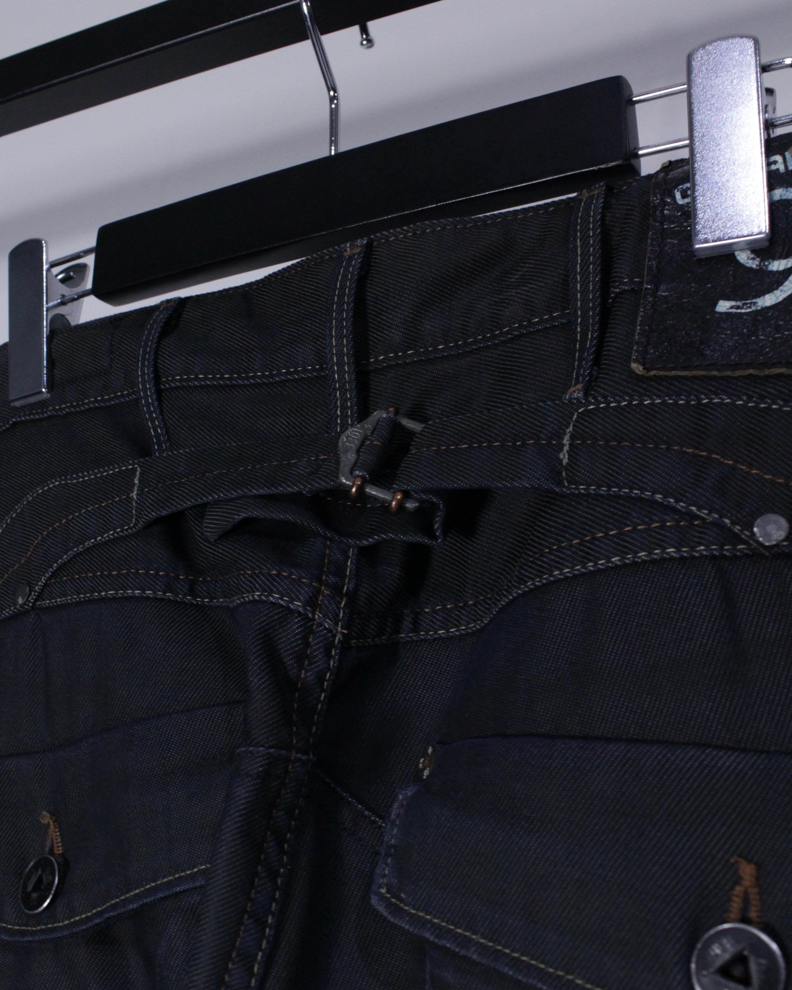サイド、バックに大きめの機能性の高いポケットを配置。ベルトループに加えてシンチバックを施し、デザイン性をさらに高く押し上げる仕上がりに。