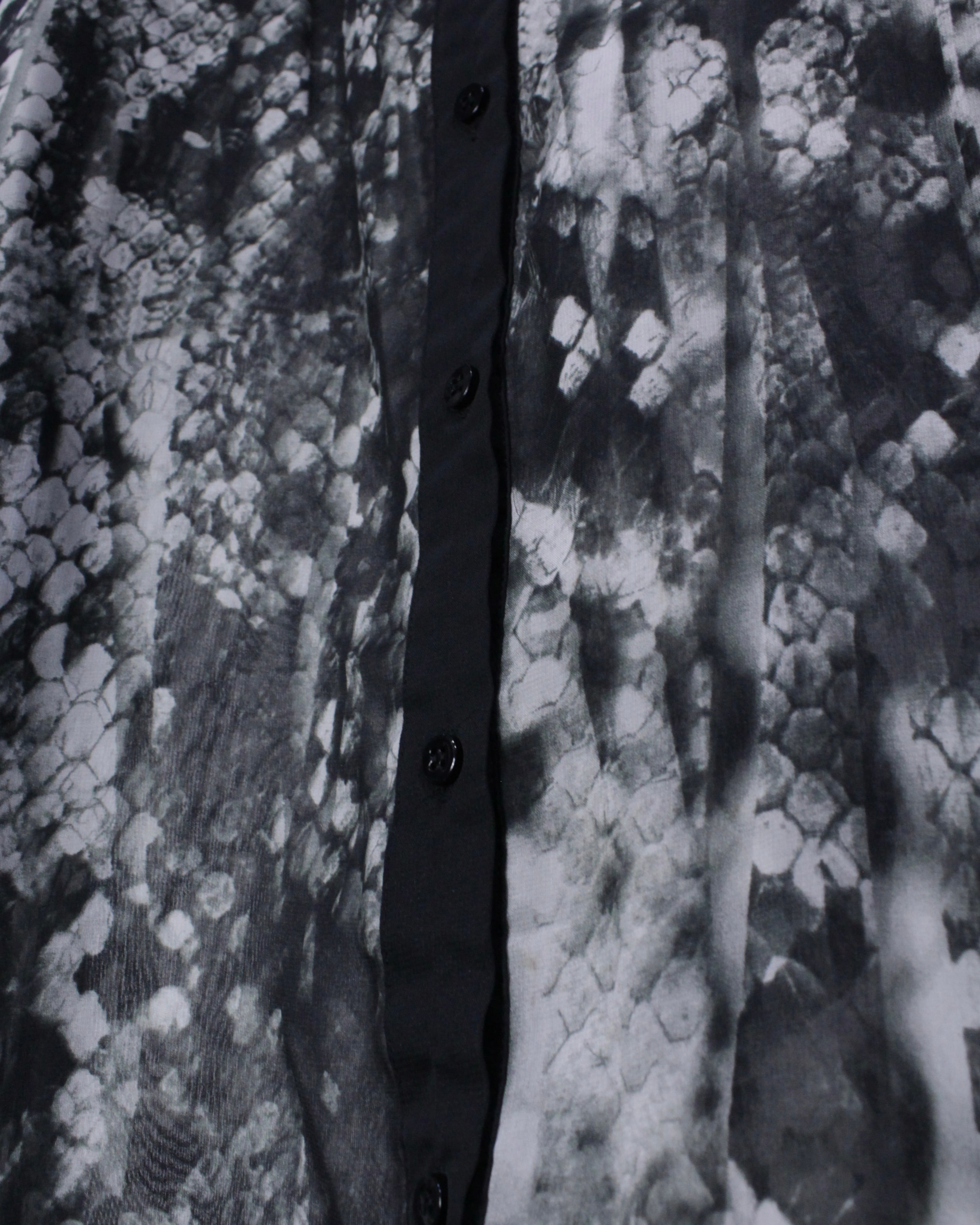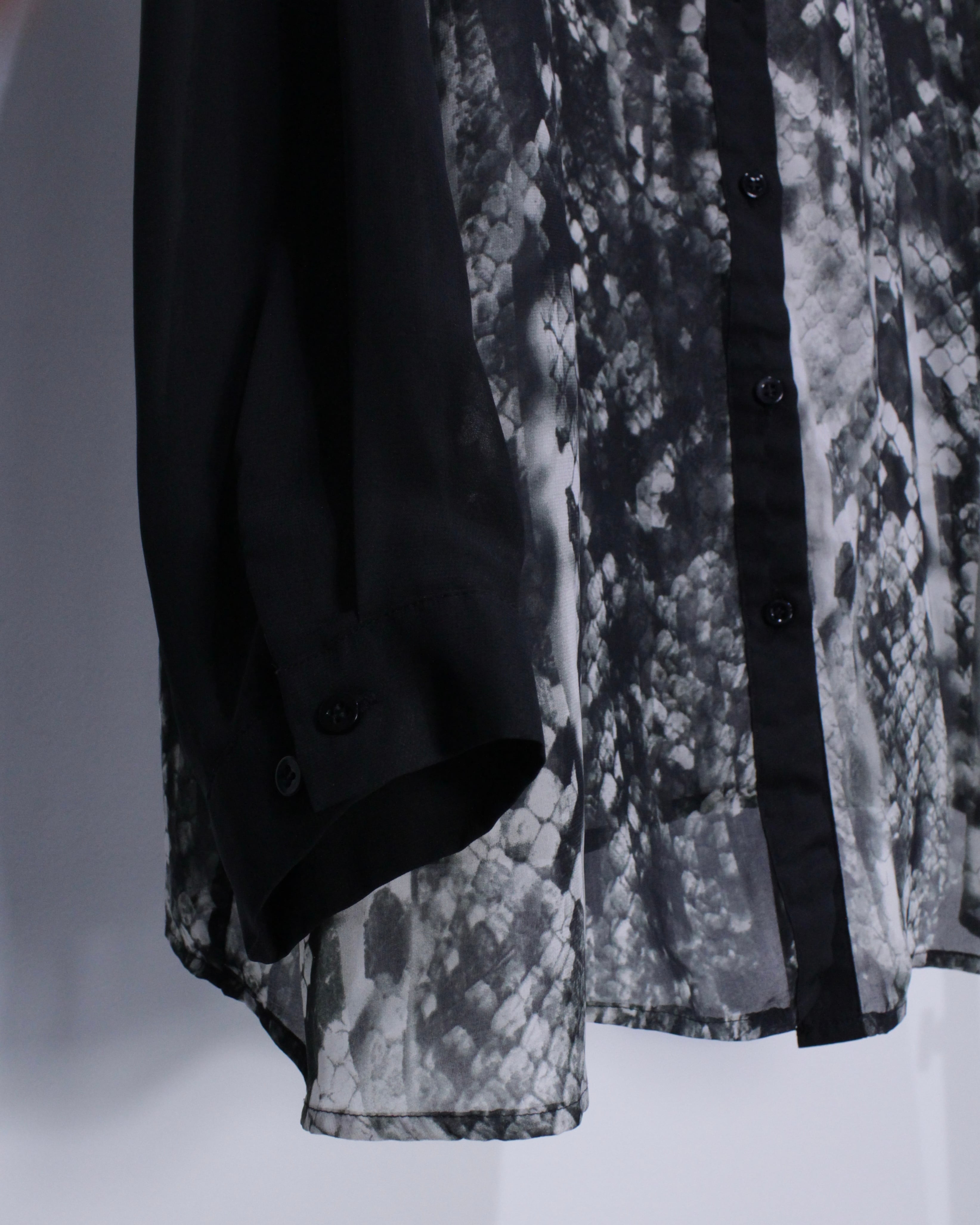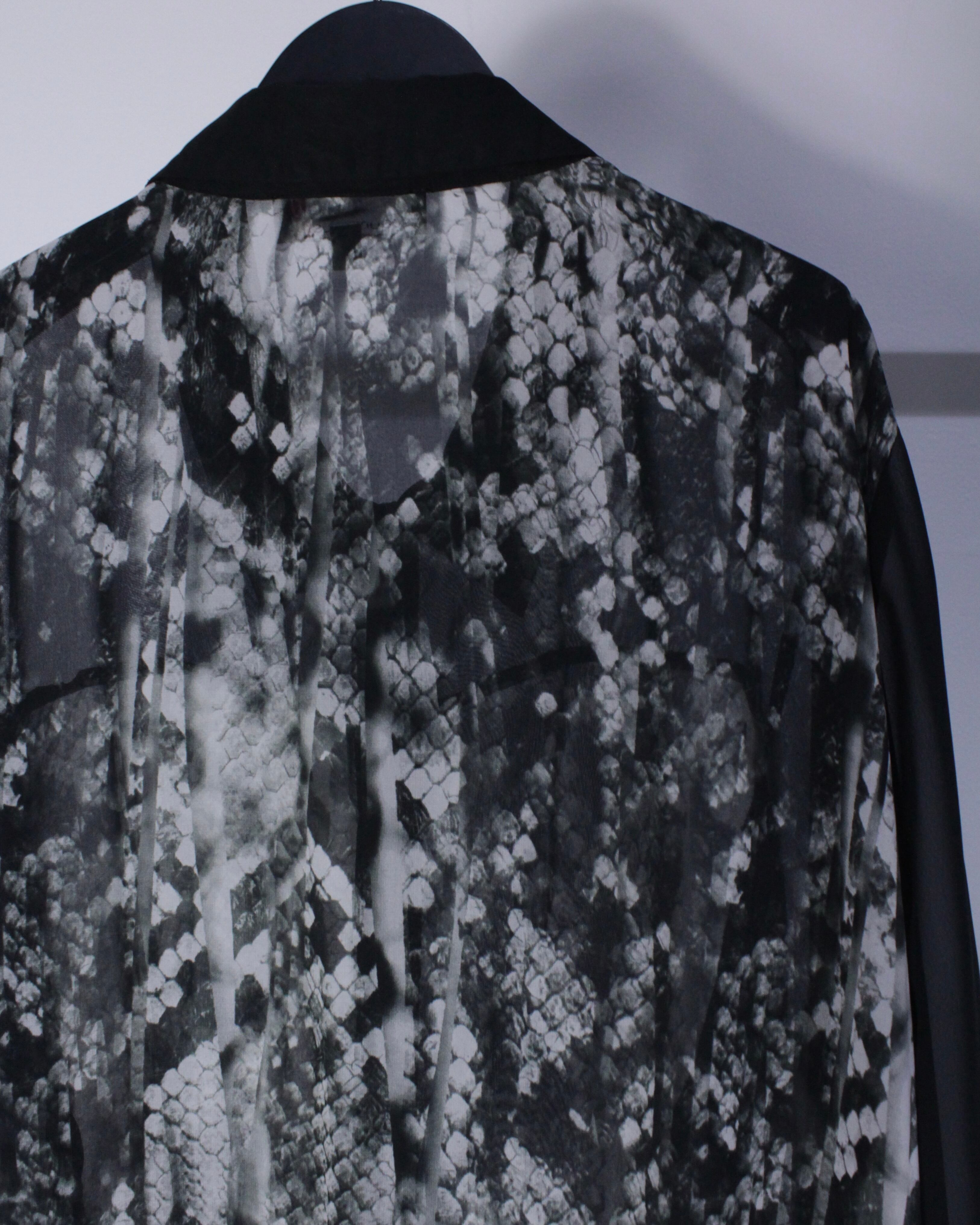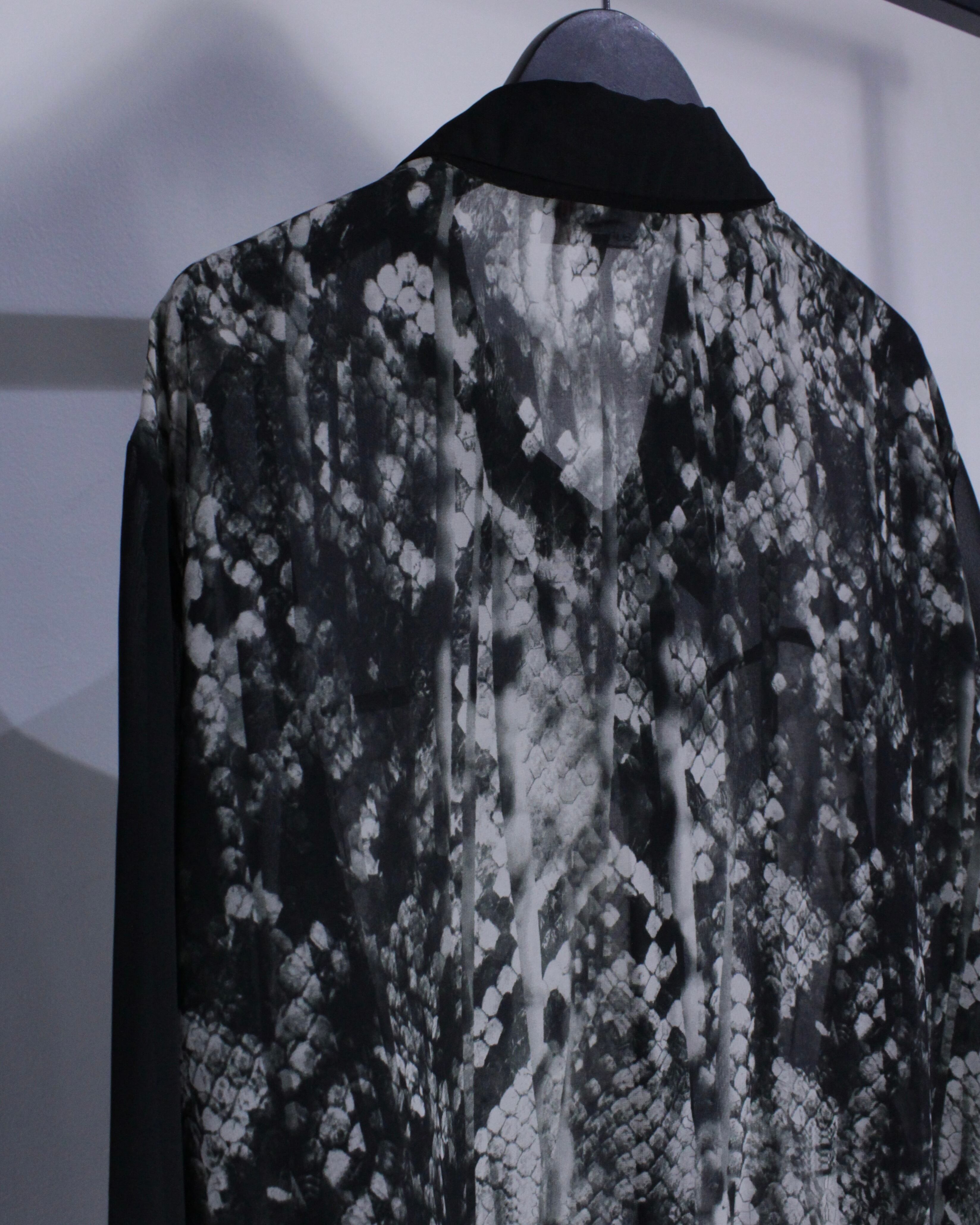 透け感の美しいシアー素材に、グラデーションがかったパイソン柄を載せた逸品。