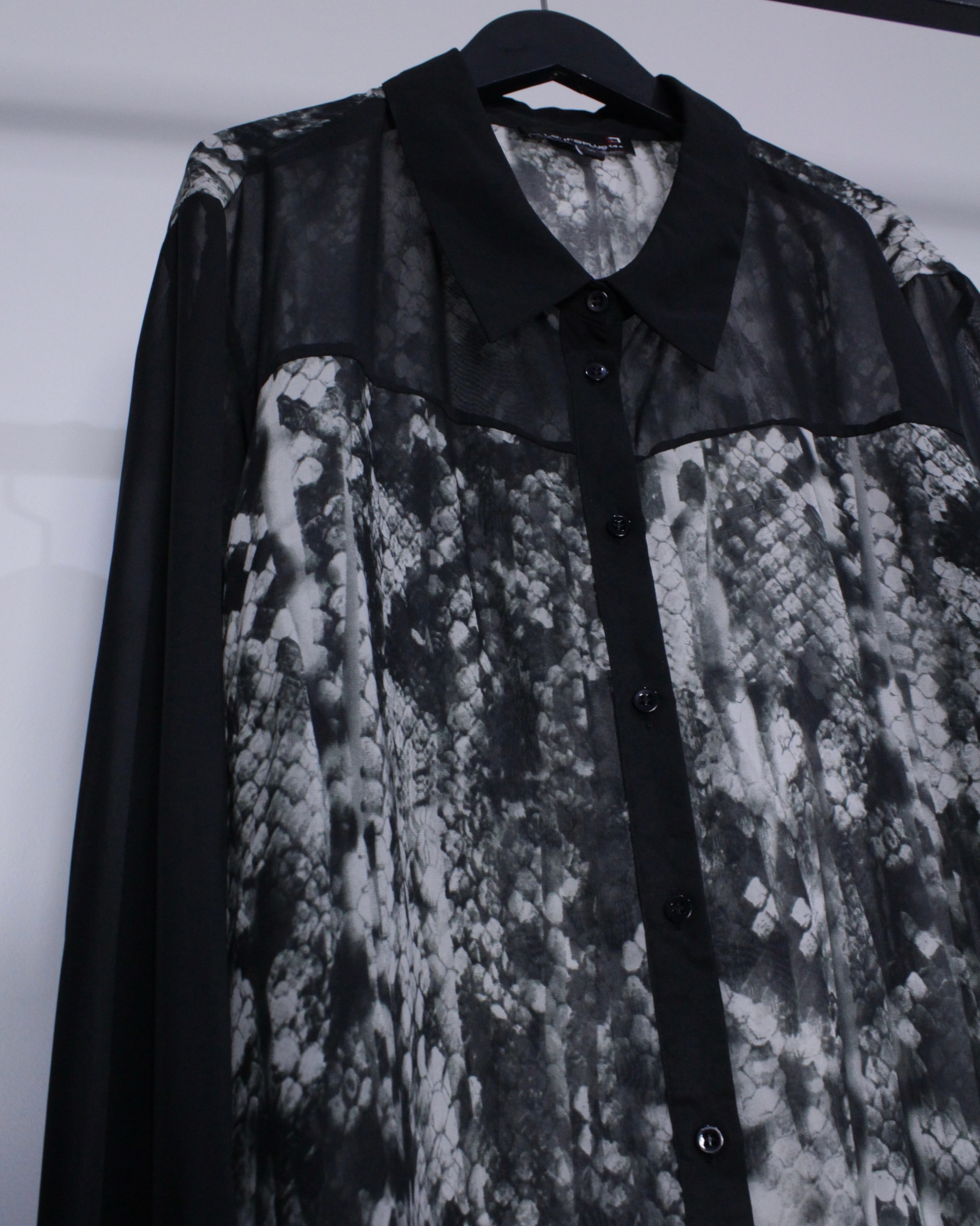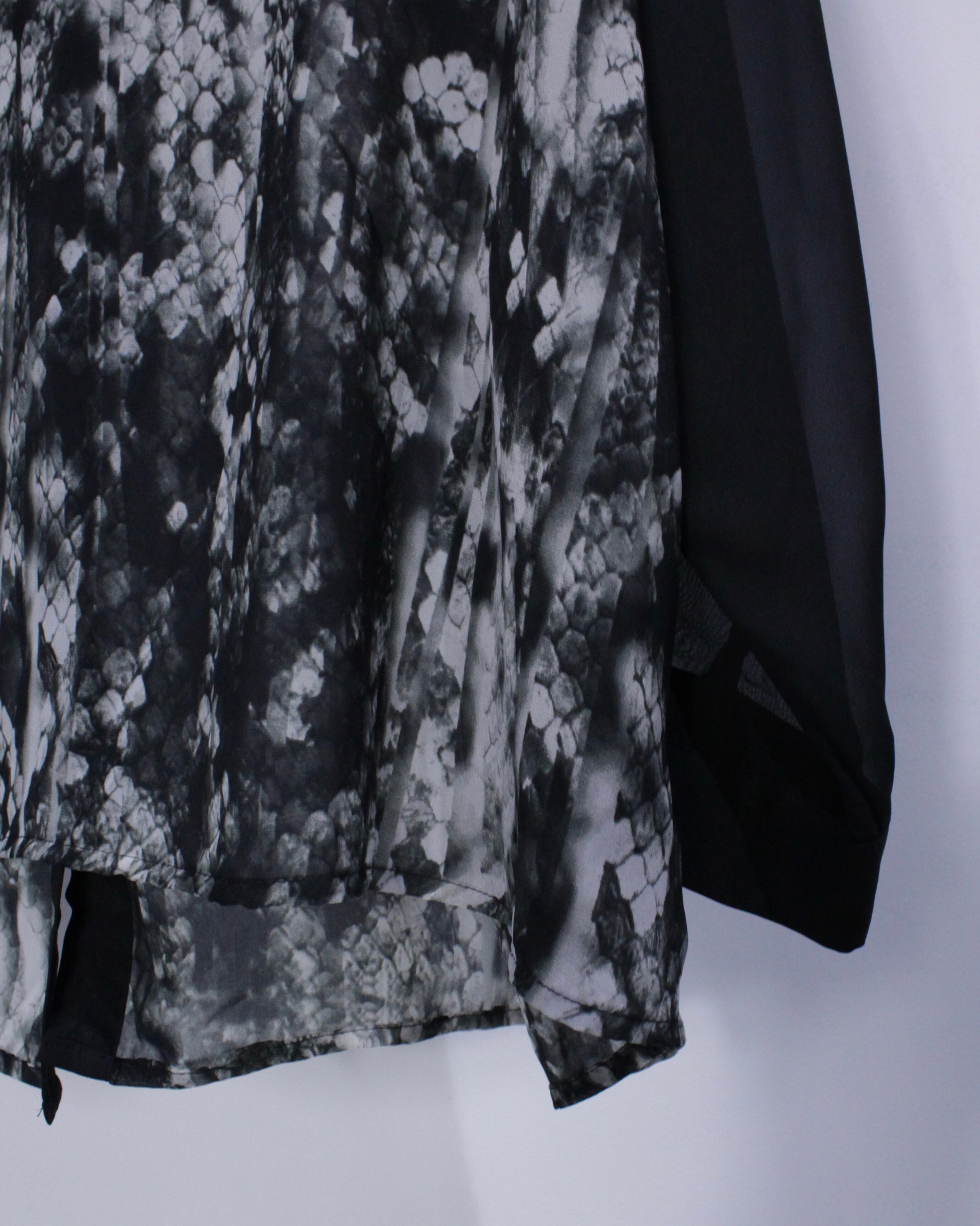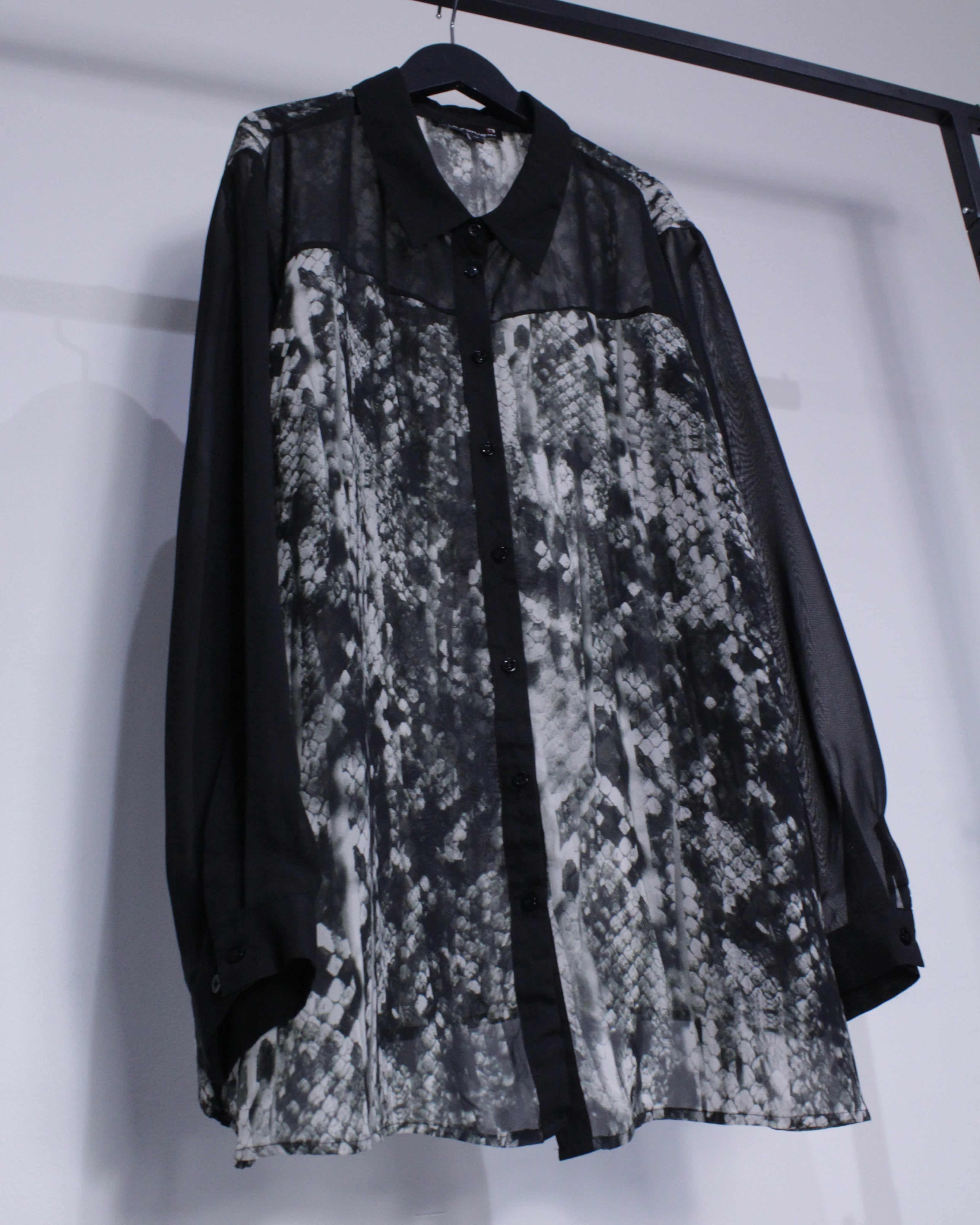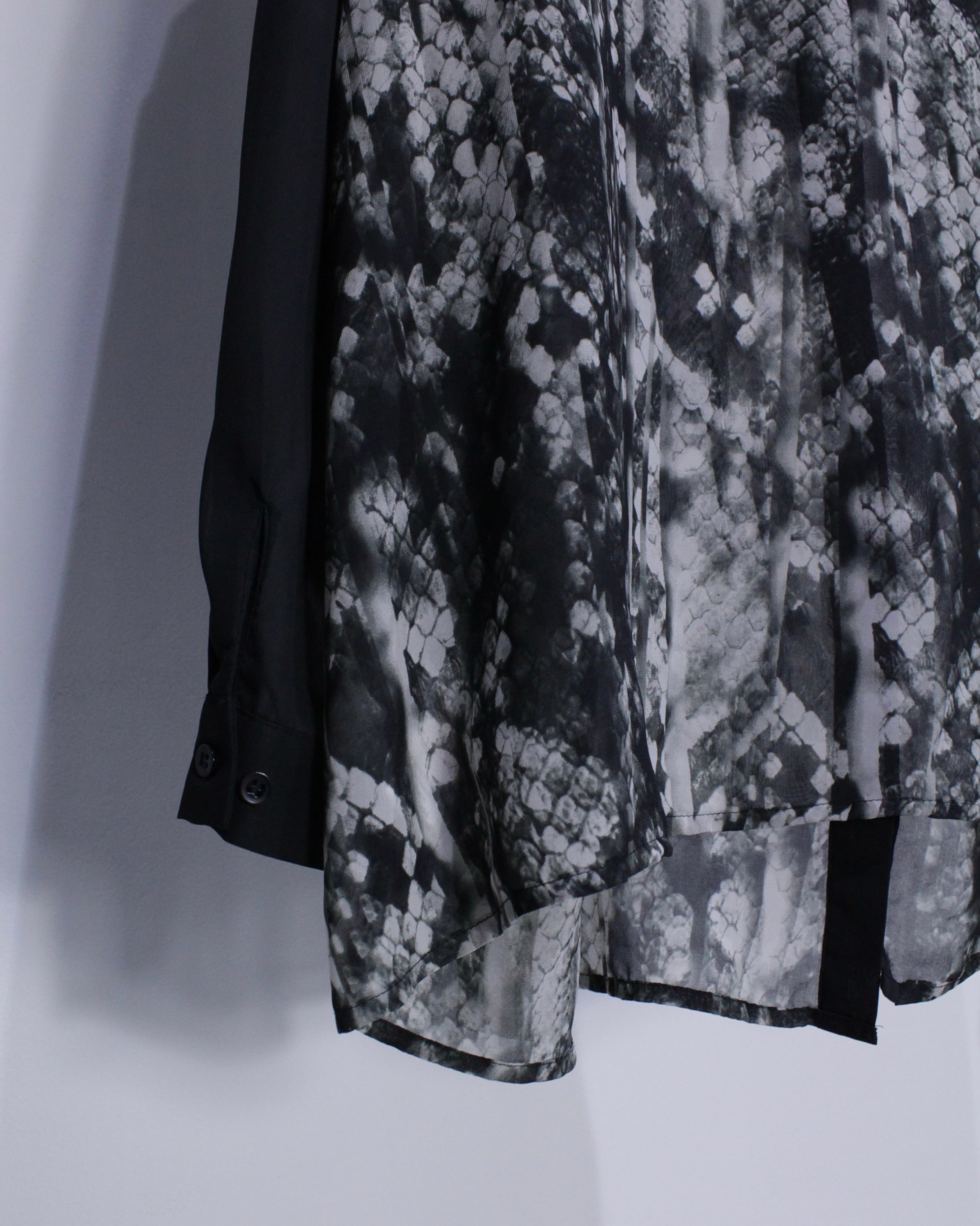 透け感の美しいシアー素材に、グラデーションがかったパイソン柄を載せた逸品。