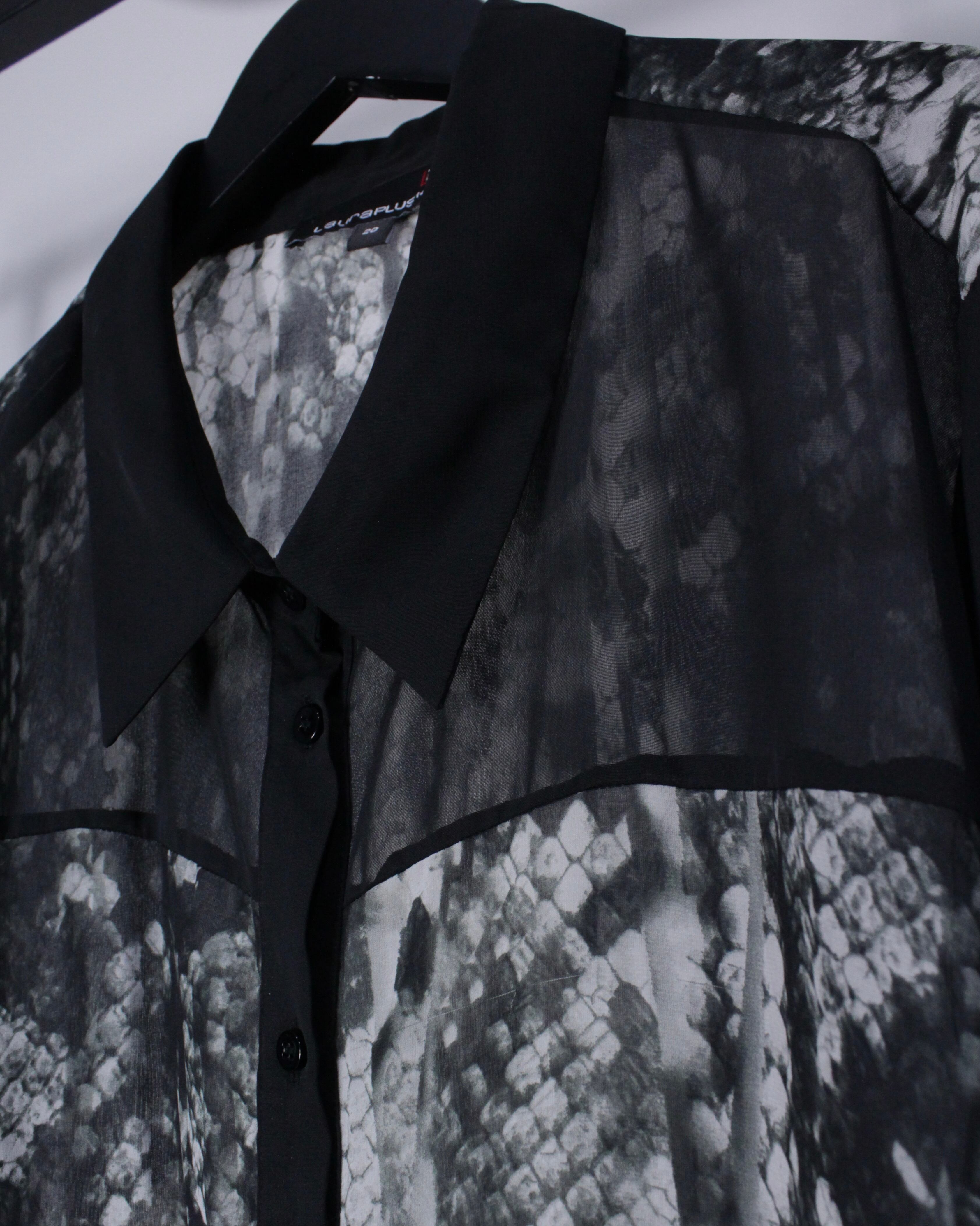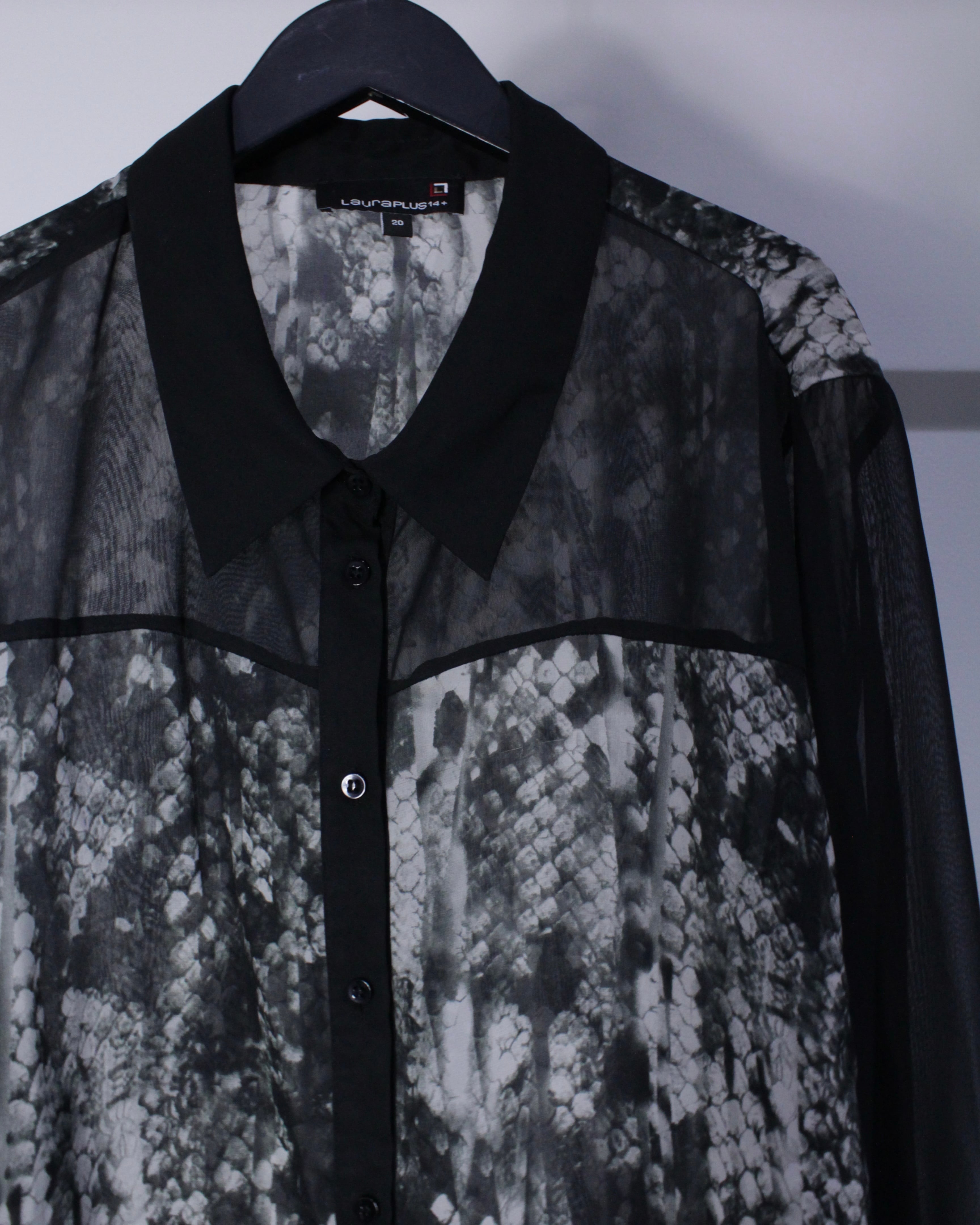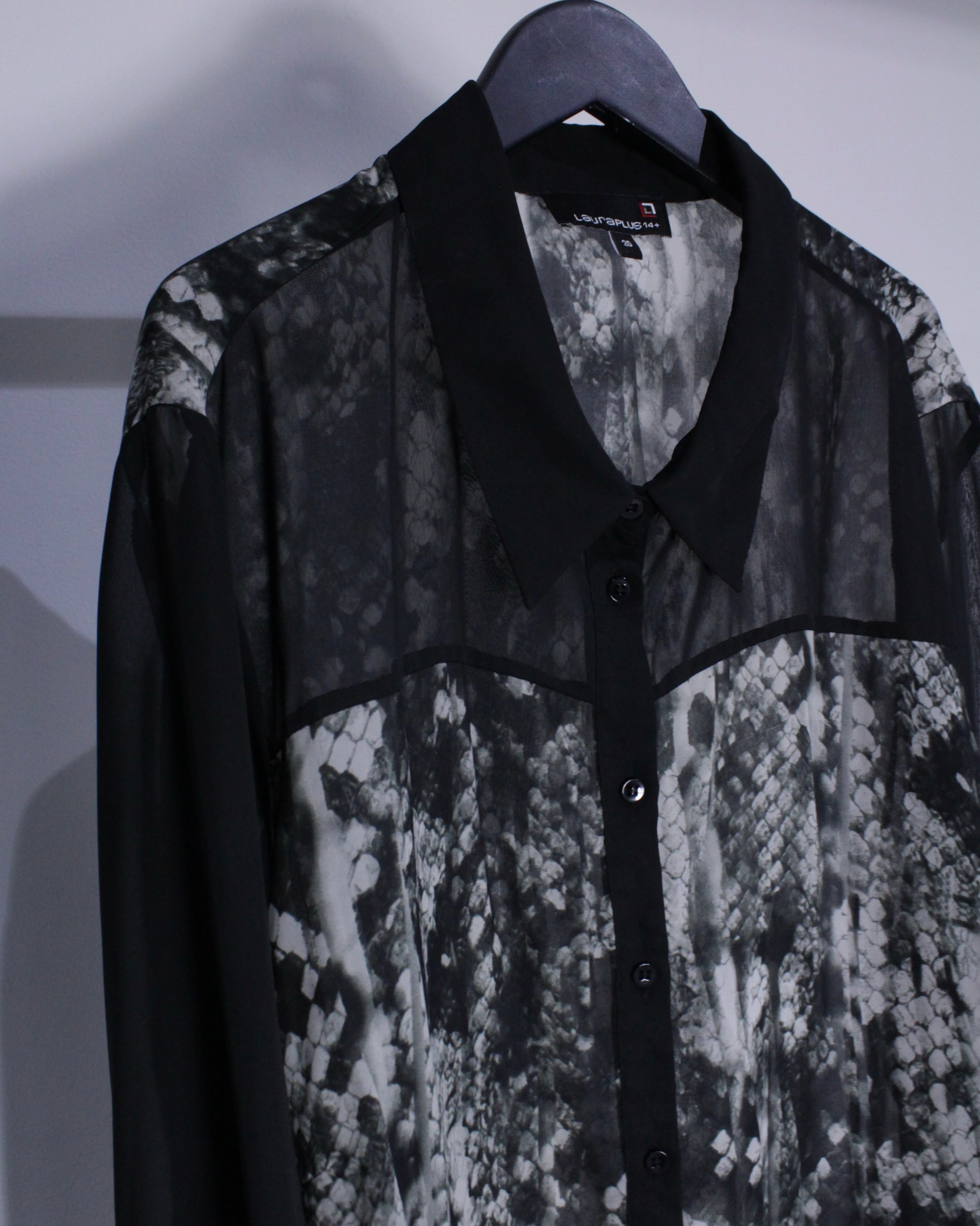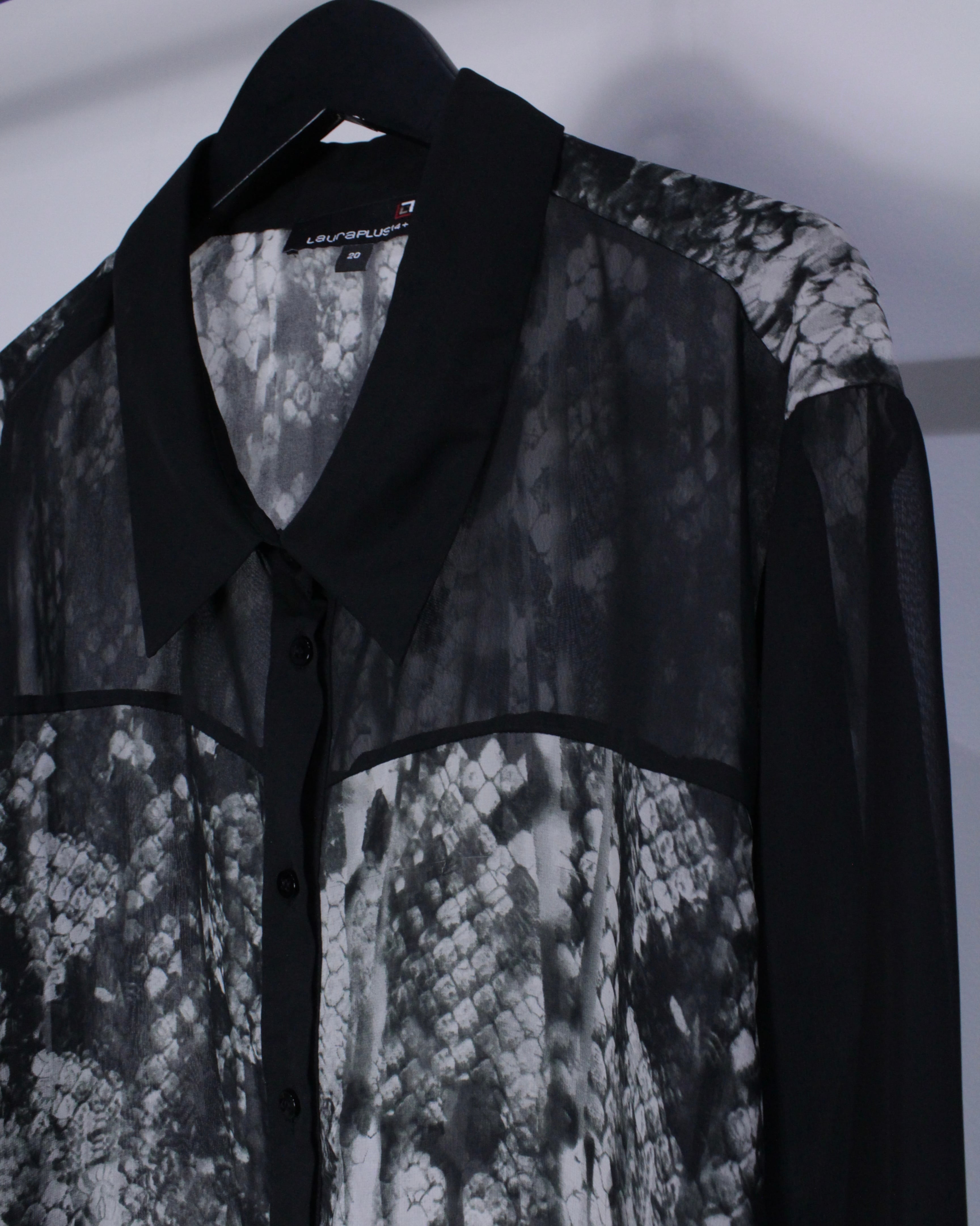 透け感の美しいシアー素材に、グラデーションがかったパイソン柄を載せた逸品。