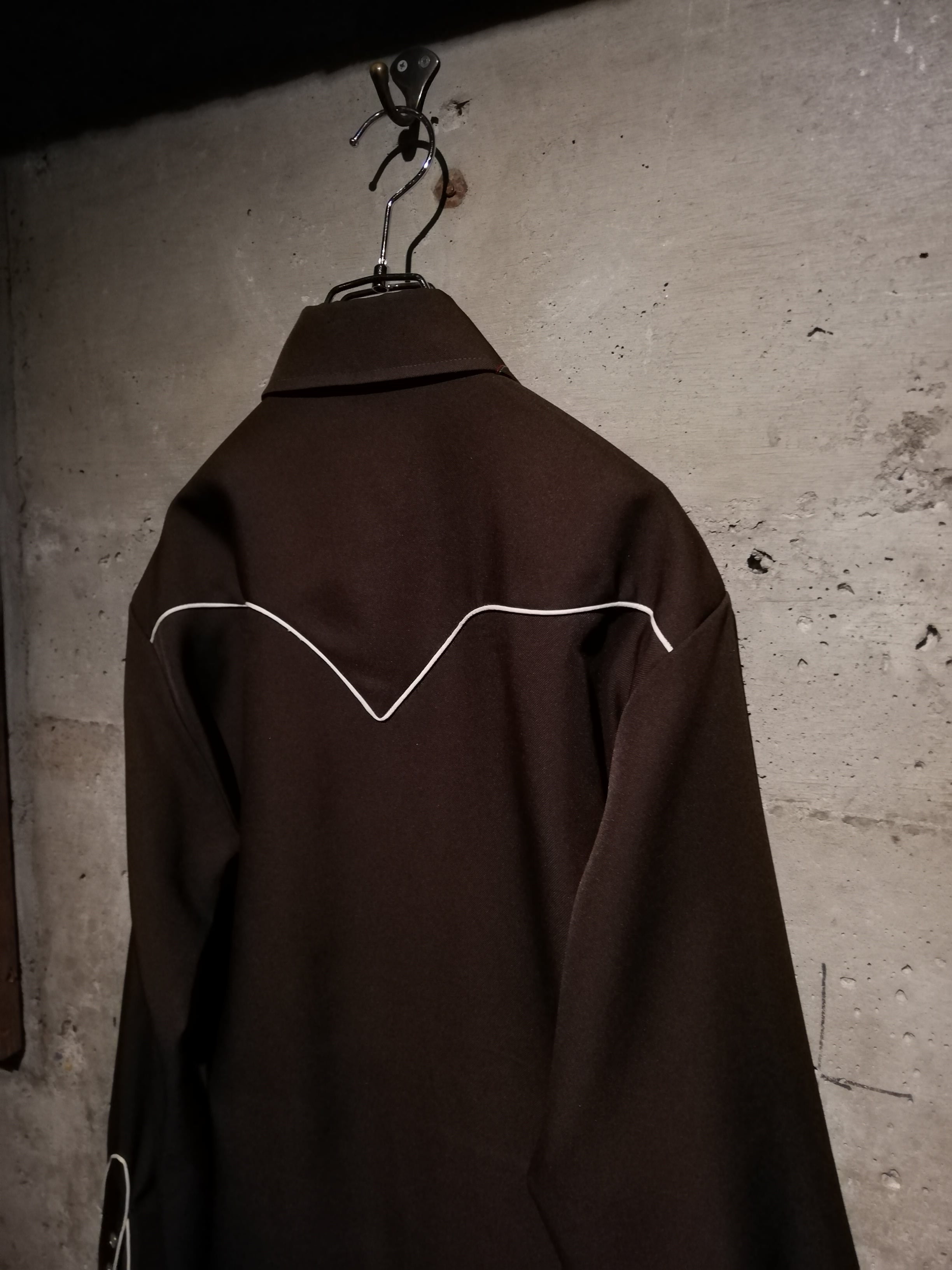 ヨーク部分には、グラデーションがかった糸のチェーンステッチでデザイン。アローポケットやパイピング、パールスナップボタン、ウエスタンのカラーチップと細やかな作り込み。さすがH BAR Cの一言に尽きます、、、
