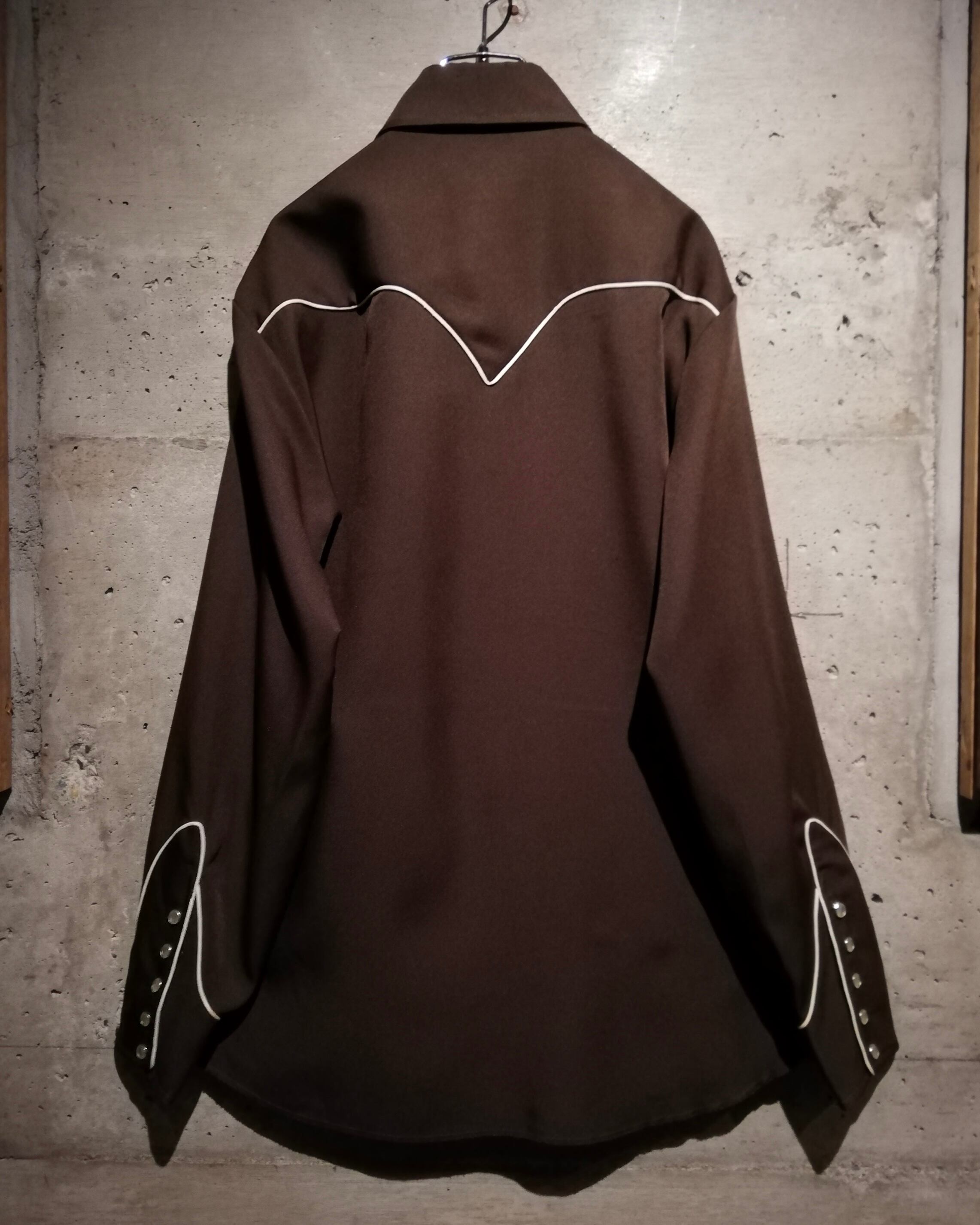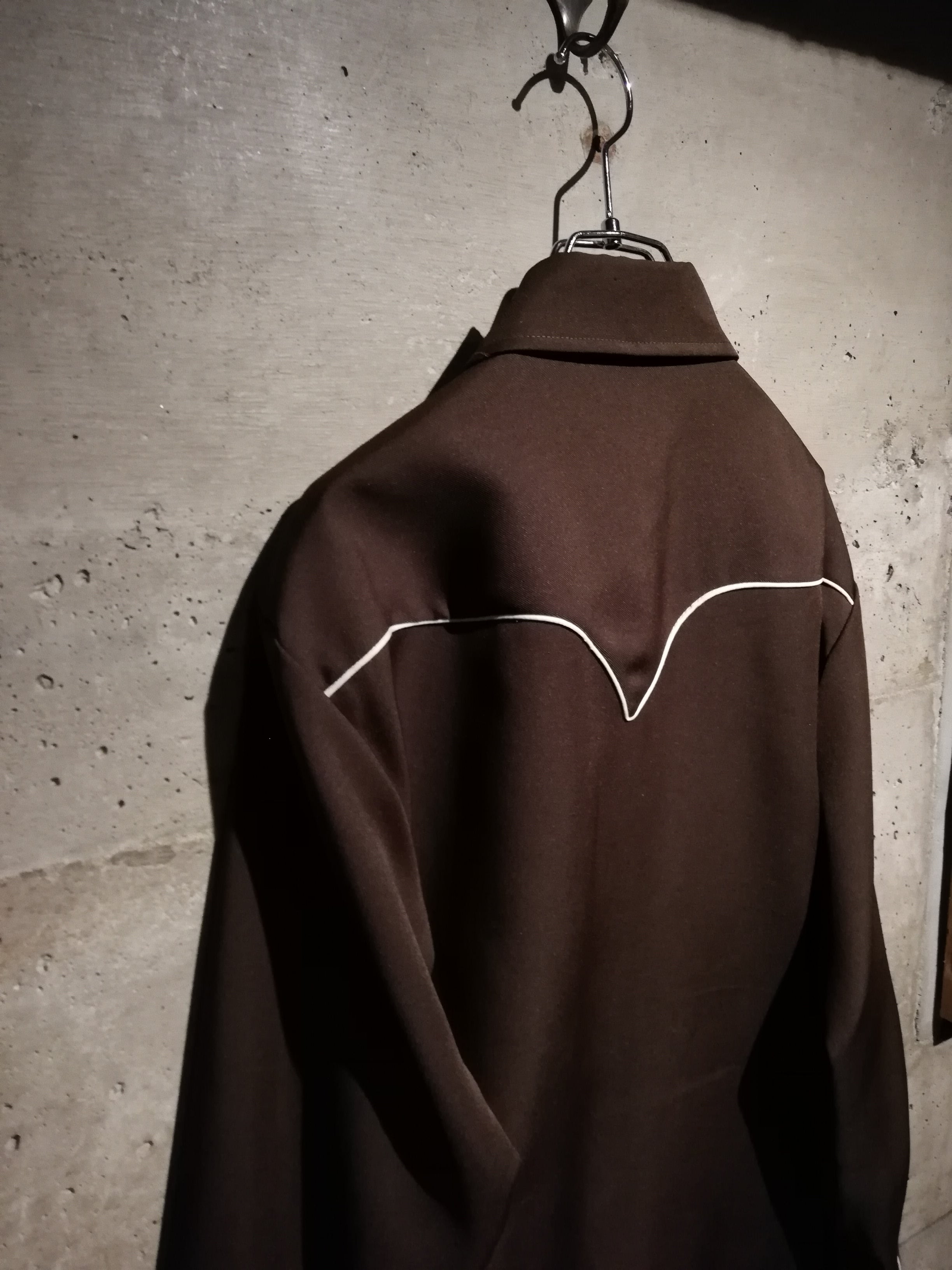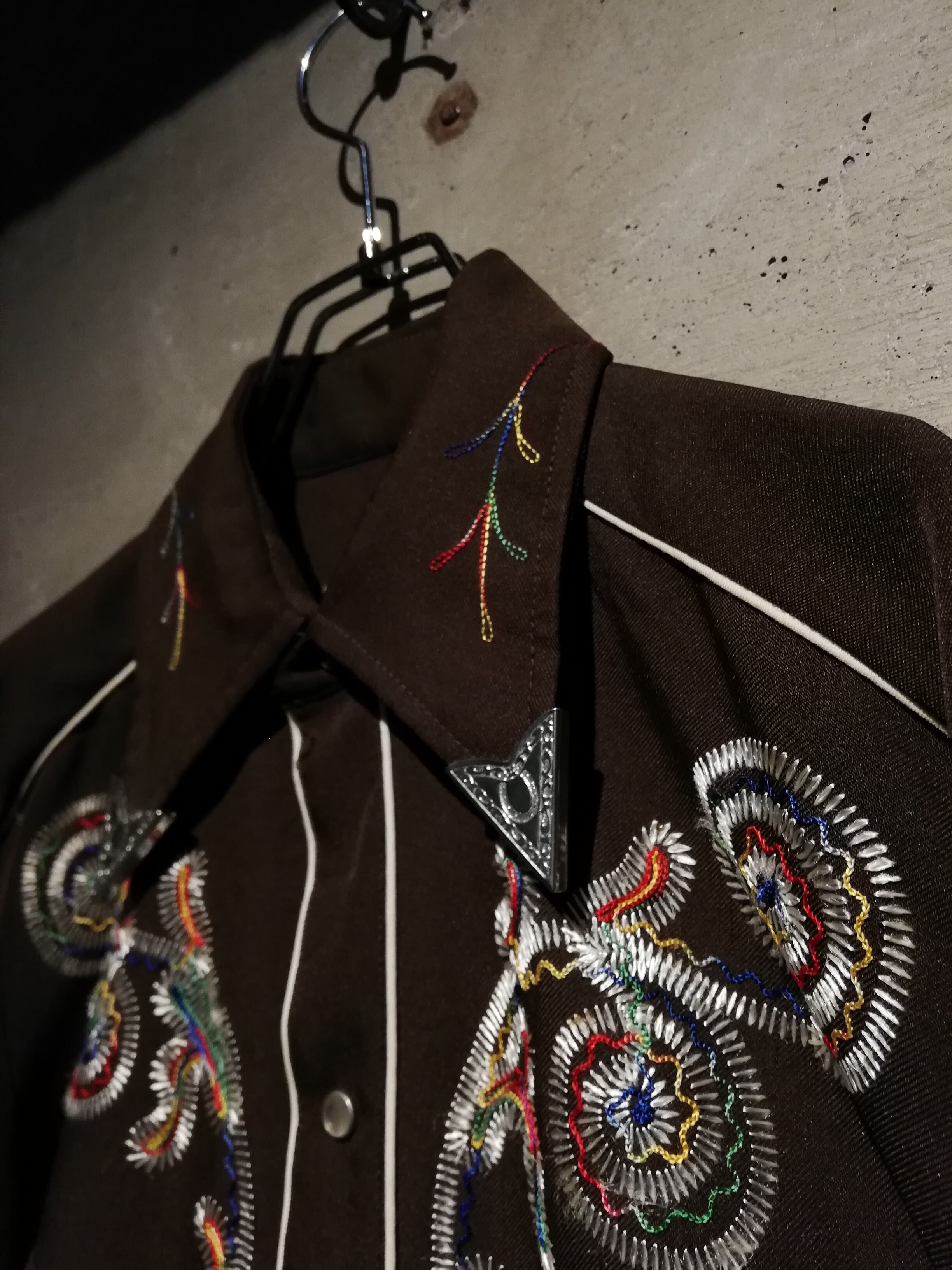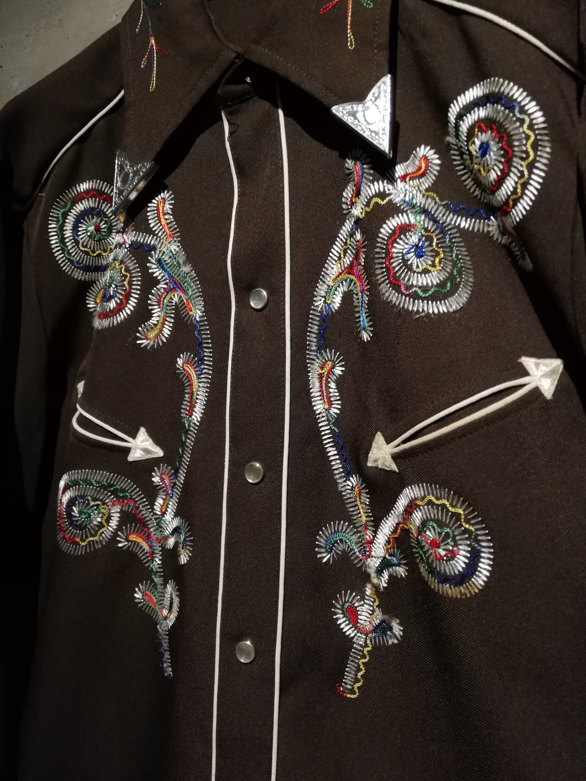 ブラウンのボディをベースに、多彩なカラーリングでボタニカルな刺繍を刻んだ70'sヴィンテージのウエスタンシャツ。