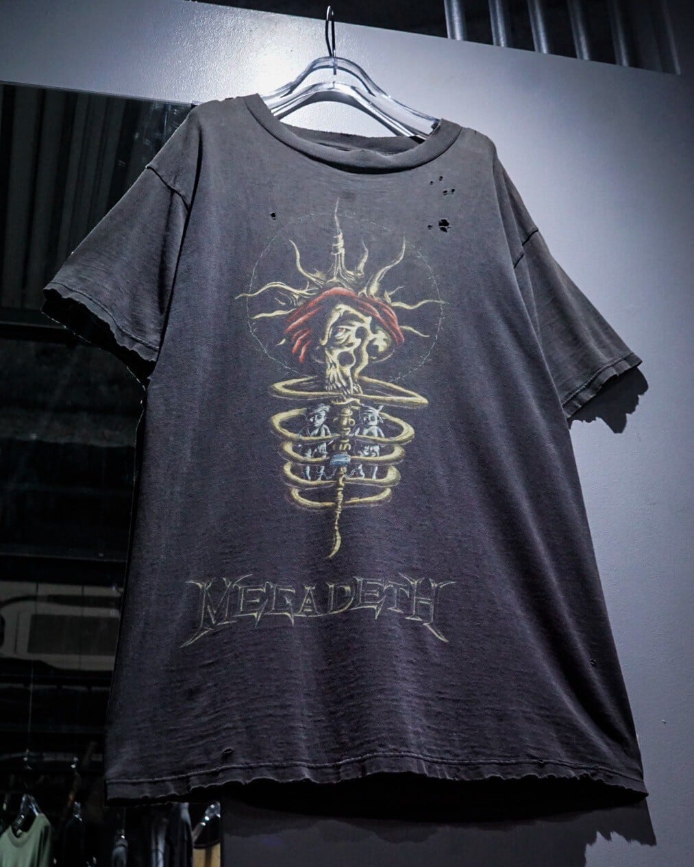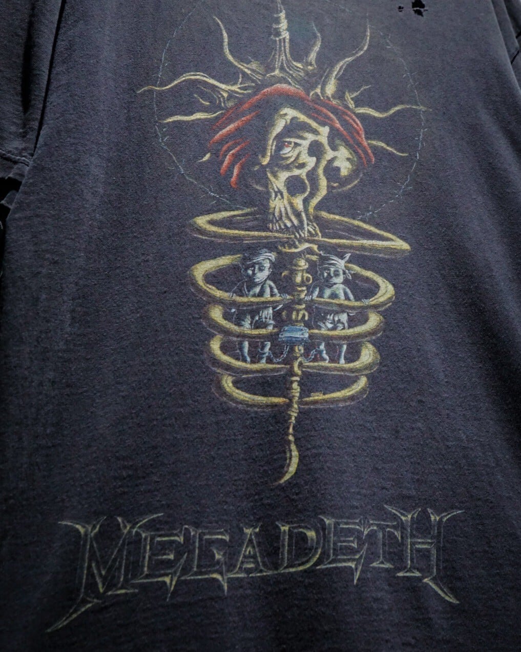 今も尚世界中で根強い人気を誇る"MEGADETH"。ヴィンテージTシャツをはじめとし、人気と共に稀少価値も高まってきている中、デザイン、サイズ感どこをとっても文句無し。メガデスをご存知の方もそうでない方にもお手に取っていただきたい1着です。