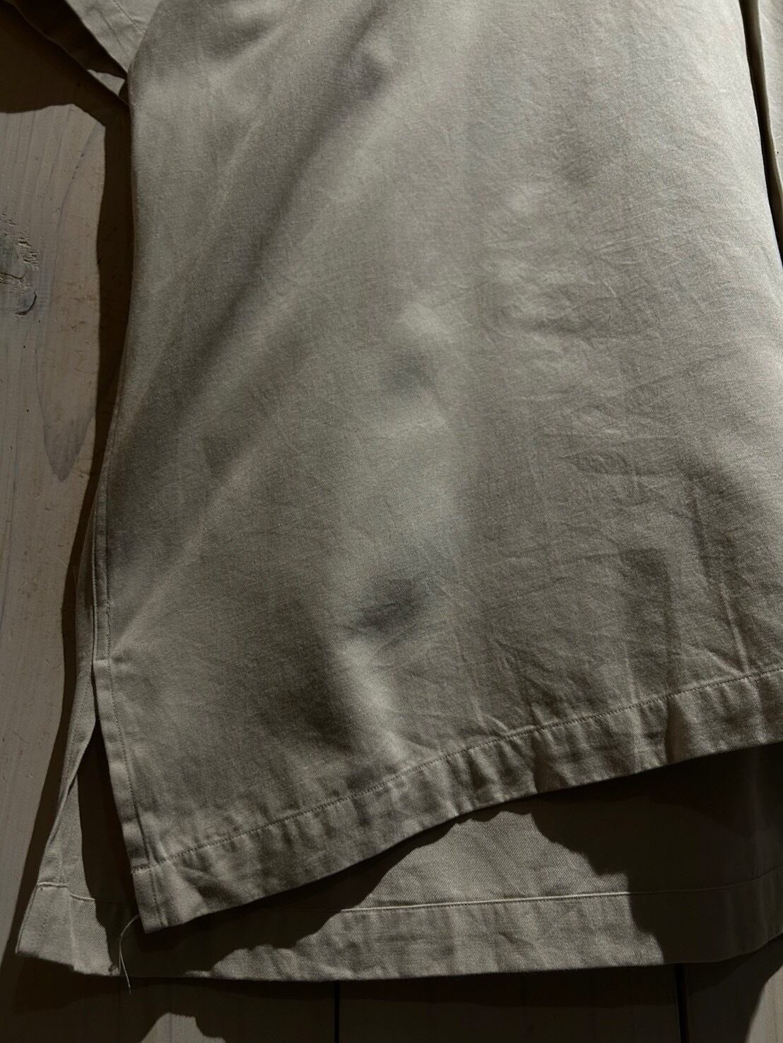 "Caldwell"ならではの、オープンカラー仕様で裾にはスリット入り、ややたっぷりめに身幅をとったリラックスシルエット。業界内でも個体数が少ない稀少モデルですが、コンディションにサイジング、素材使いの3拍子揃ったスペシャルピース。