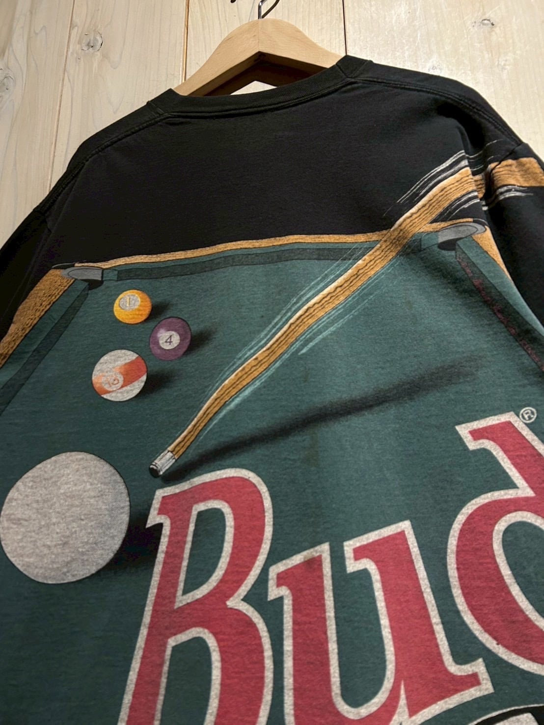 タバコや酒といった嗜好品系のヴィンテージTシャツの中でも、一際人気を博す"Budweiser"のデザインに富んだ1着です。