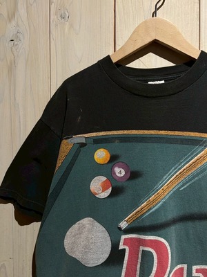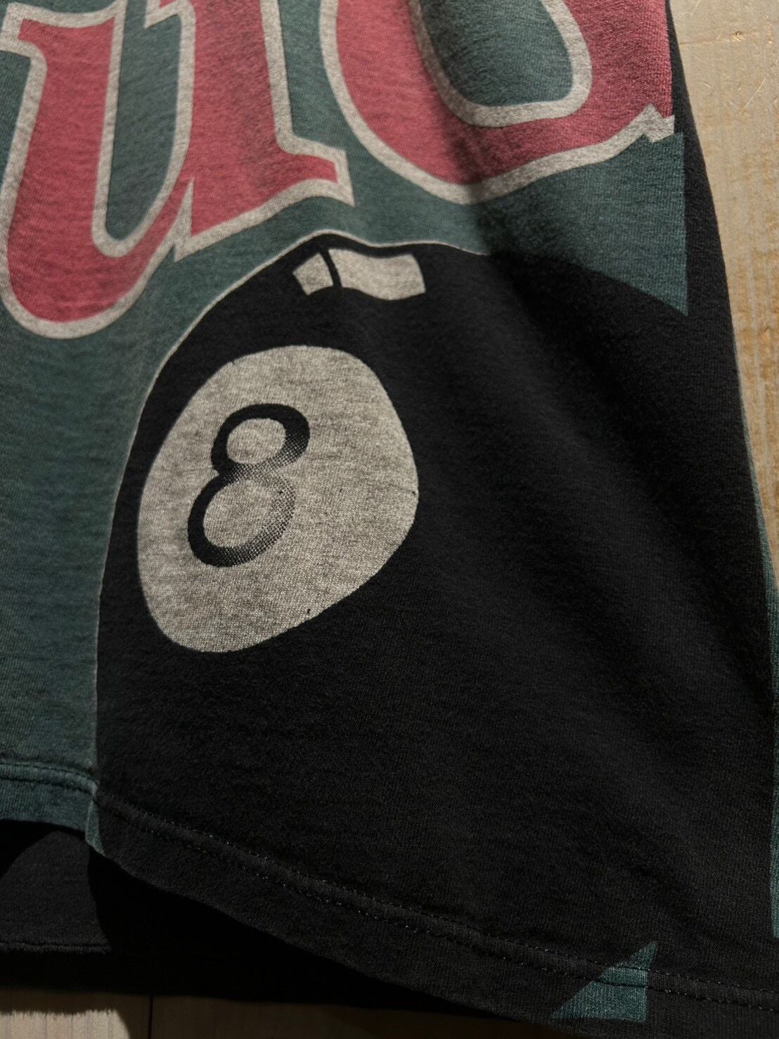 ブラックのボディにビリヤードを両面オーバープリントで載せたインパクト抜群の1着です。