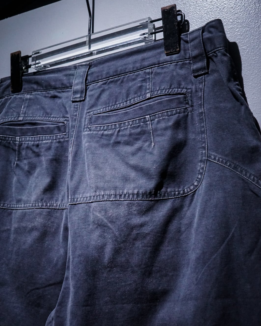 ライトオンスで仕上げられたグレーのダック生地をボディに使用し、経年変化による美しい表情が現れたレイブショーツ。
