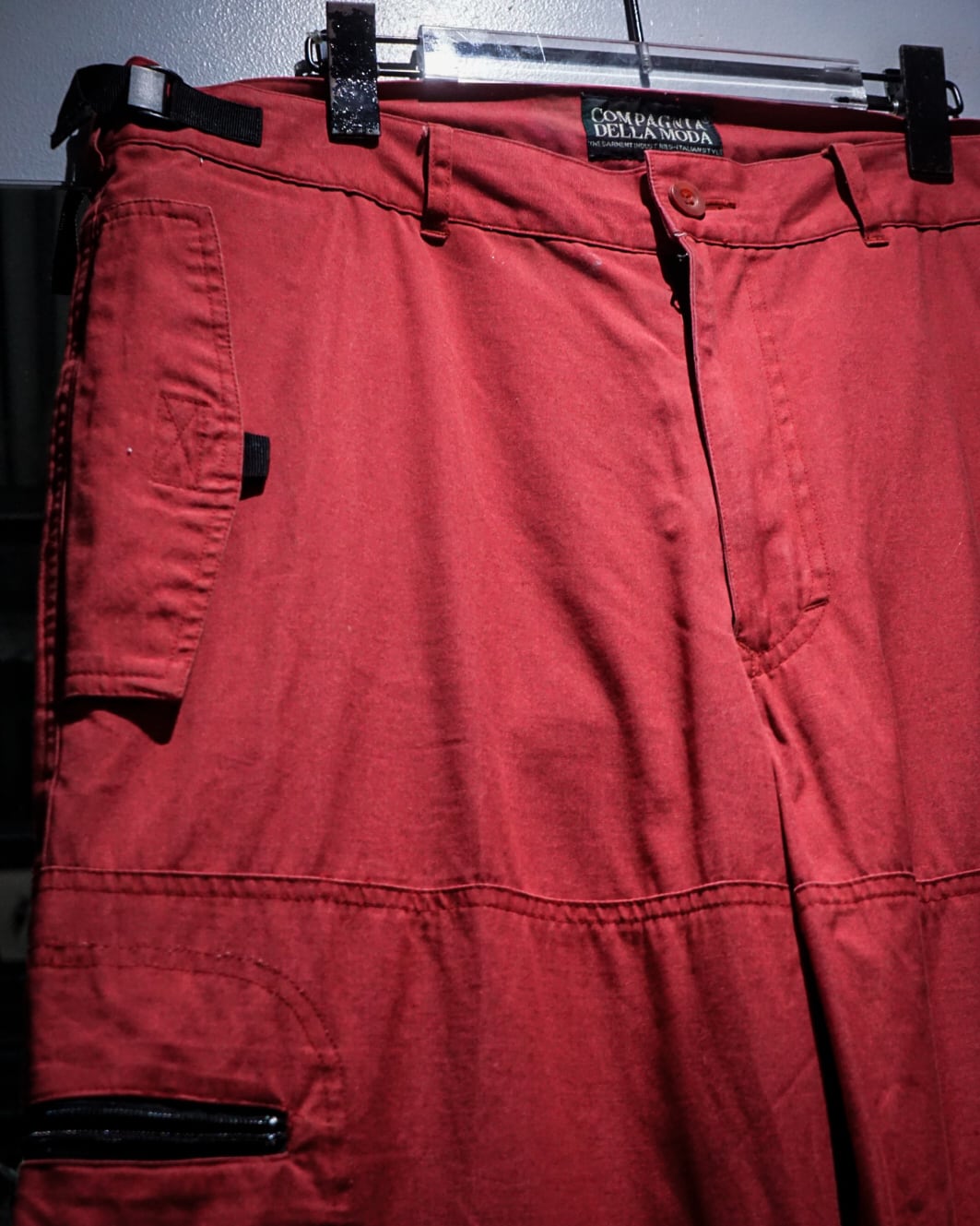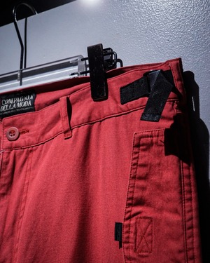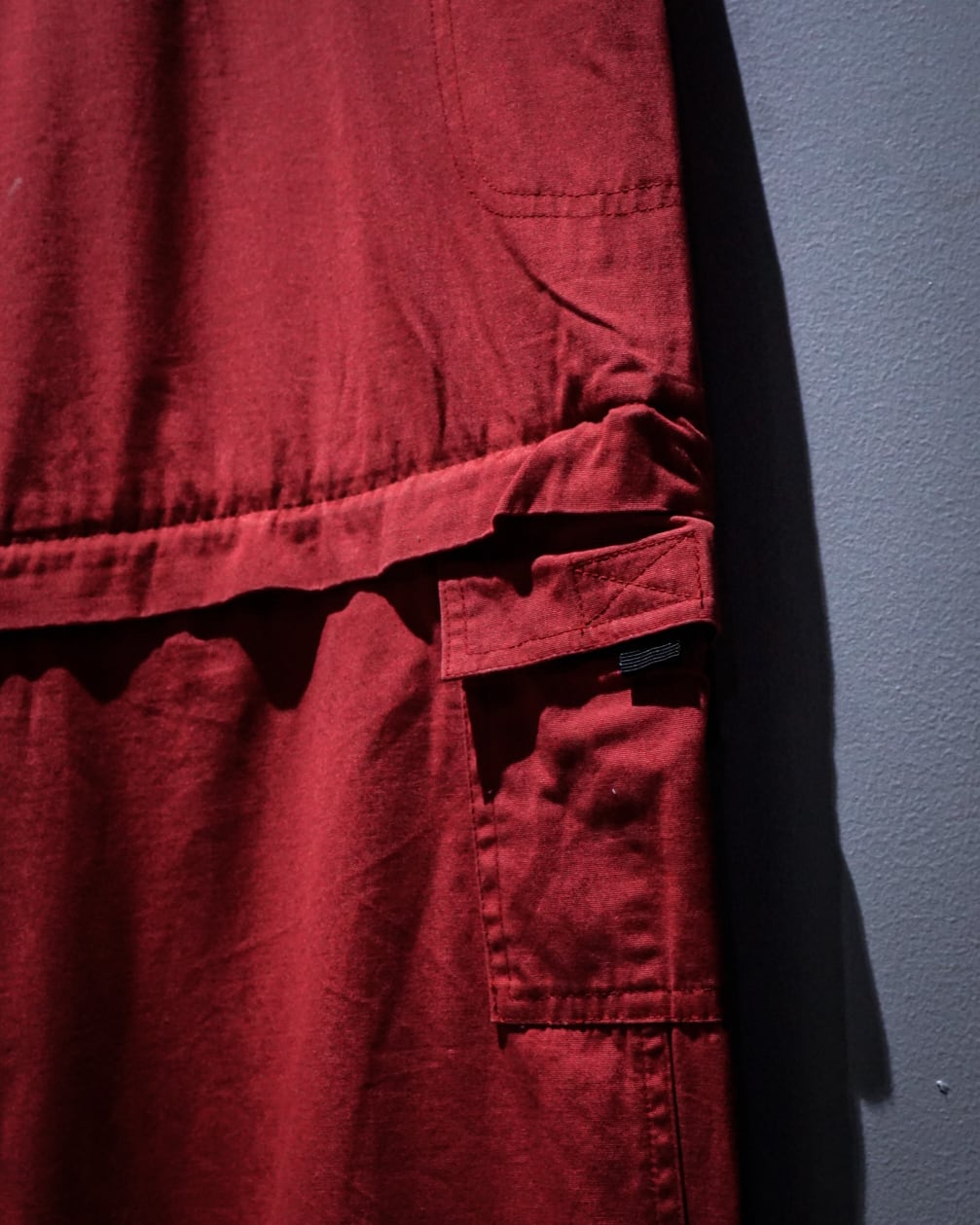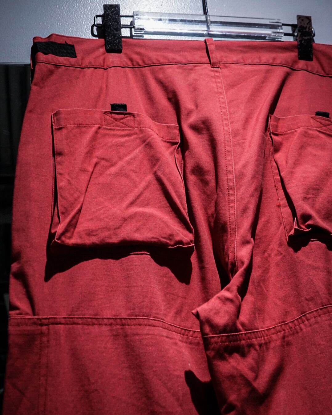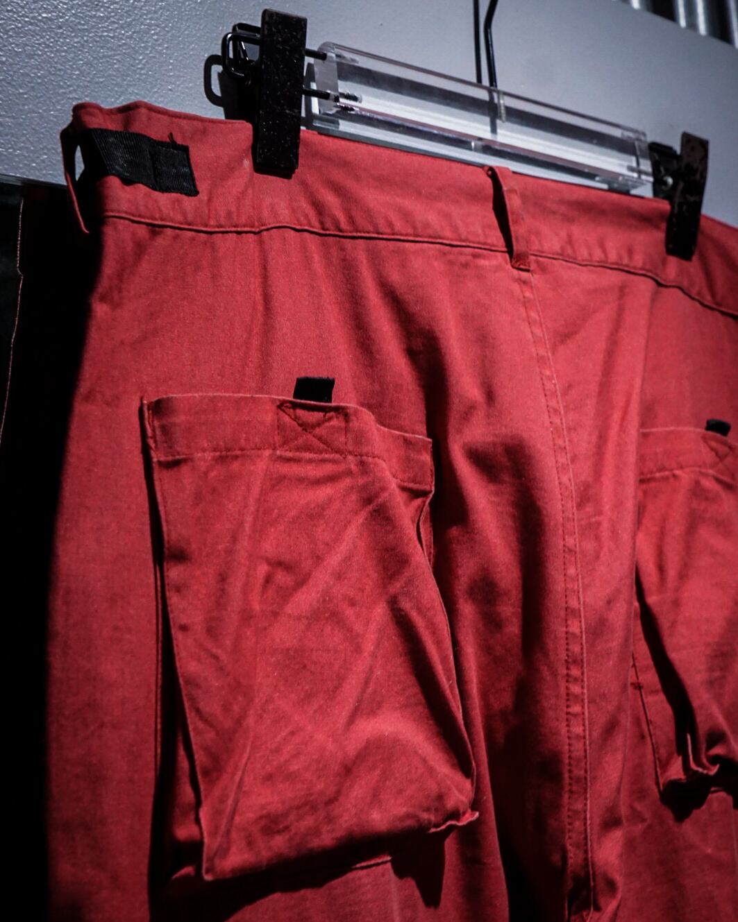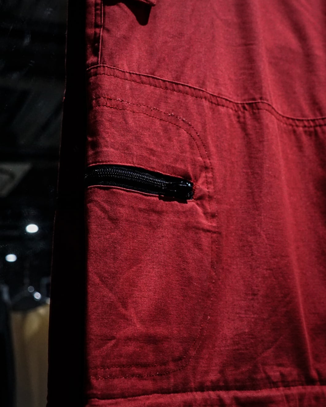 計7つのポケットをアシンメトリーに施し、鮮やかな赤のカラーリングで仕上げた、機能的かつ抜群の存在感を見せる1本。