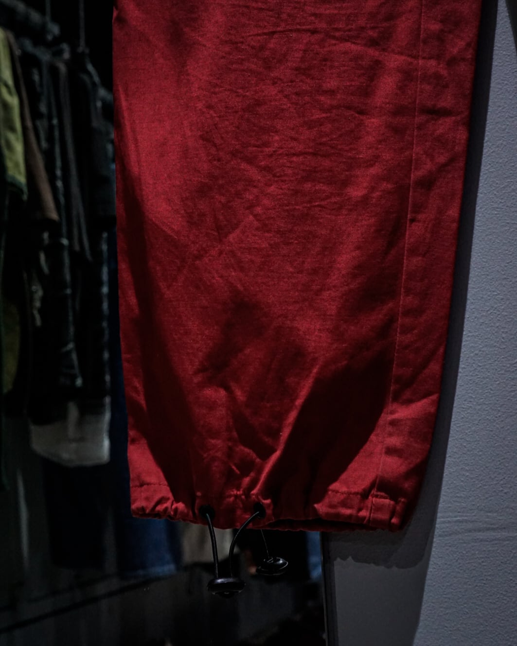 全体的にゆとりを持たせたワイドなシルエットもGOOD。裾にはドローストリングが施されているため、様々な着こなしにも対応。合わせるスタイリングを選ばずに幅広いコーディネートにてご着用いただけます。
