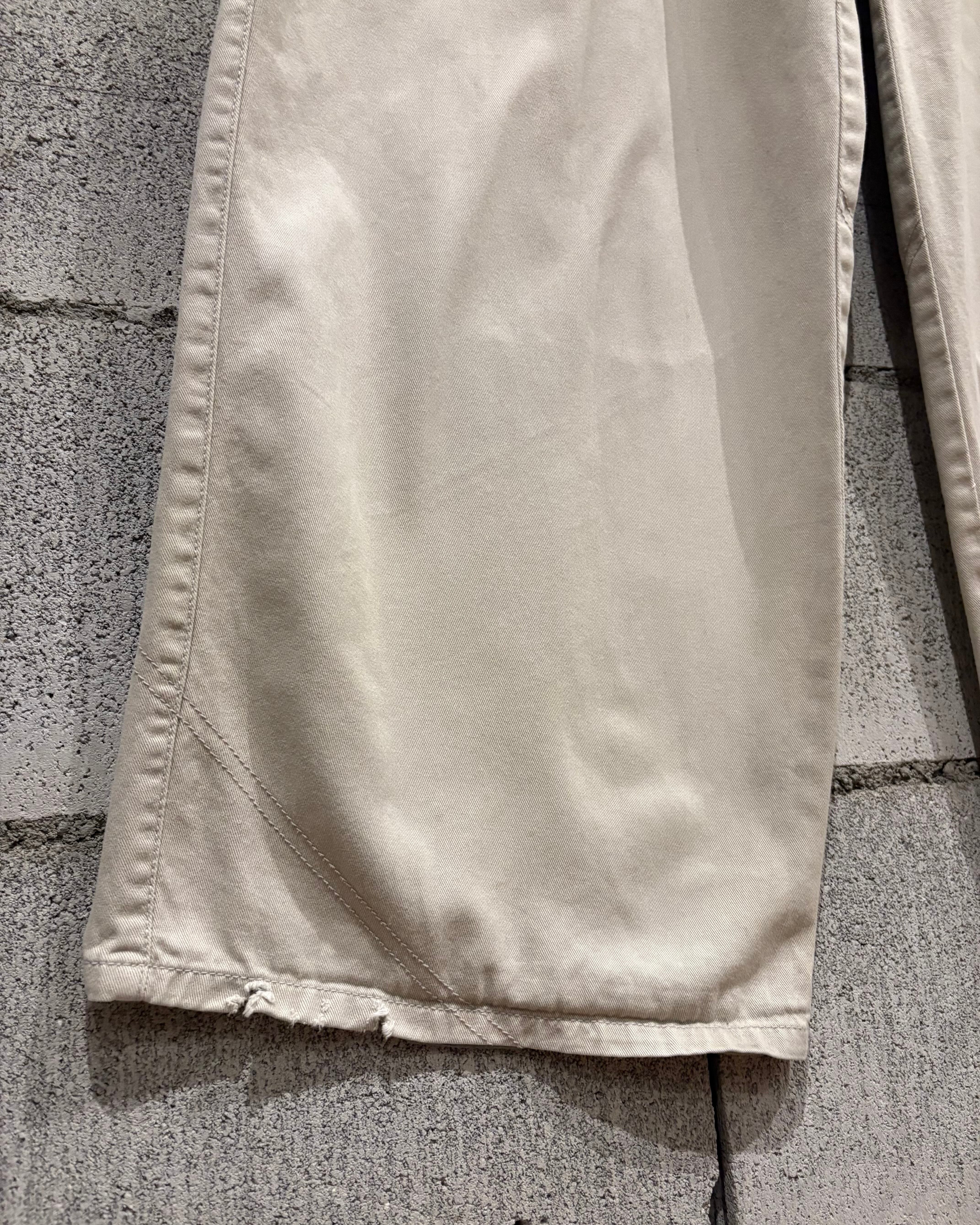 ボディサイドにはスラッシュポケット、背面にはカルチャーを感じられる深めのバックポケットに、大胆に施されたステッチがレイブ特有のワイドなシルエットを引き立てています。
