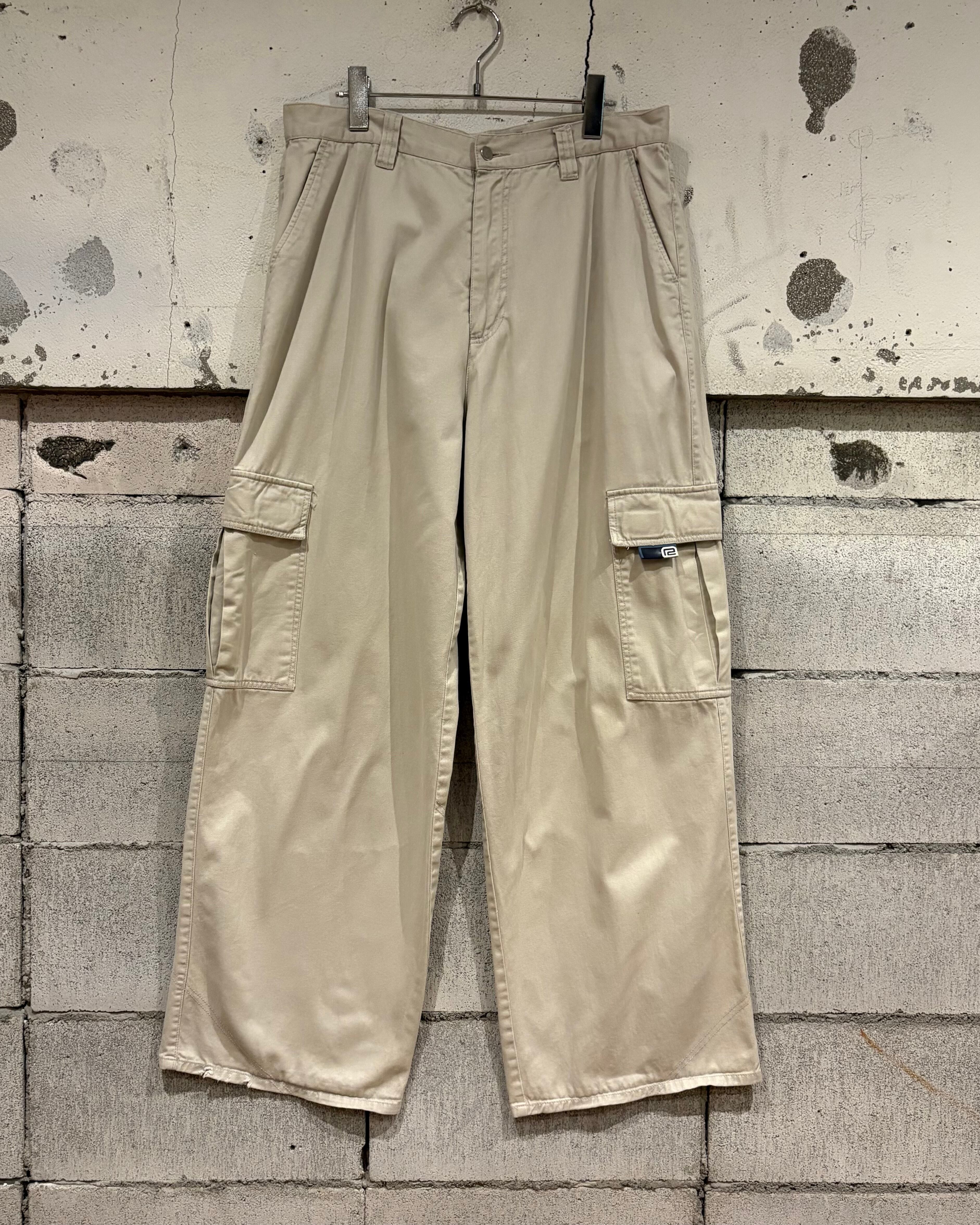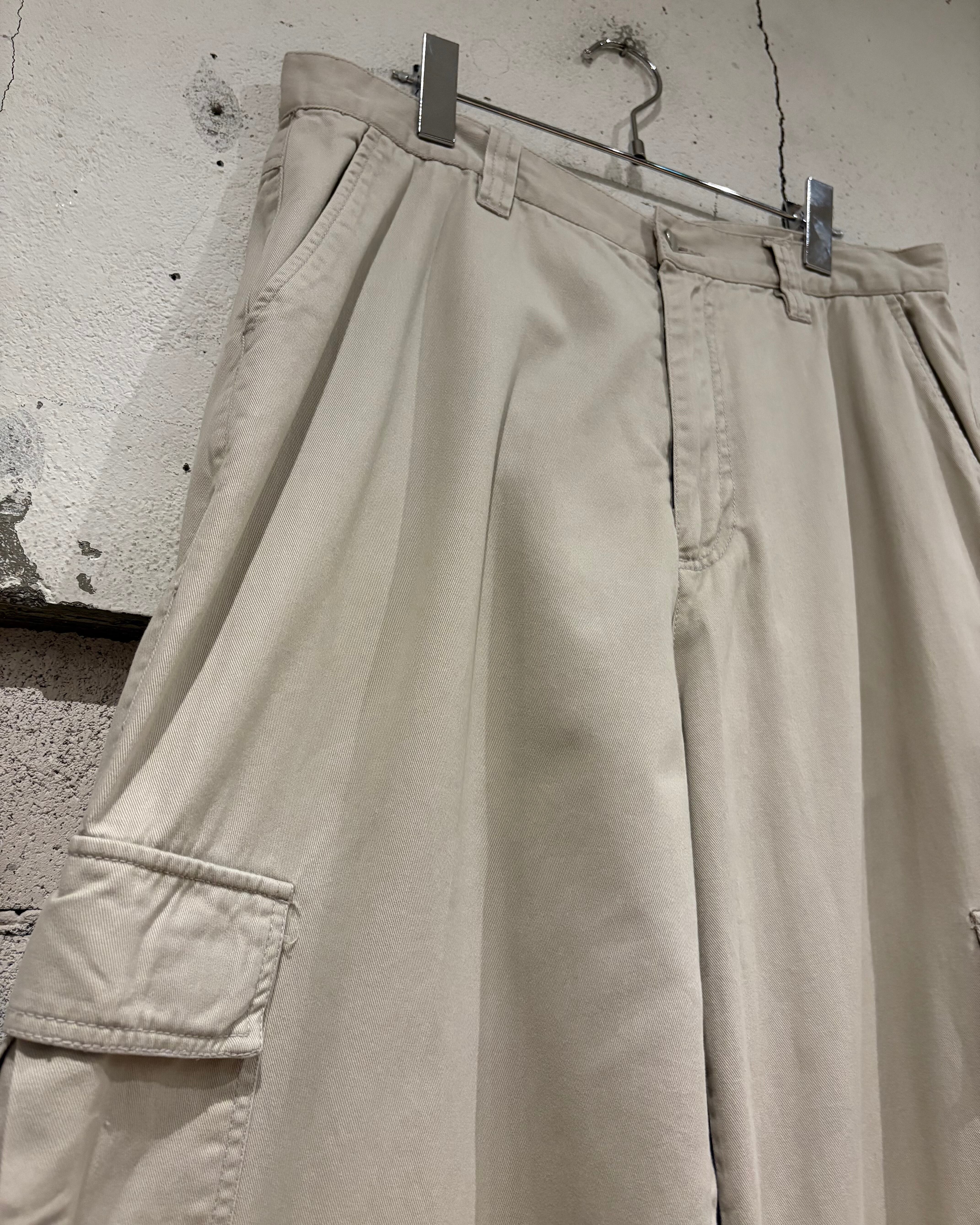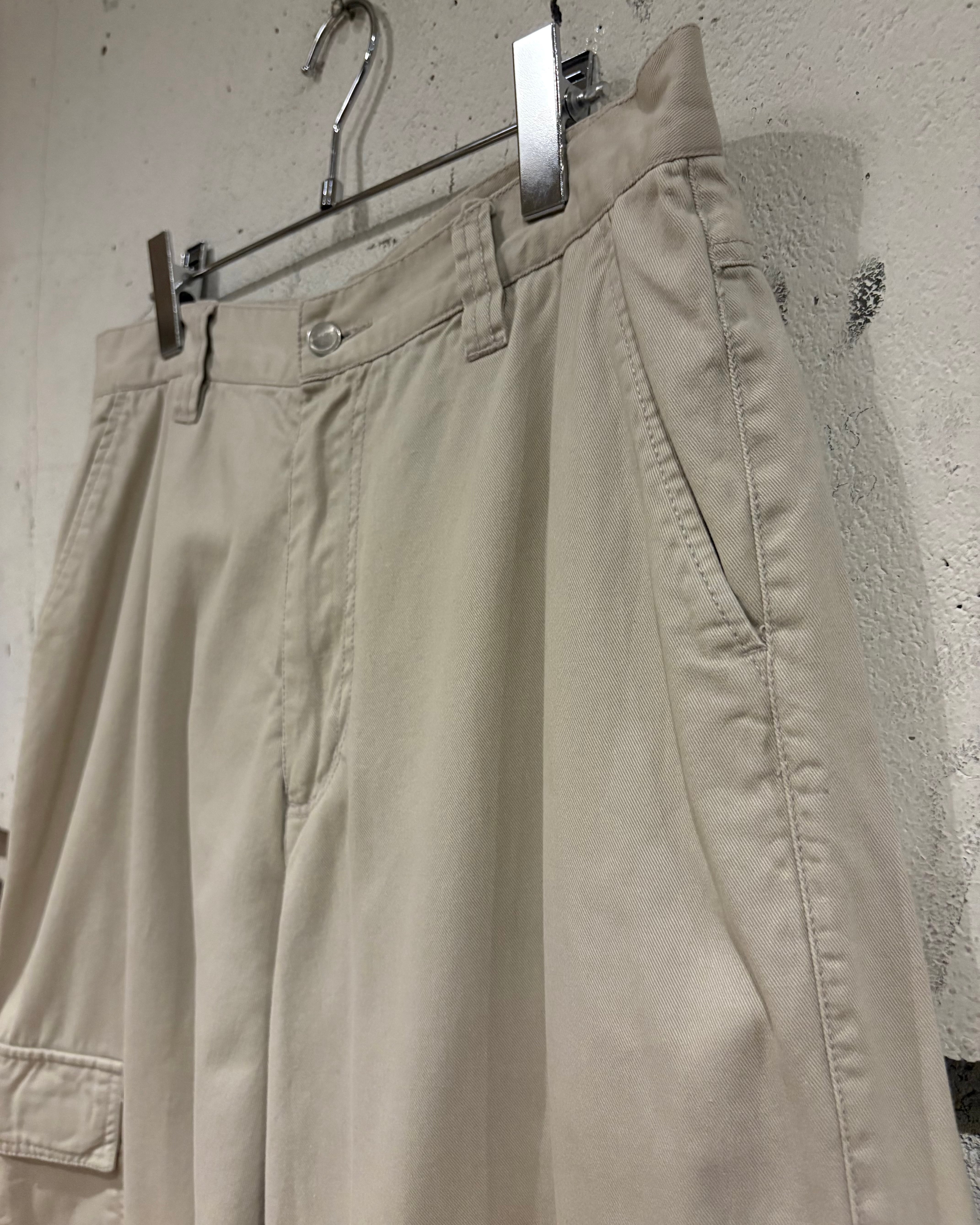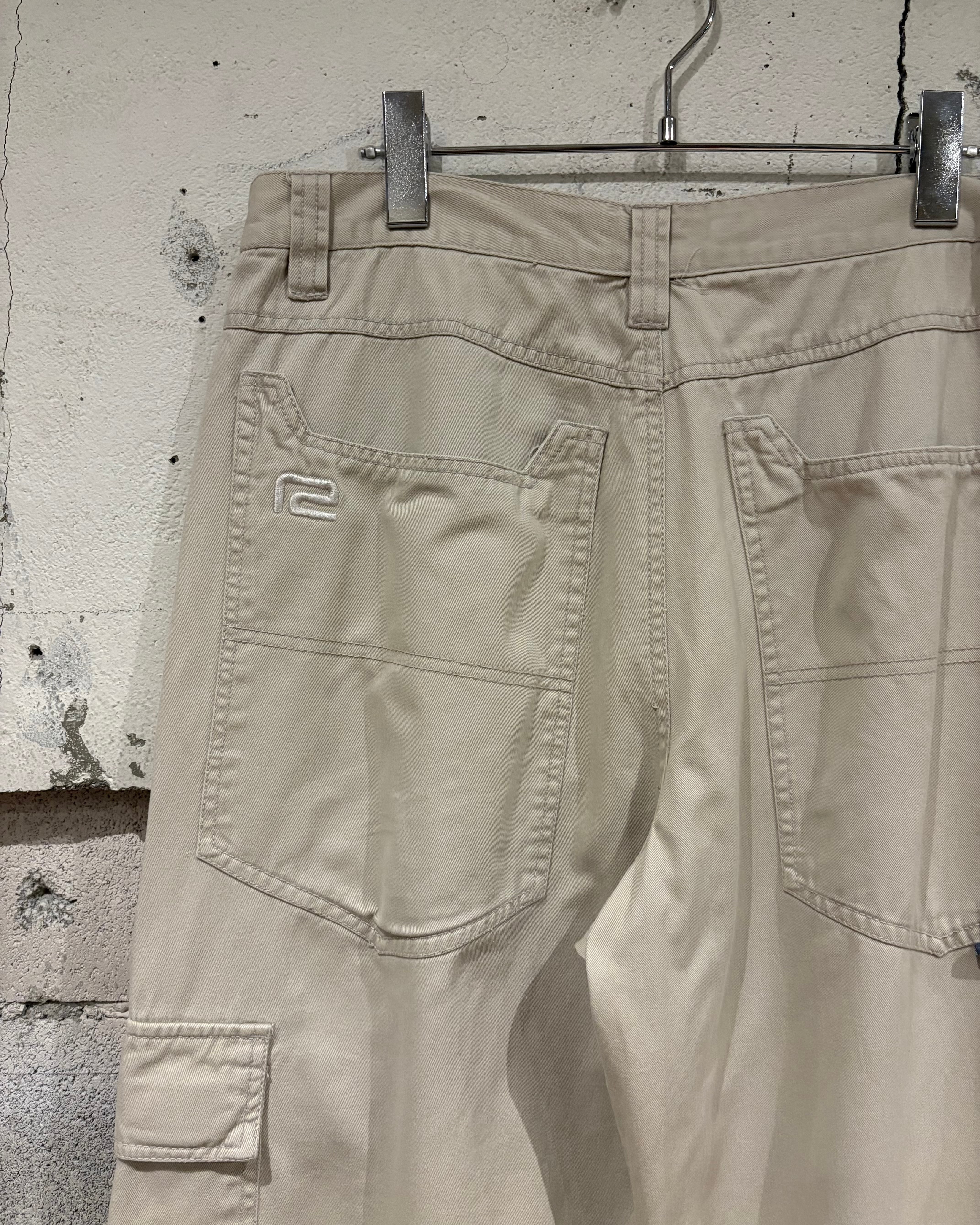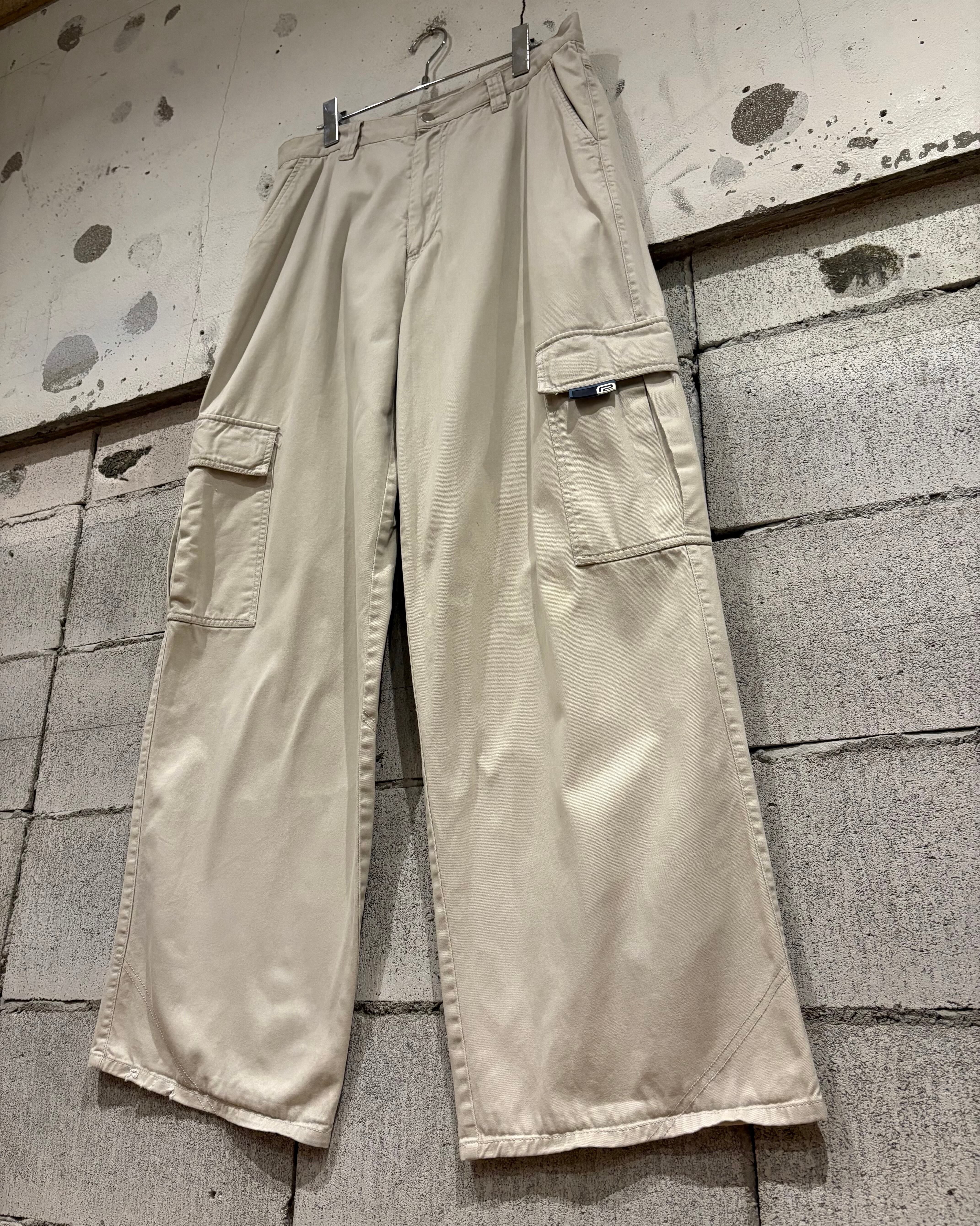 ハリ、コシのあるコットンを用いたボディに、サイドにポケットを載せたレイブカーゴパンツ。