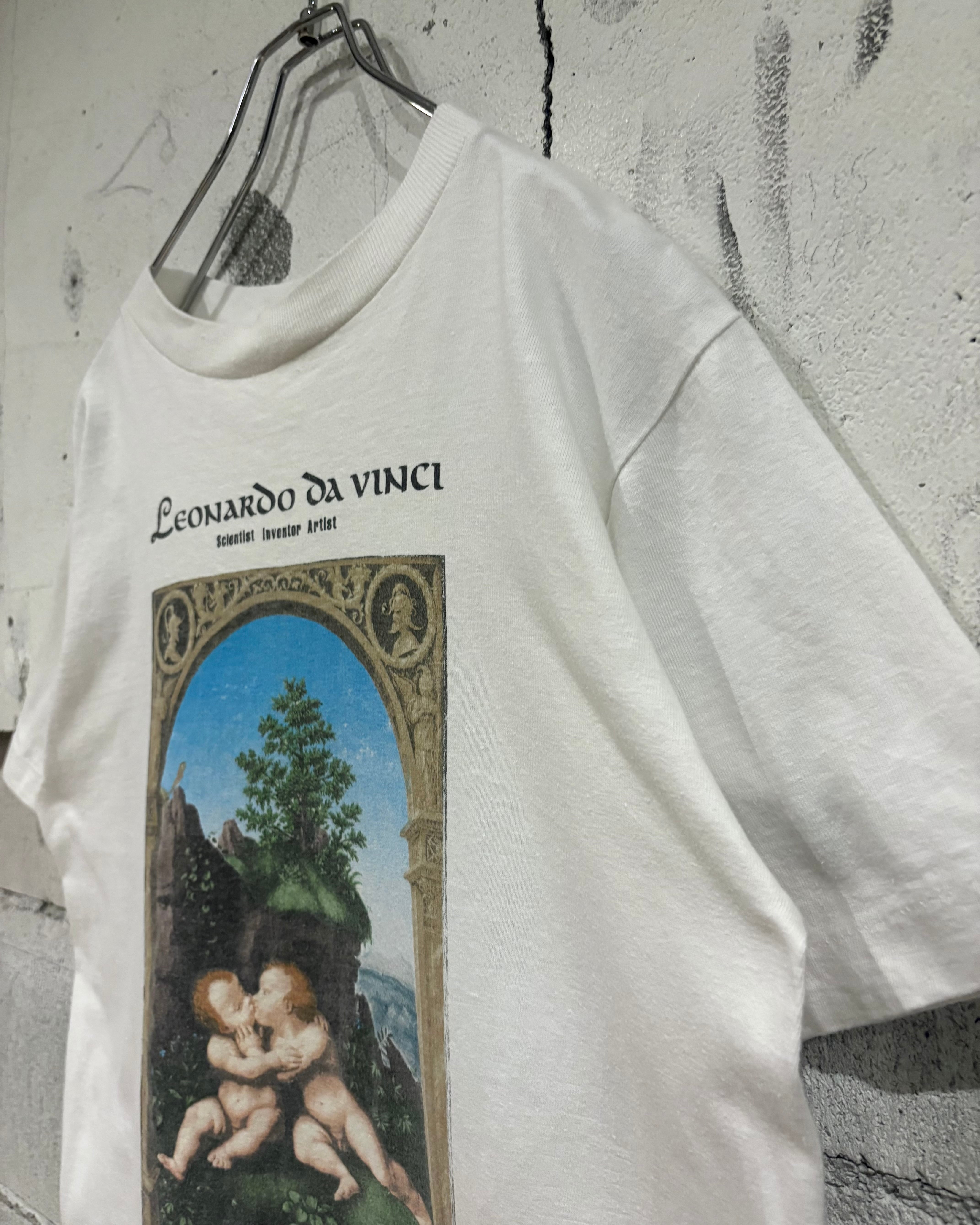 イタリアのルネサンス期を代表する芸術家"レオナルド・ダ・ヴィンチ"に帰属する作品『The Holy Infants Embracing』がプリントされたTシャツ。