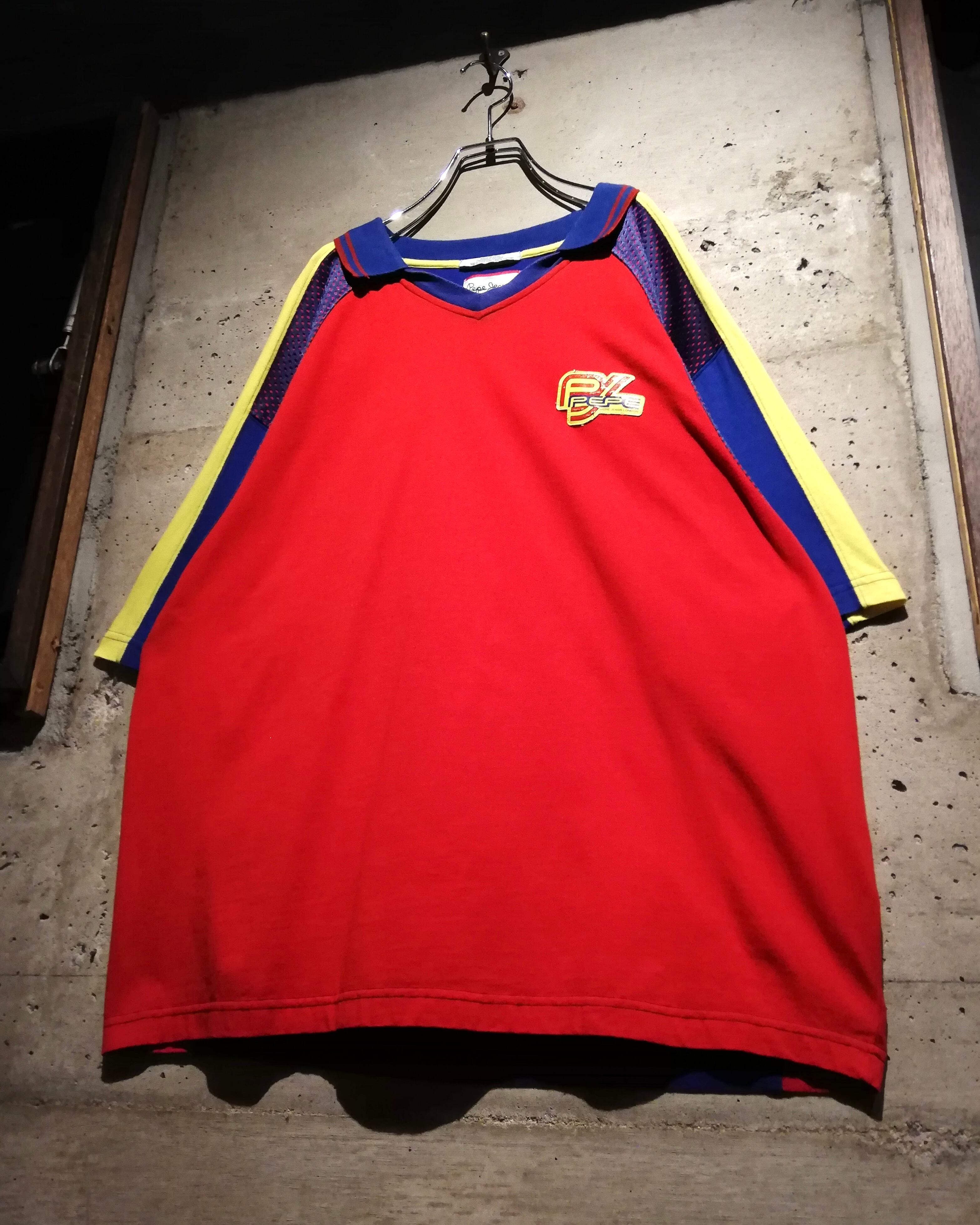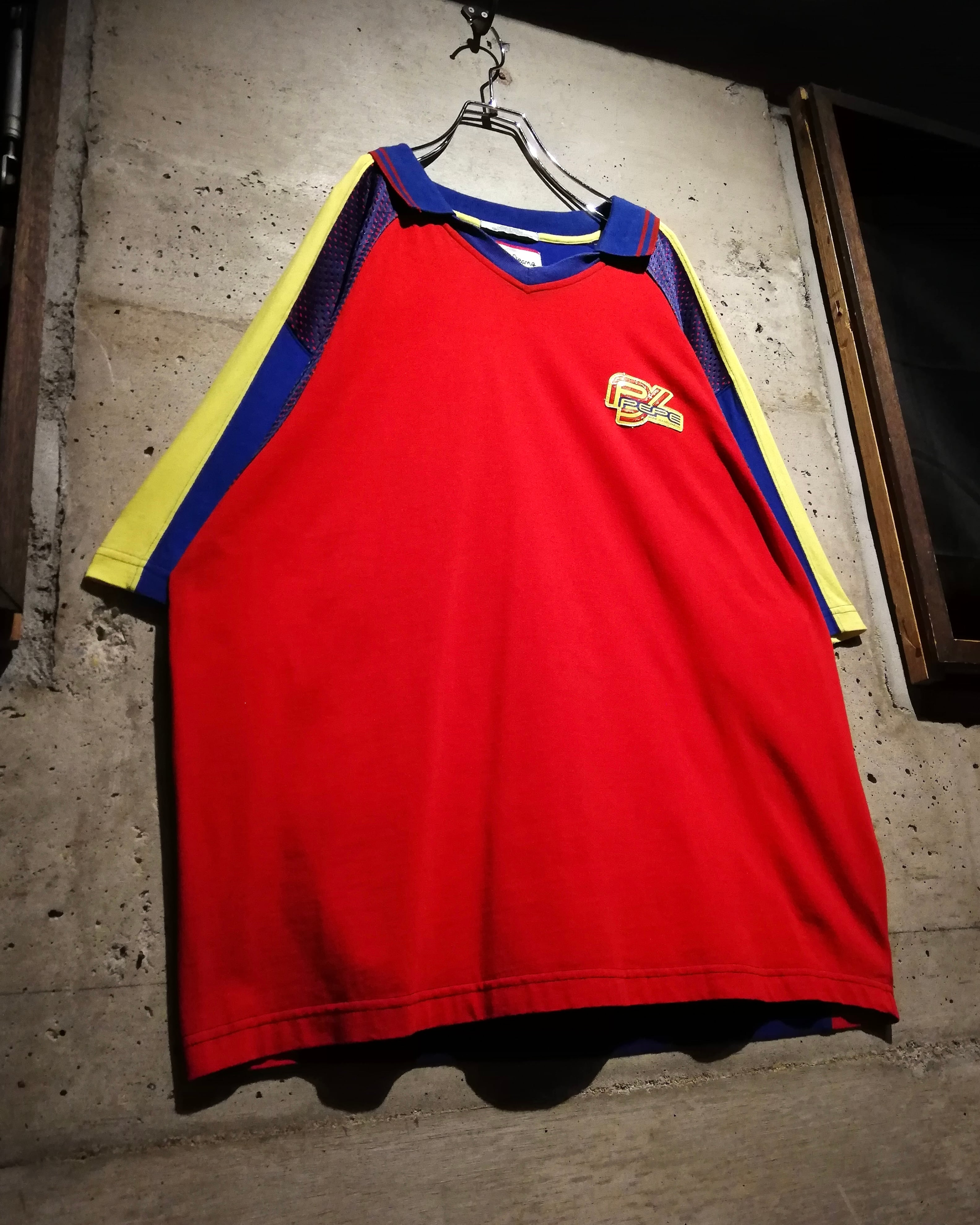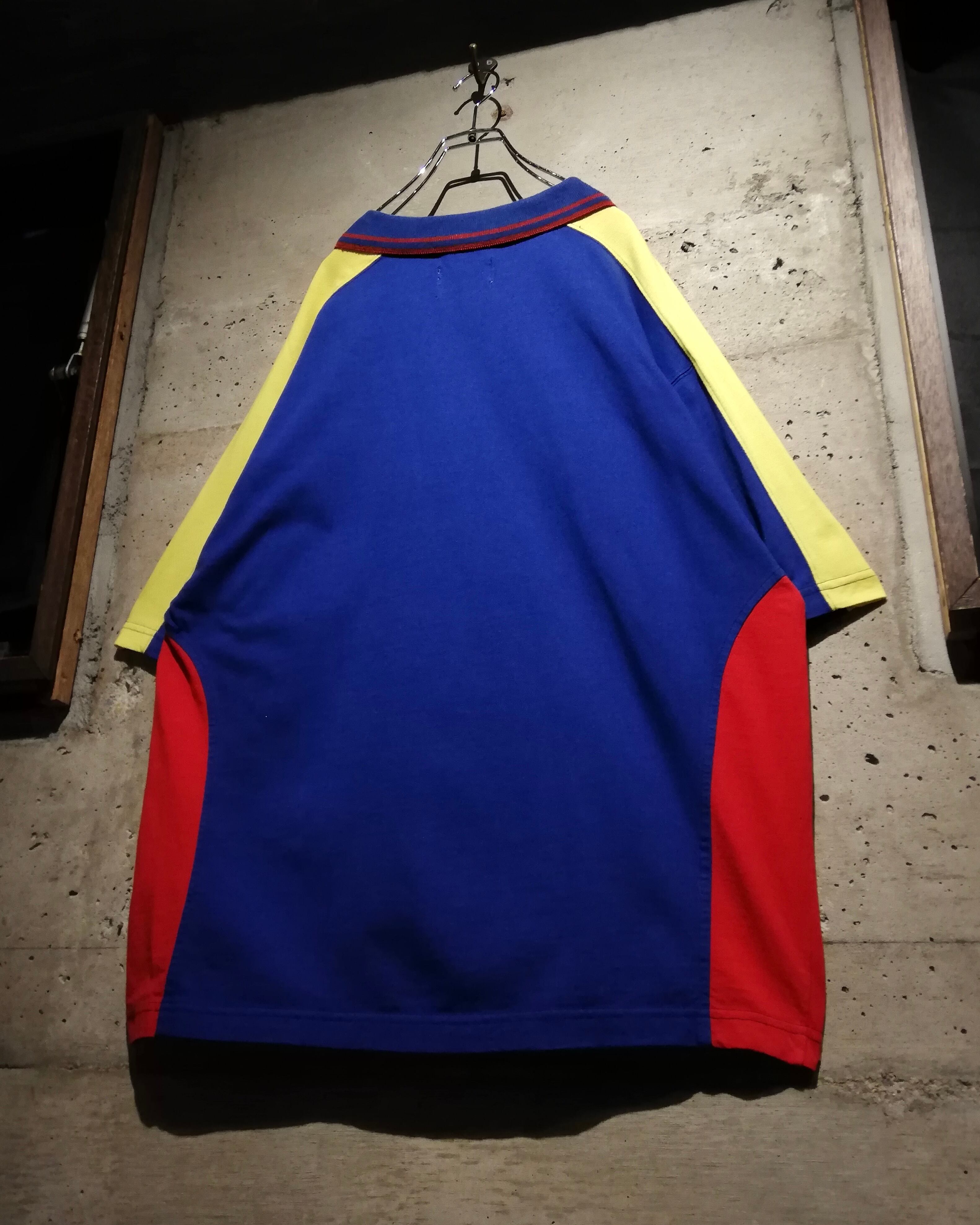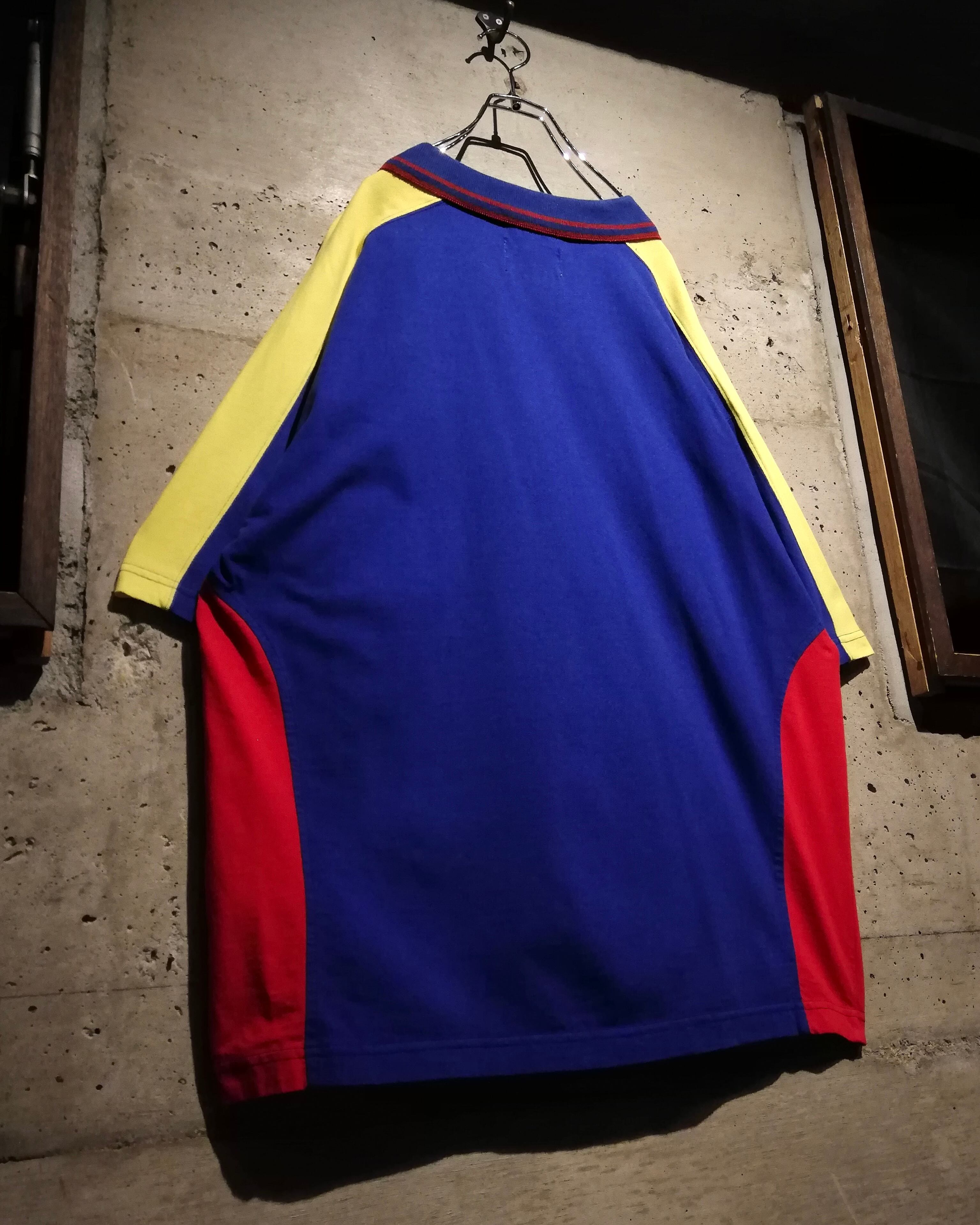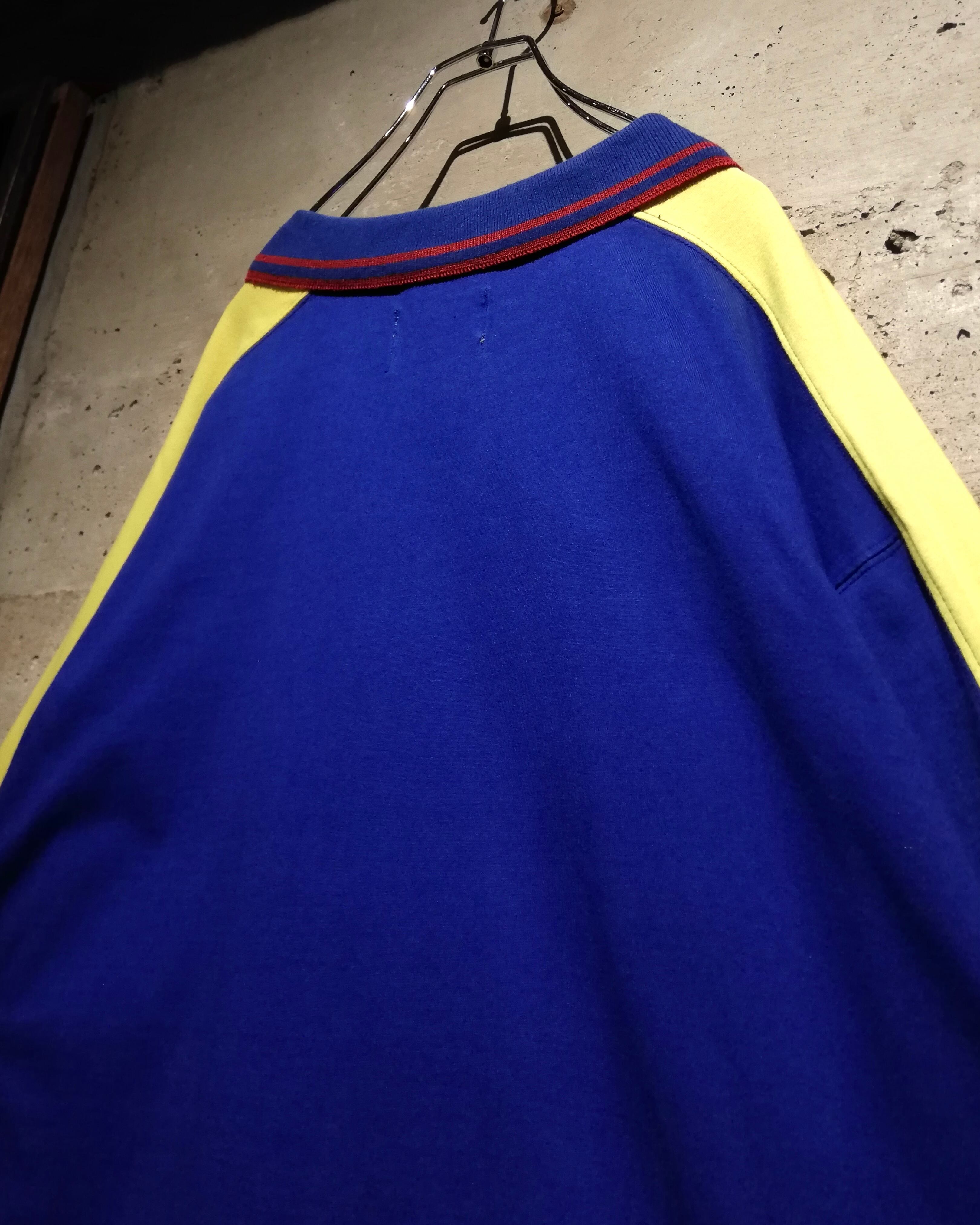 サラッとしたカットソー生地をボディに使用し、赤×青×黄の鮮やかなマルチカラーで切り替えたゲームシャツ。