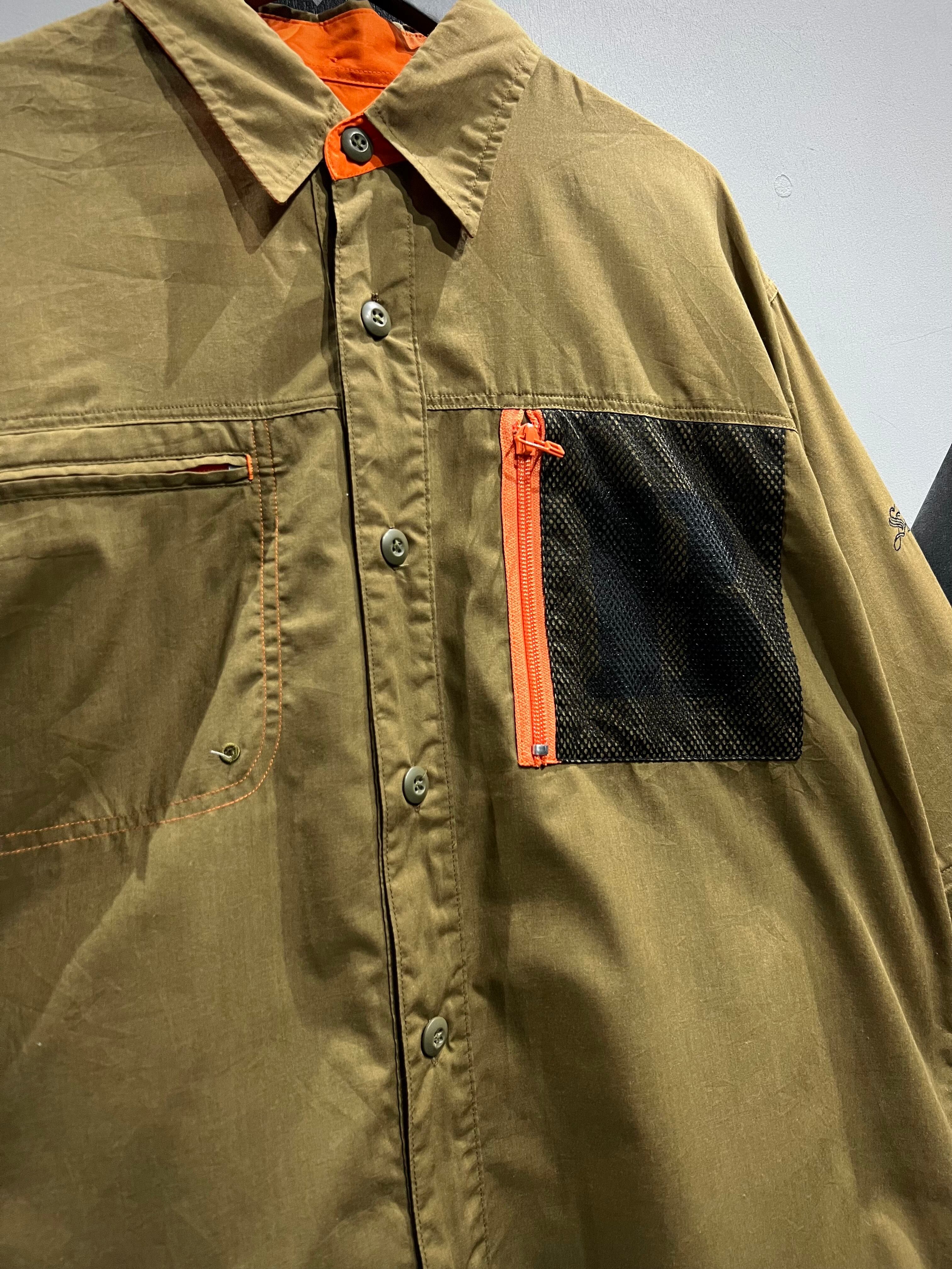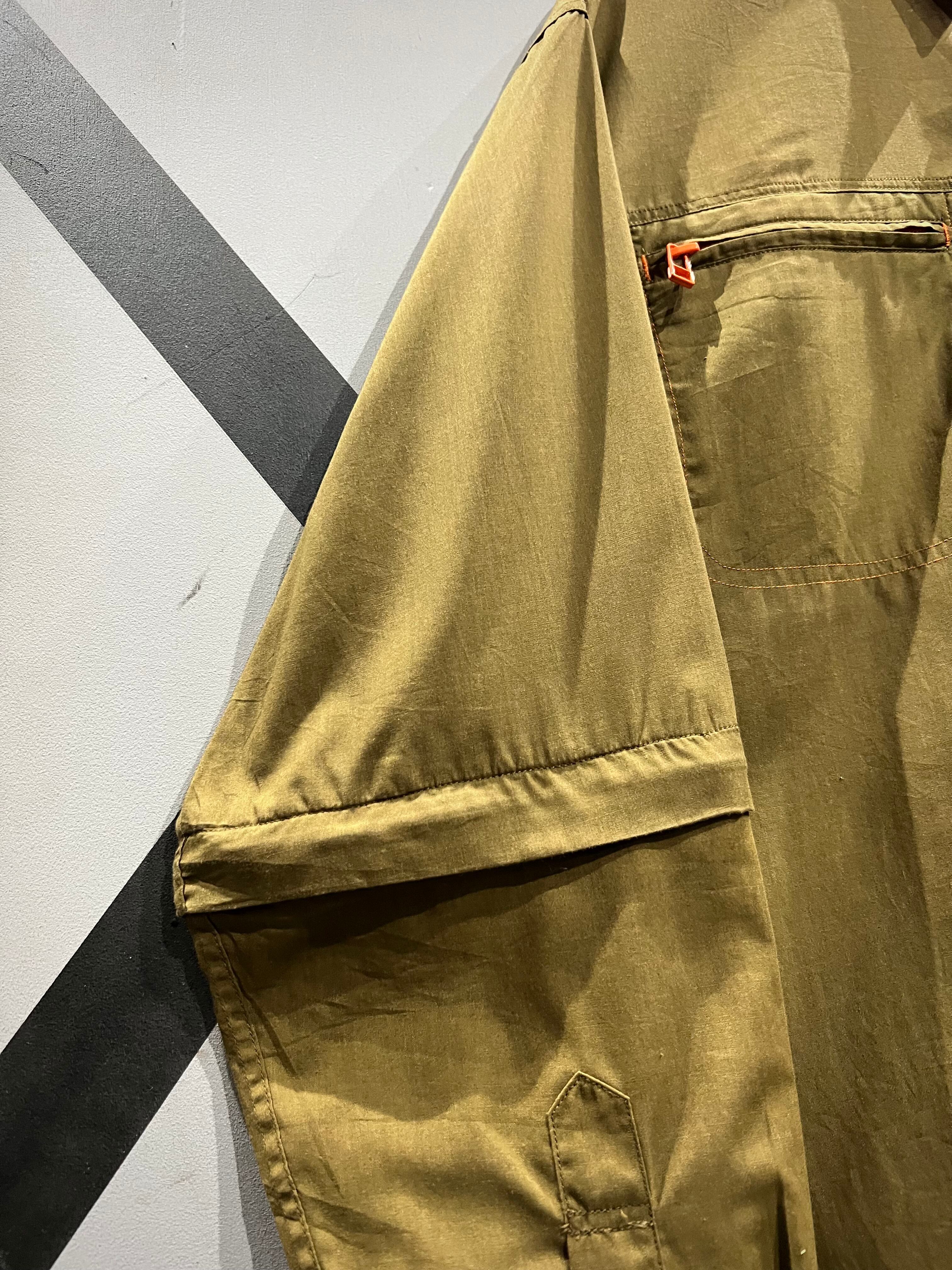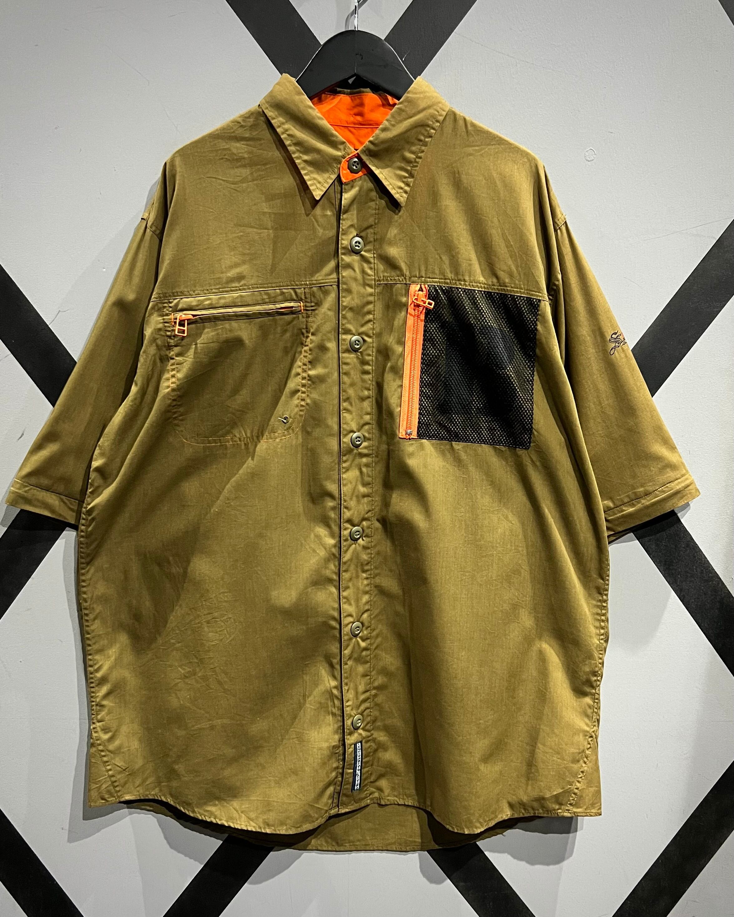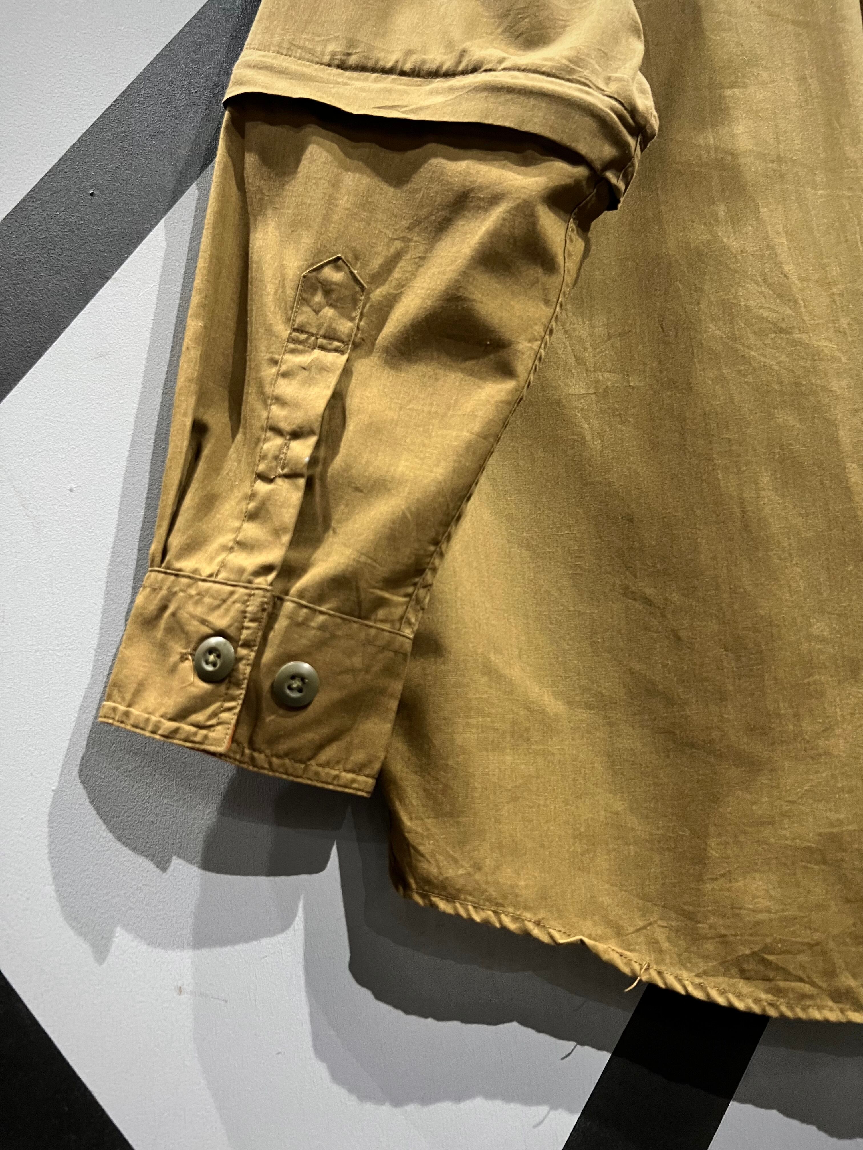 カーキを基調としたボディに、左胸にはメッシュ仕様のポケット、右胸にはジップポケットを配置。そして注目して頂きたいのは袖の作り。こちらジップによって袖が取り外し可能で、半袖で着用することも可能な2way仕様で仕上げられたコンバーチブルシャツ。