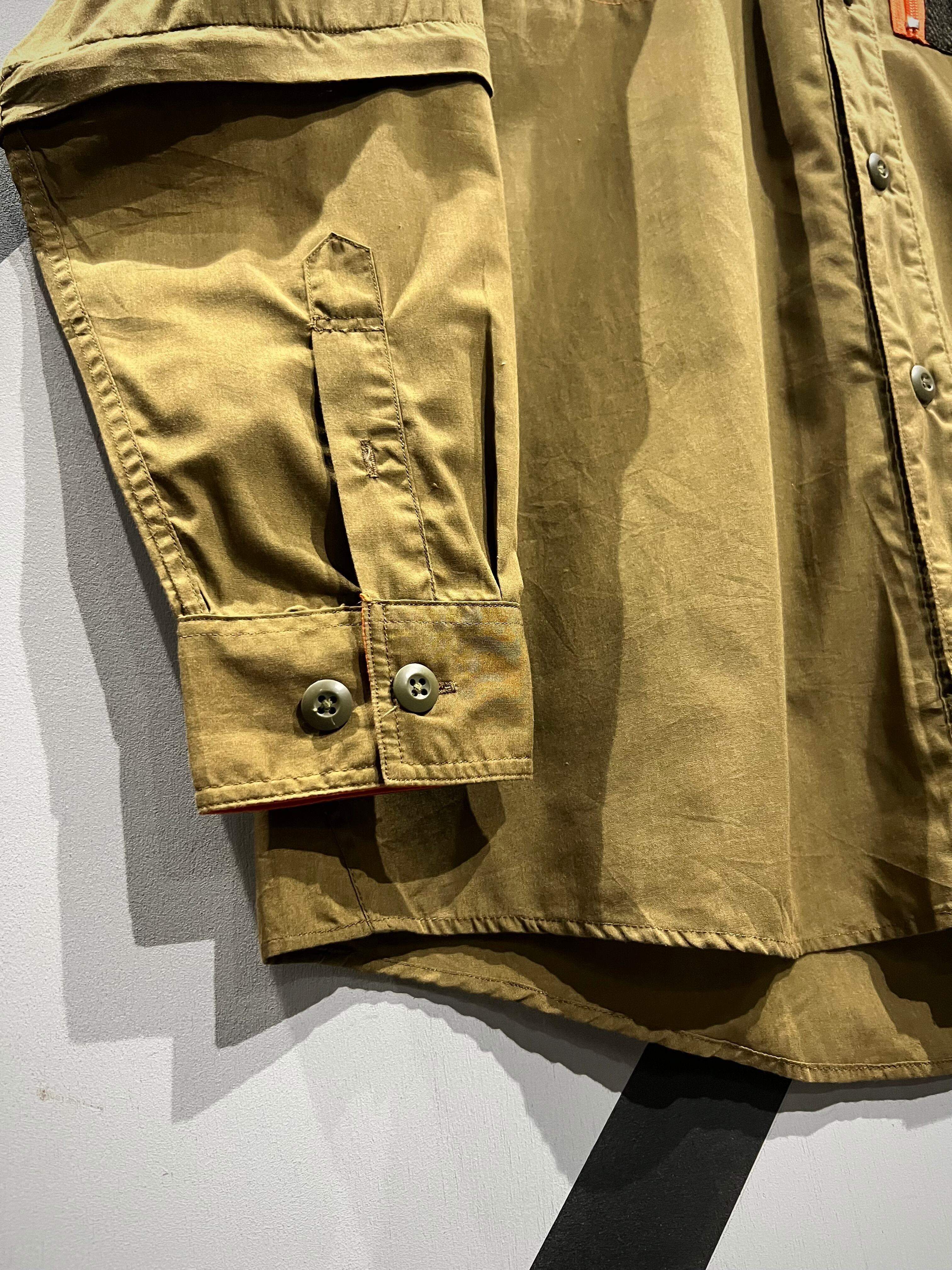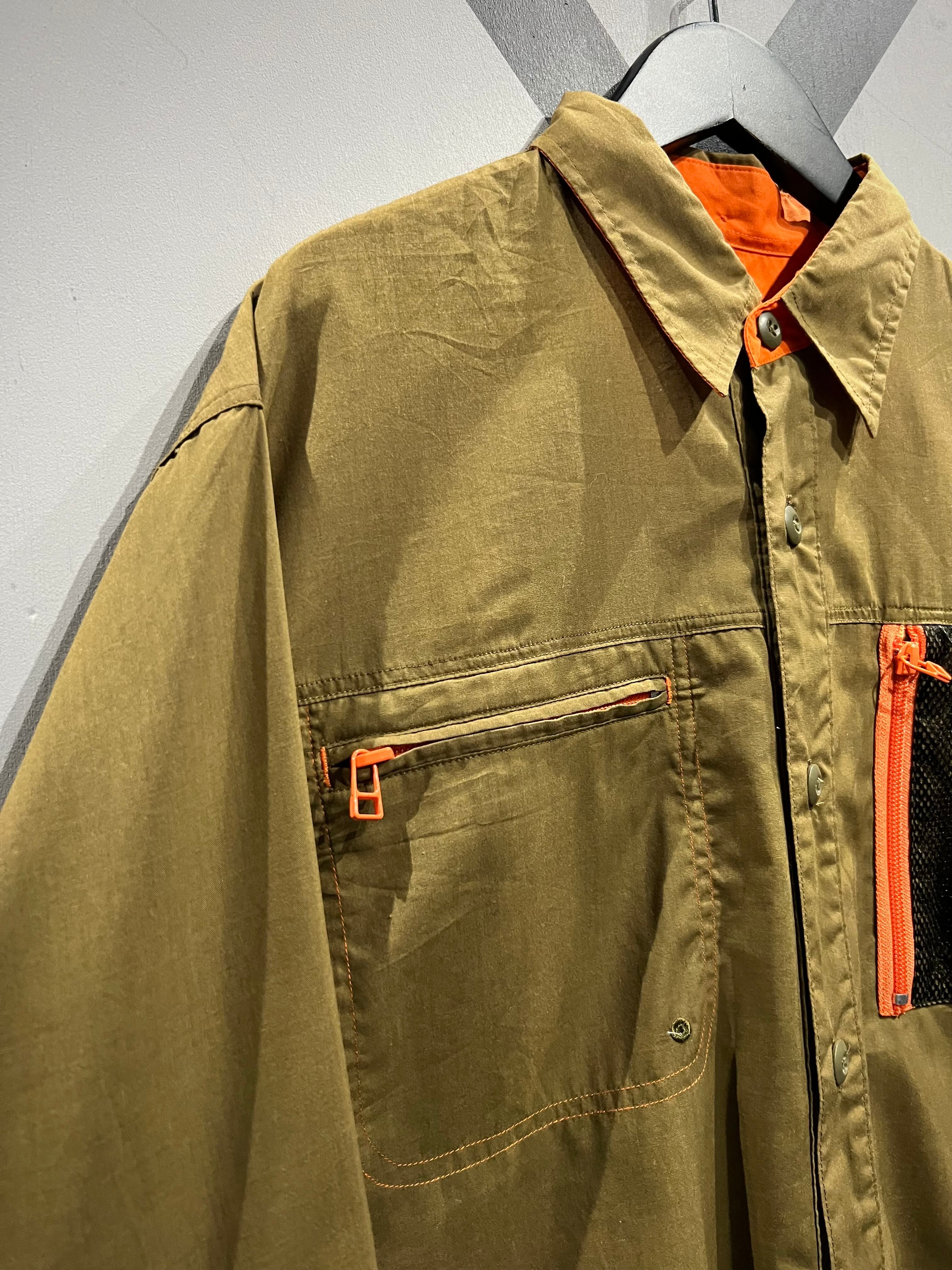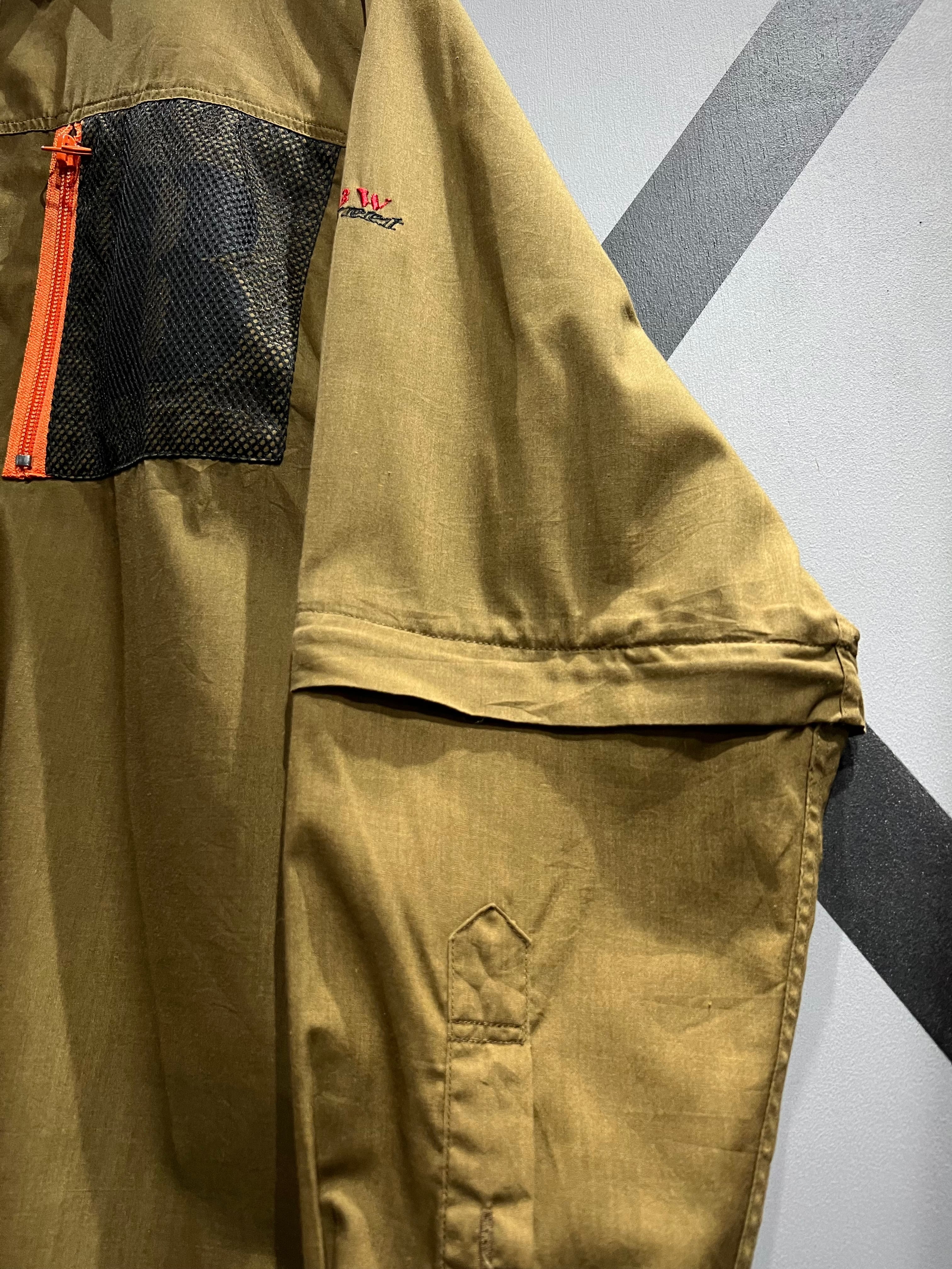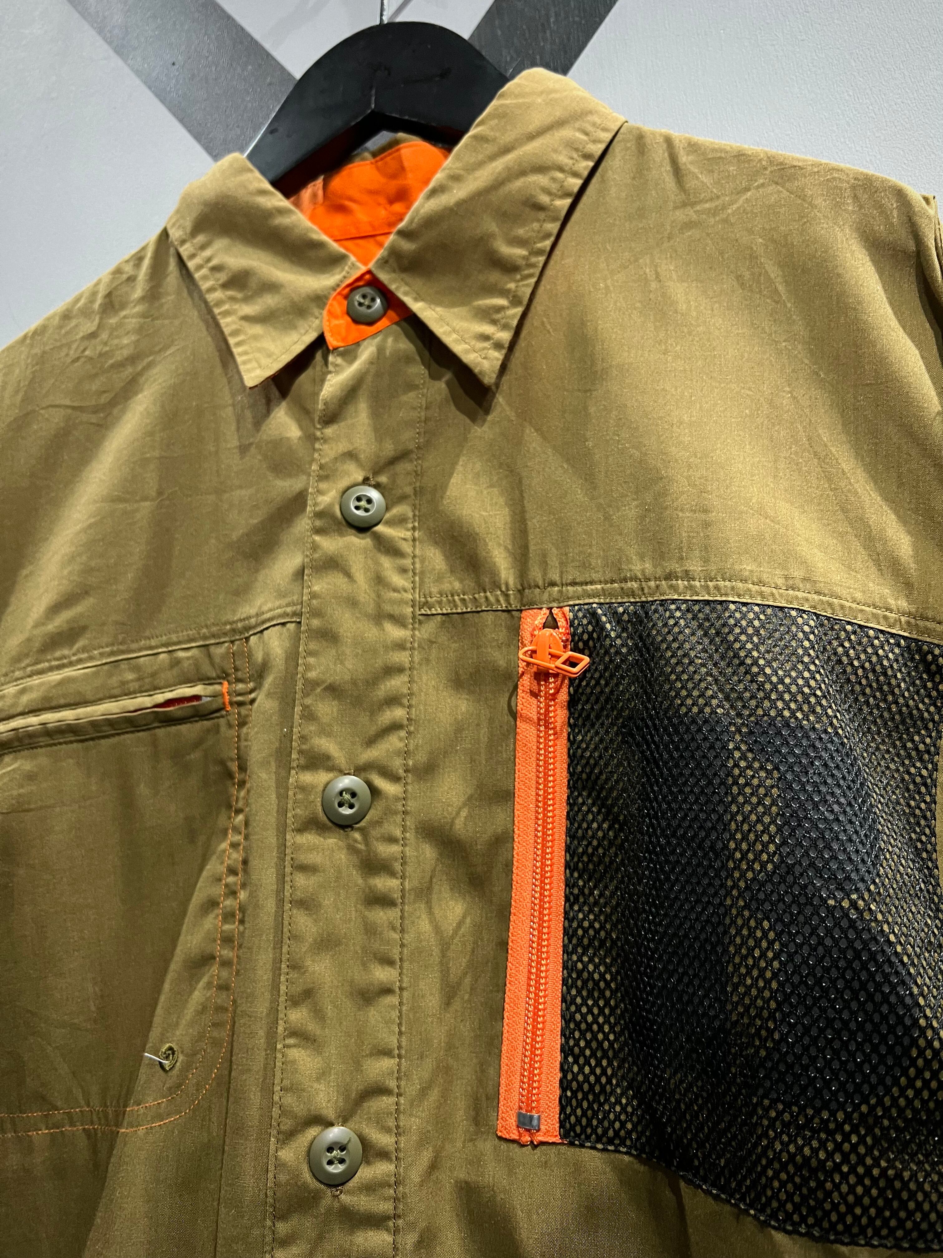 カーキを基調としたボディに、左胸にはメッシュ仕様のポケット、右胸にはジップポケットを配置。そして注目して頂きたいのは袖の作り。こちらジップによって袖が取り外し可能で、半袖で着用することも可能な2way仕様で仕上げられたコンバーチブルシャツ。